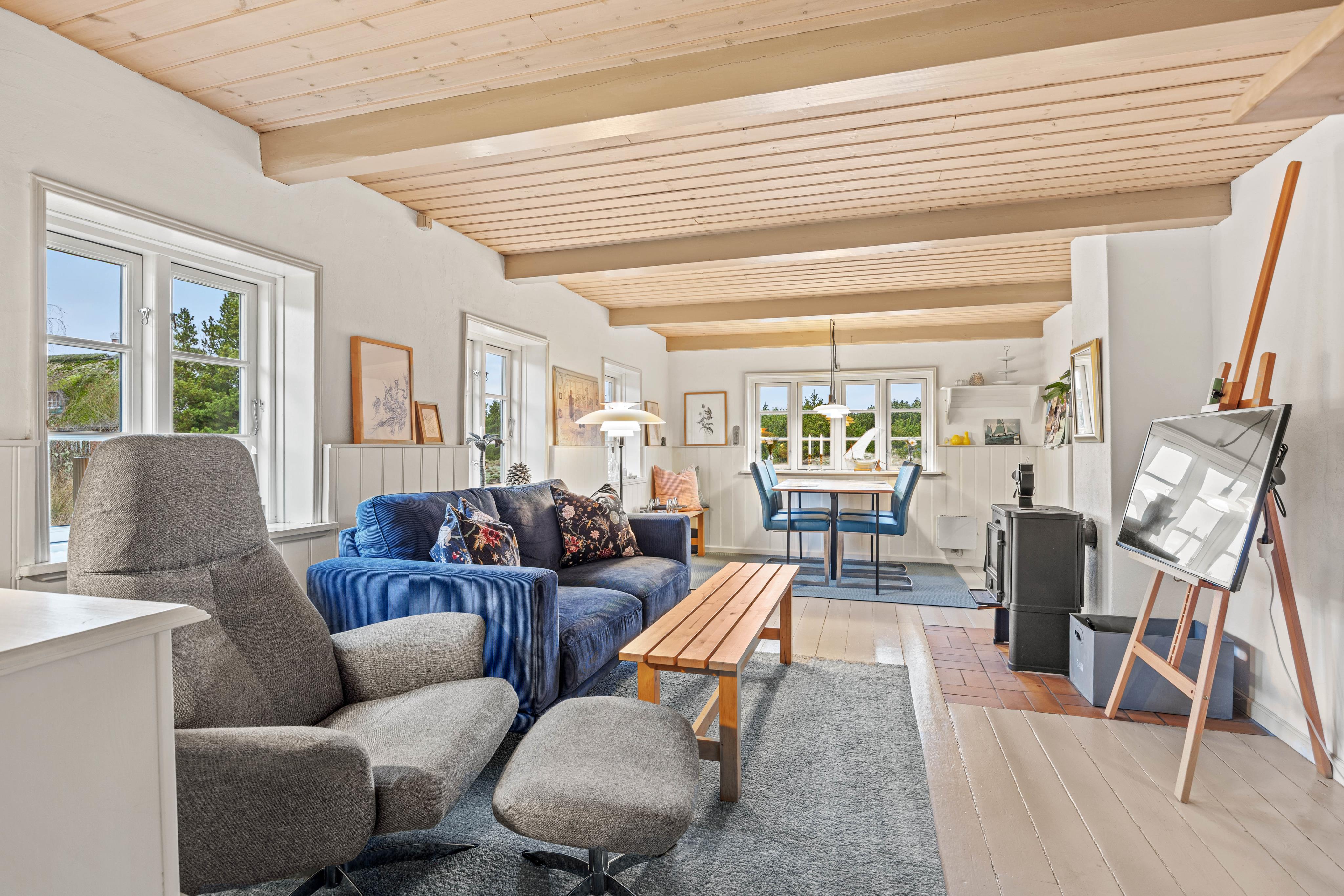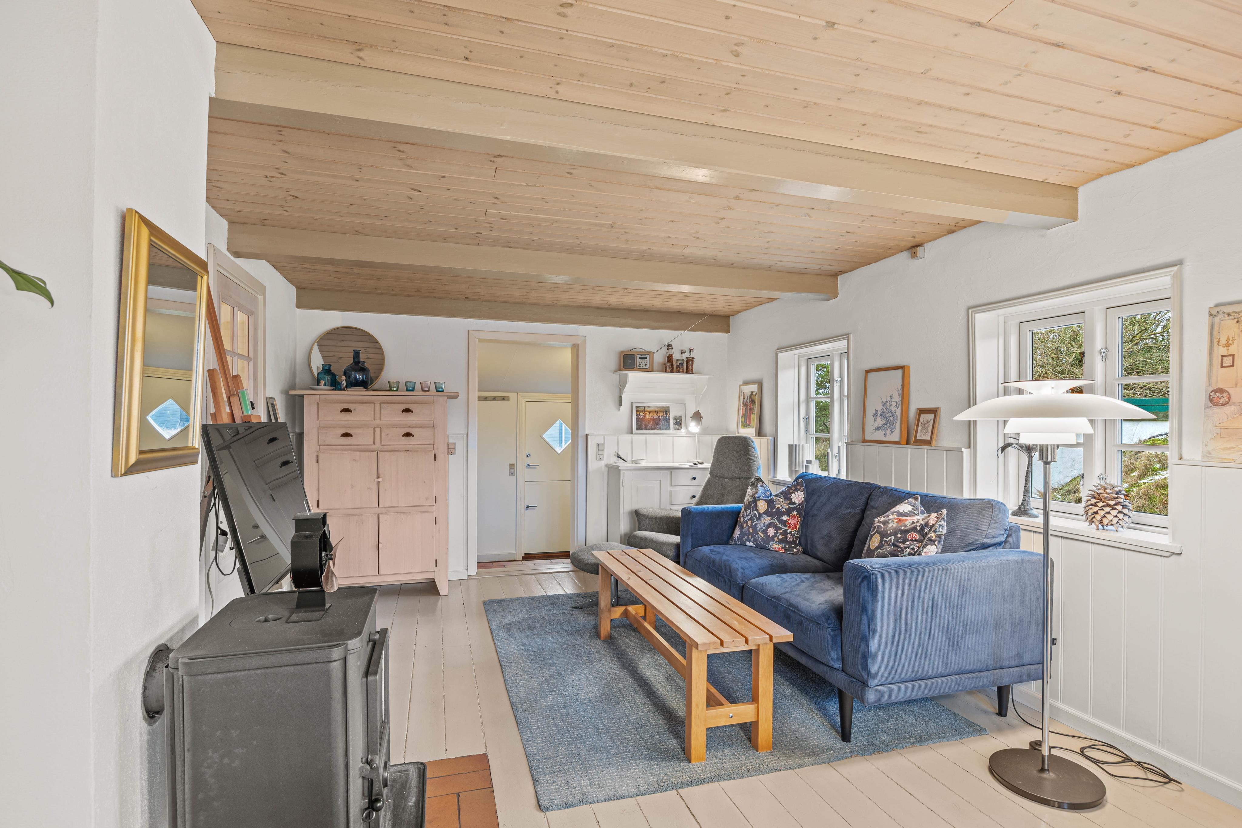 Må I invitere jeres bedste ven? Ja, 1 hund er meget velkommen her. Indendørs venter en lys og rummelig stue med trægulv og en varm og indbydende atmosfære. I kan læne jer tilbage i sofaen foran fladskærms-TV'et eller streame yndlingsserierne via Chromecast og nyde aftenerne ved den knitrende brændeovn. Sommerhuset byder på et soverum udstyret med en komfortabel dobbeltseng til en fredfuld nattesøvn.