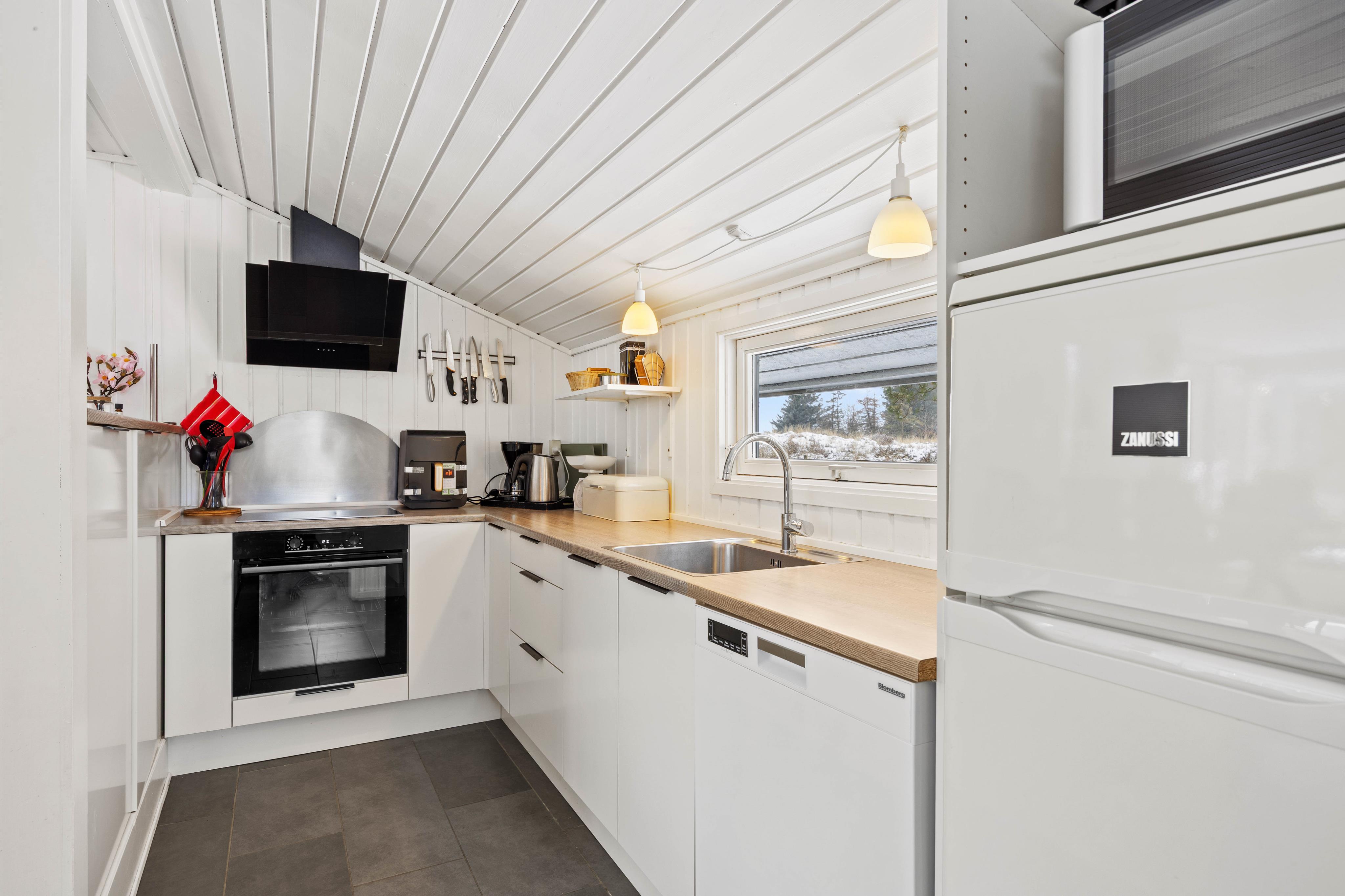 Et meget dejligt, komfortabelt sommerhus i en ferieboligby. Gode senge, smukke badeværelser, godt udstyret køkken og en dejlig stue/spisestue. Stor smart-tv i stuen. Brændeovnen i stuen var nok til at opvarme hele huset. Dejlig terrasse med hyggelige siddepladser. Naturhaven er indhegnet med et stakit.