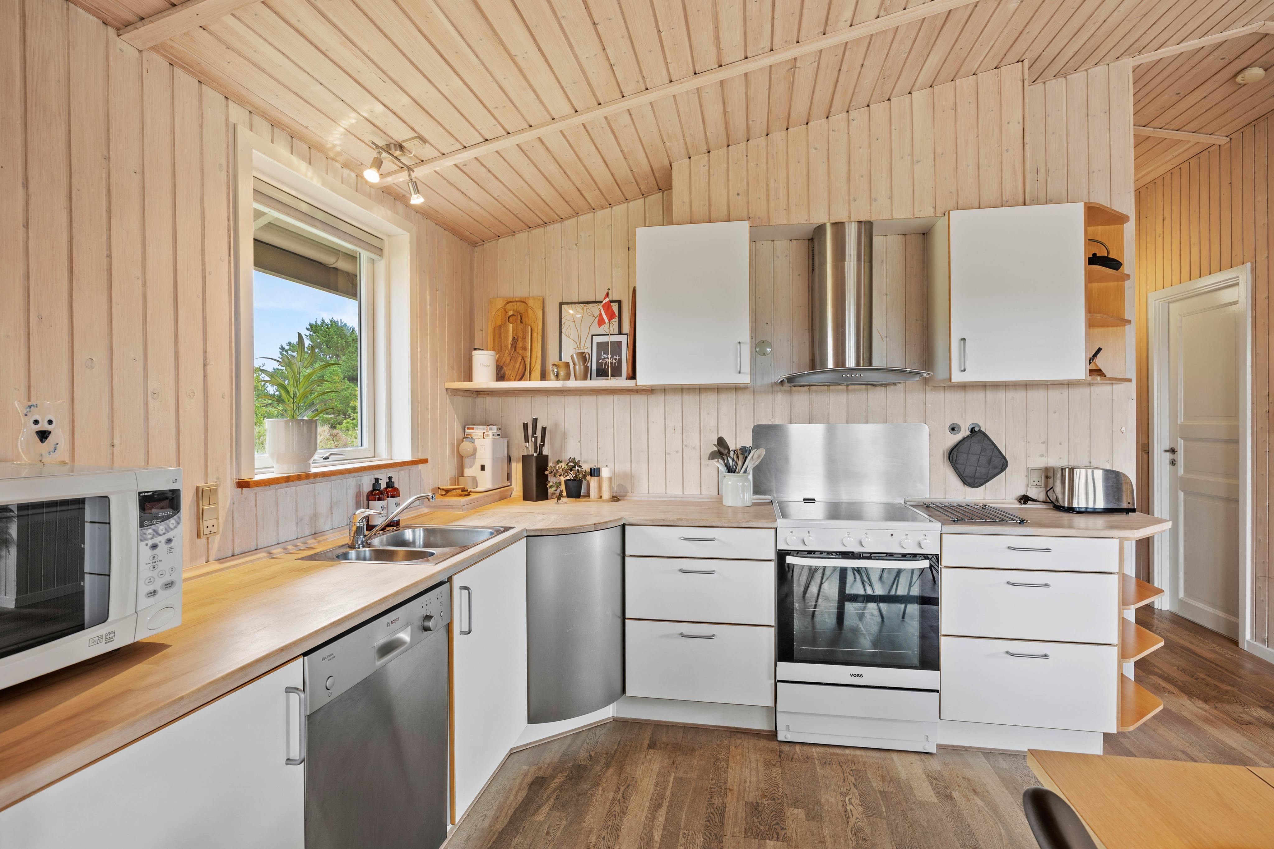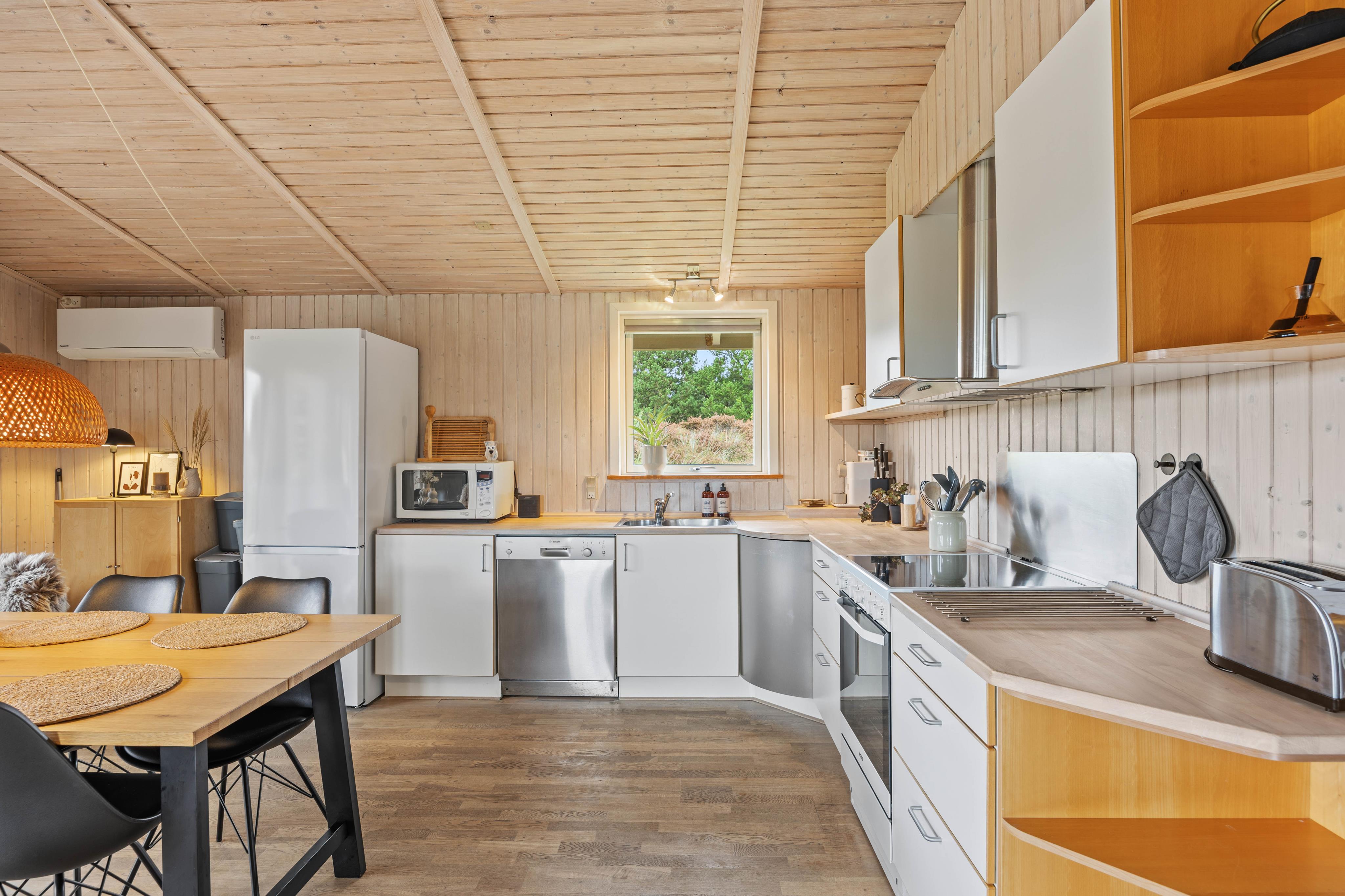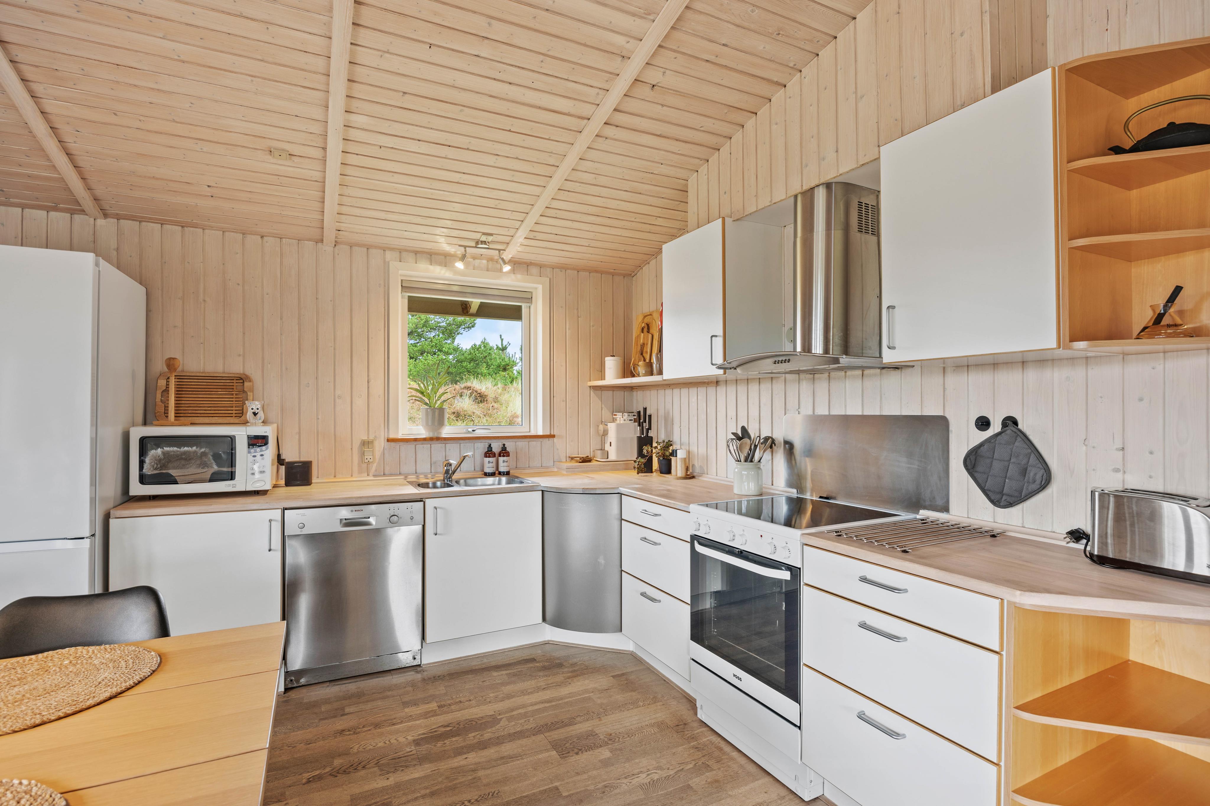 Når du træder ind i feriehuset i Bolilmark, Rømø, vil du straks blive begejstret for den indbydende indretning. Den åbne stue- og spisestue udstråler traditionel dansk sommerhusstil og tilbyder gennem generøse vinduer betagende udsigt til det grønne. Her kan du finde ro fra hverdagen og nyde den meditative stilhed. Brændeovnen sørger for hyggelige aftener, mens du kan nyde godt af det moderne køkkens bekvemmeligheder. Med opvaskemaskine, vaskemaskine og varmepumpe er der sørget for al tænkelig komfort. Afslapning er garanteret i det moderne badeværelse med gulvvarme og et luksuriøst spabad. Uanset om det er efter en lang gåtur på stranden eller på en kølig aften, er det indendørs spabad det perfekte sted at lade sjælen få ro. Glæd dig til uforglemmelige stunder under den vidtstrakte blå himmel – helt ind i natten, når månen og stjernerne ofte forvandler himlen over Rømø til et fascinerende lysspil.