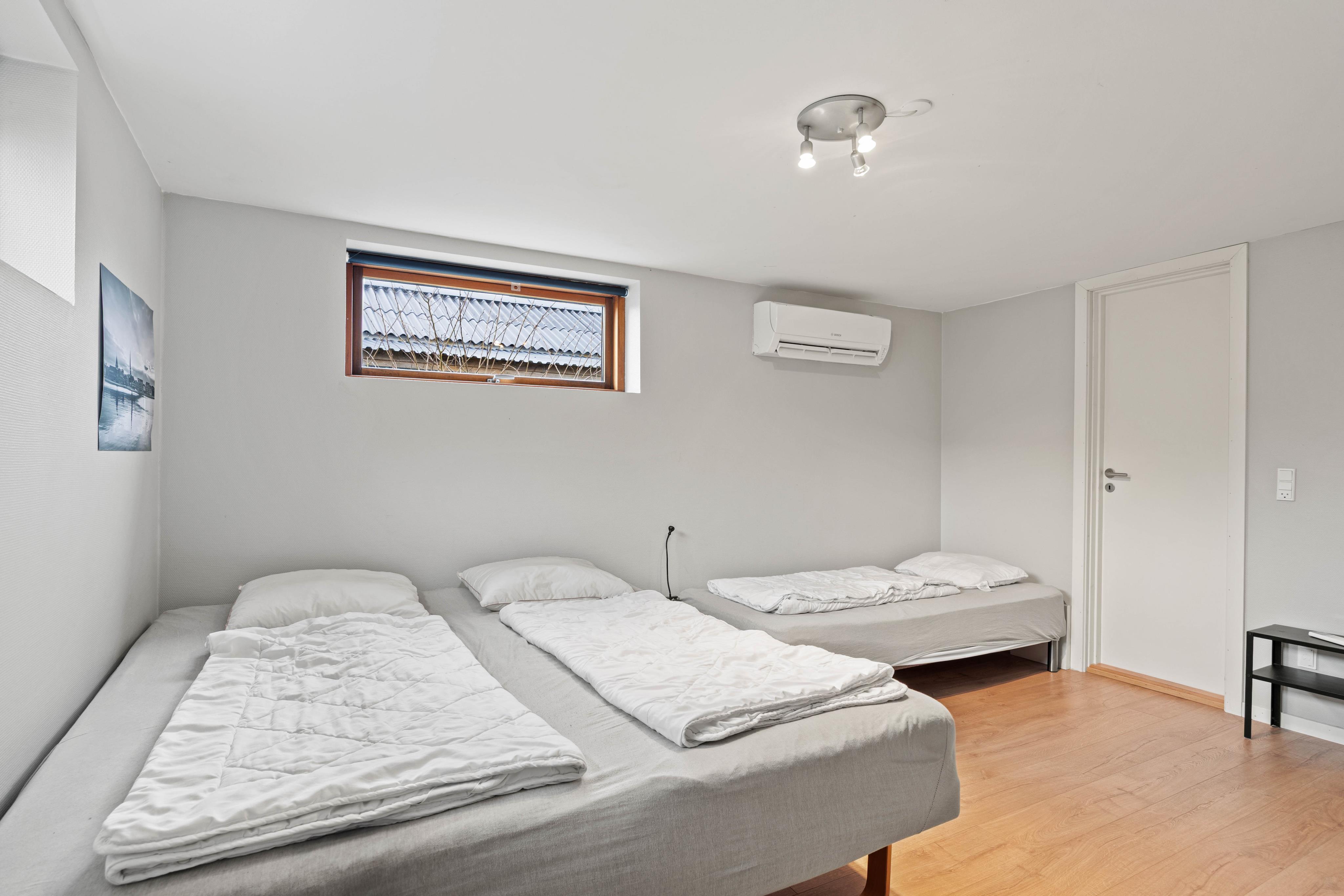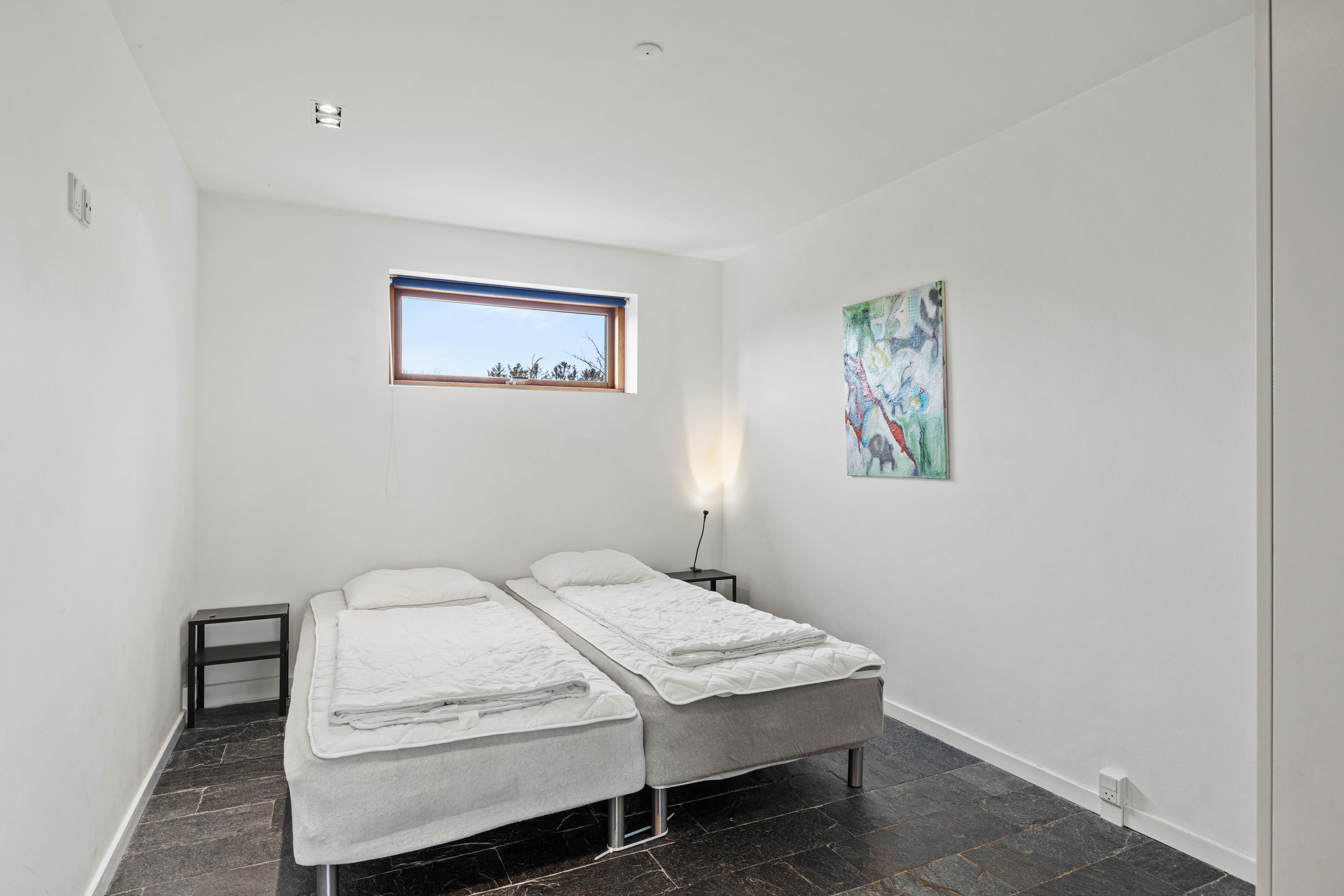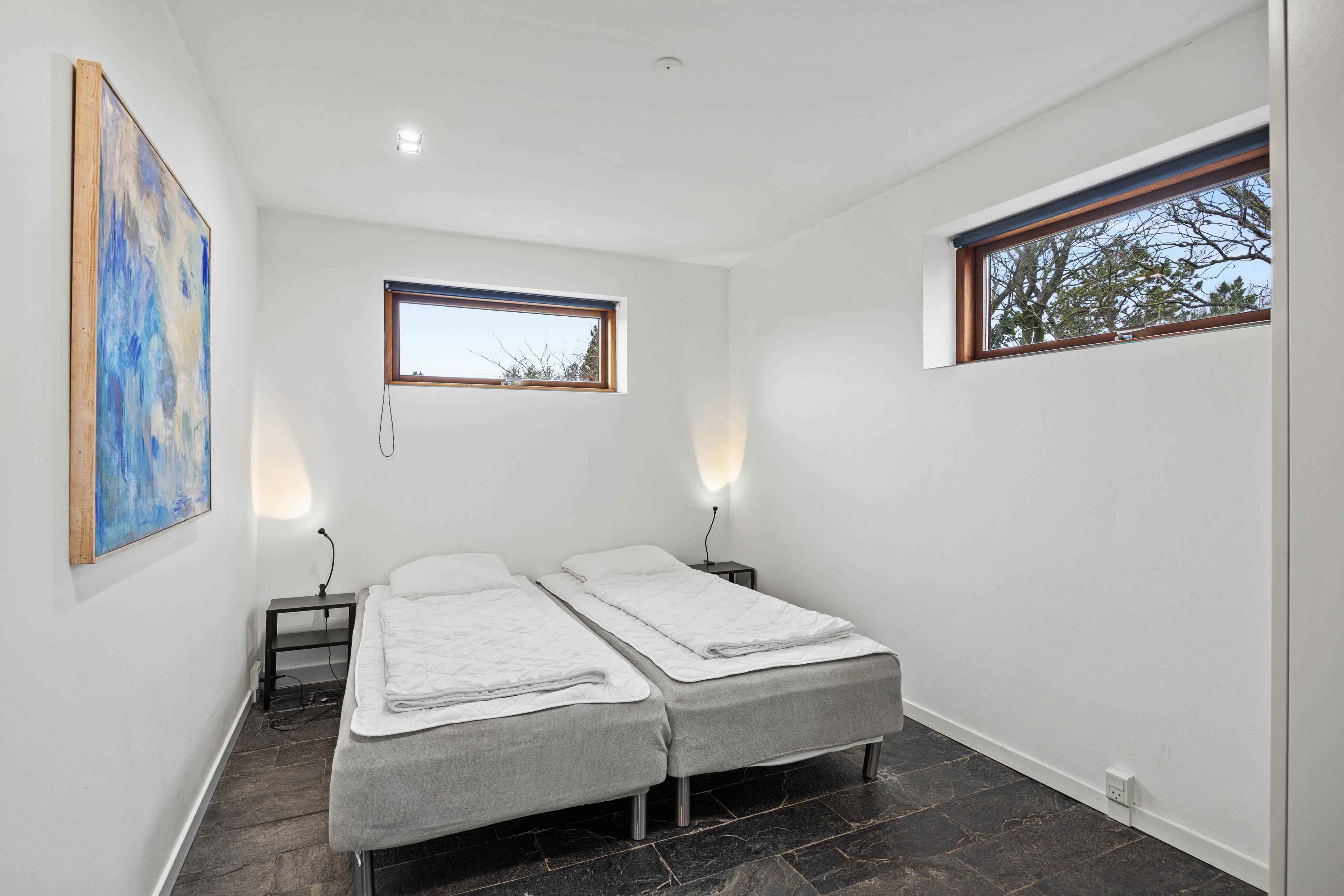 I sommerhuset er der 4 soverum, hvoraf 3 har dobbeltsenge og et har en køjeseng. Derudover er der i annekset to enkeltsenge samt en dobbeltseng. De 2 badeværelser fordeler sig ligeledes på begge bygninger, som bliver opvarmet med energibesparende varmepumper.