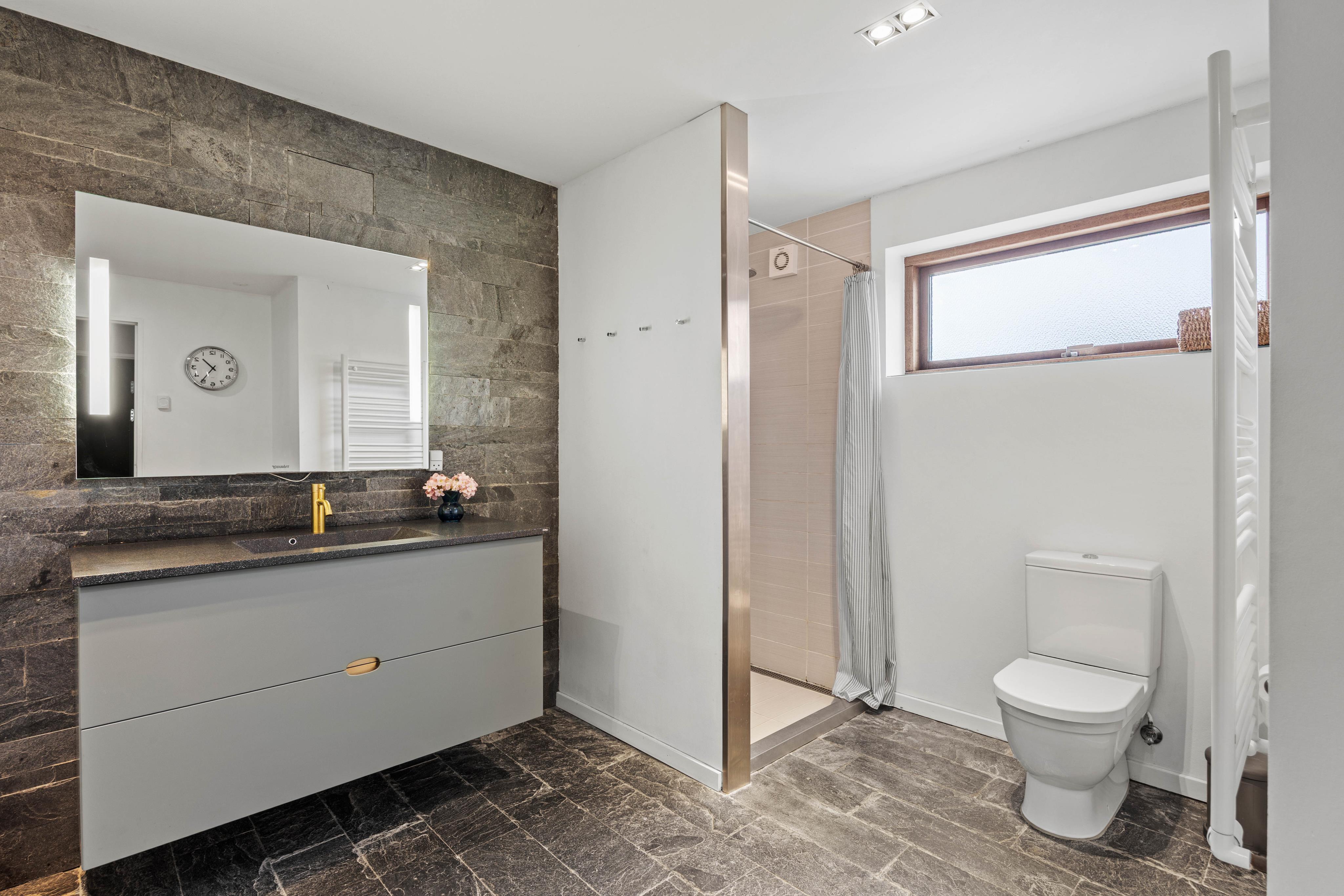 Der er ikke langt til vandet og de rene håndklæder til næste dags strandbesøg sørger vaskemaskinen og tørretumbleren for.