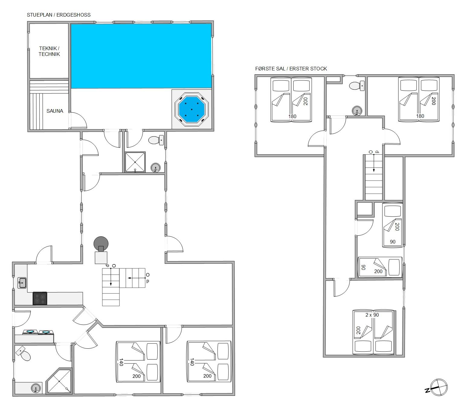Feriehuset egner sig godt til et større antal rejsende. Alt nødvendigt for at gøre det hyggeligt er til stede; gulvvarmen skaber en dejlig, hyggelig varme. På sofaen er der plads til alle, og poolen er stor nok til at boltre sig i, og haven og omgivelserne med de fantastiske strande og klitter er det naturligvis også.