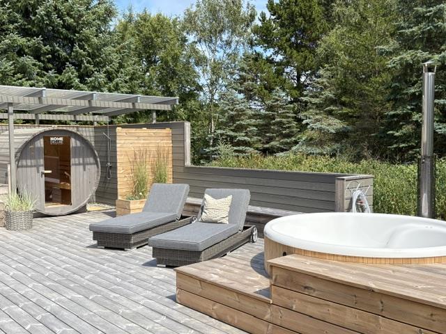 To rummelige åbne terrasseområder, beskyttet mod vind og nysgerrige øjne, inviterer dig til at blive hængende. Her kan du nyde solen og slappe af fra de tidlige morgentimer til aften. Den sydøst vendte terrasse, nybygget i 2024, er en lille wellness-oase med overdækket loungeområde med sauna og udendørs bruser. På begge terrasser (sydøst og sydvest) er der spiseborde til op til otte personer, liggestole og parasoller, så du kan vælge alt efter vejret. En kul og en gasgrill, som i er velkommen til at gøre brug af. Den engang overdækkede terrasse blev omdannet til en vinterhave.