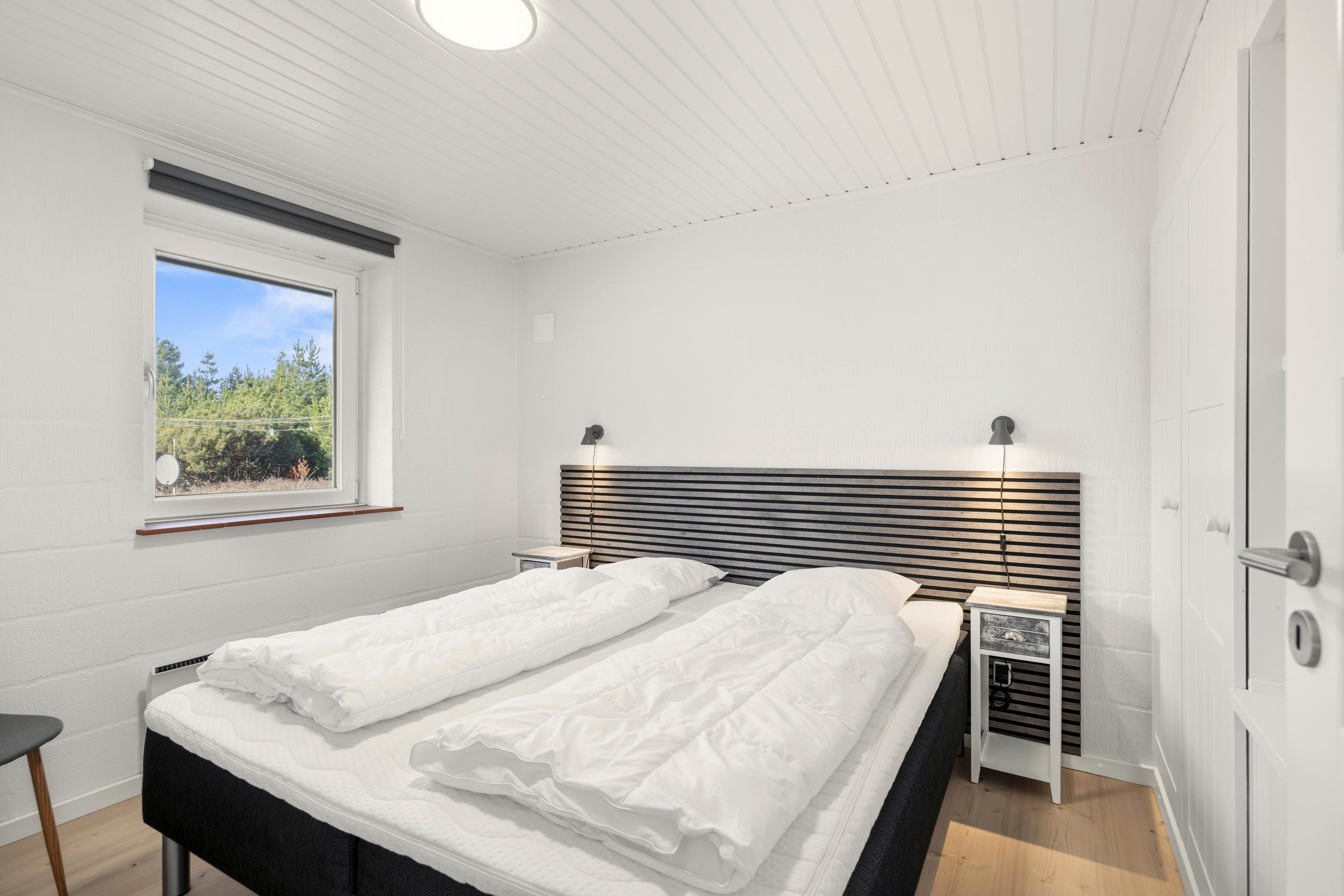 Sommerhuset har 3 soveværelser, hvoraf det ene er blevet nyrenoveret i 2025.