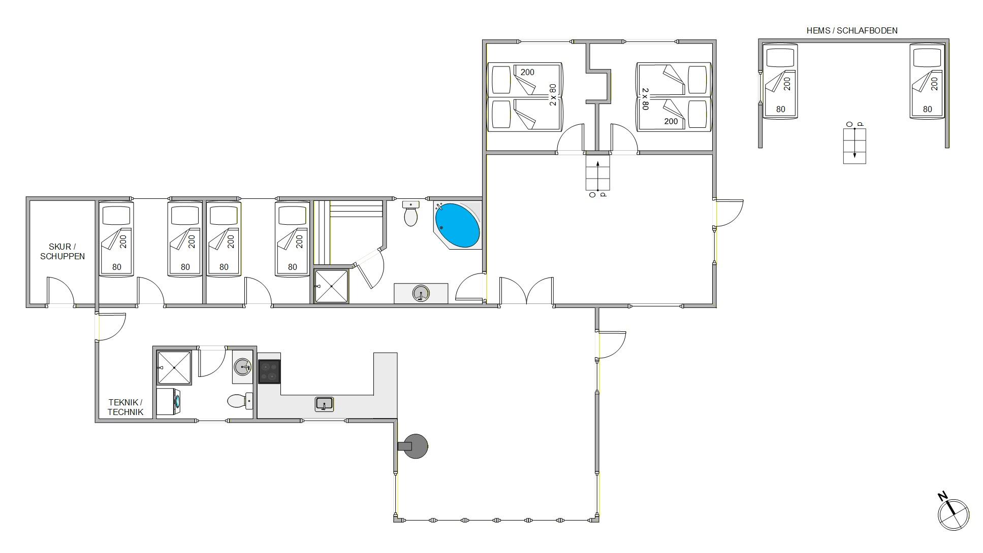 De 4 soveværelser med dobbelt- og enkeltsenge samt hemsen med 4 madrasser danner rammen for en god nattesøvn, så I med fornyet energi kan starte dagens aktiviteter.