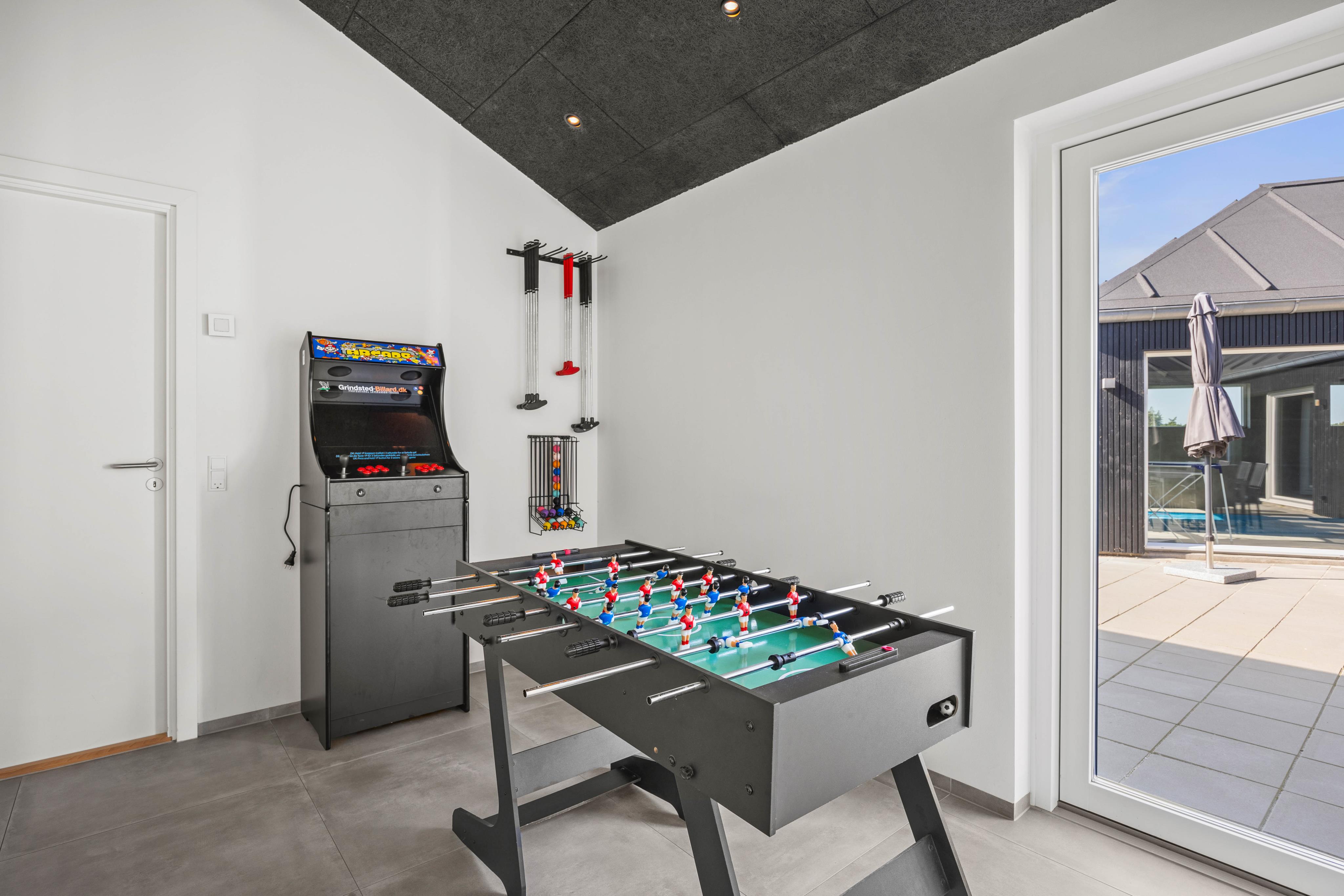 INFO: Dette charmerende poolhus på Rømø byder ikke kun på ren afslapning, men også på usædvanlige fritidsmuligheder: Fra 2026 venter en lille, hyggeligt anlagt privat minigolfbane med egne baner i haven – ideel til hyggelige stunder under åben himmel. Fra 2026 fuldender en nostalgisk spilleautomat i opholdsrummet det underholdende tilbud for både store og små.