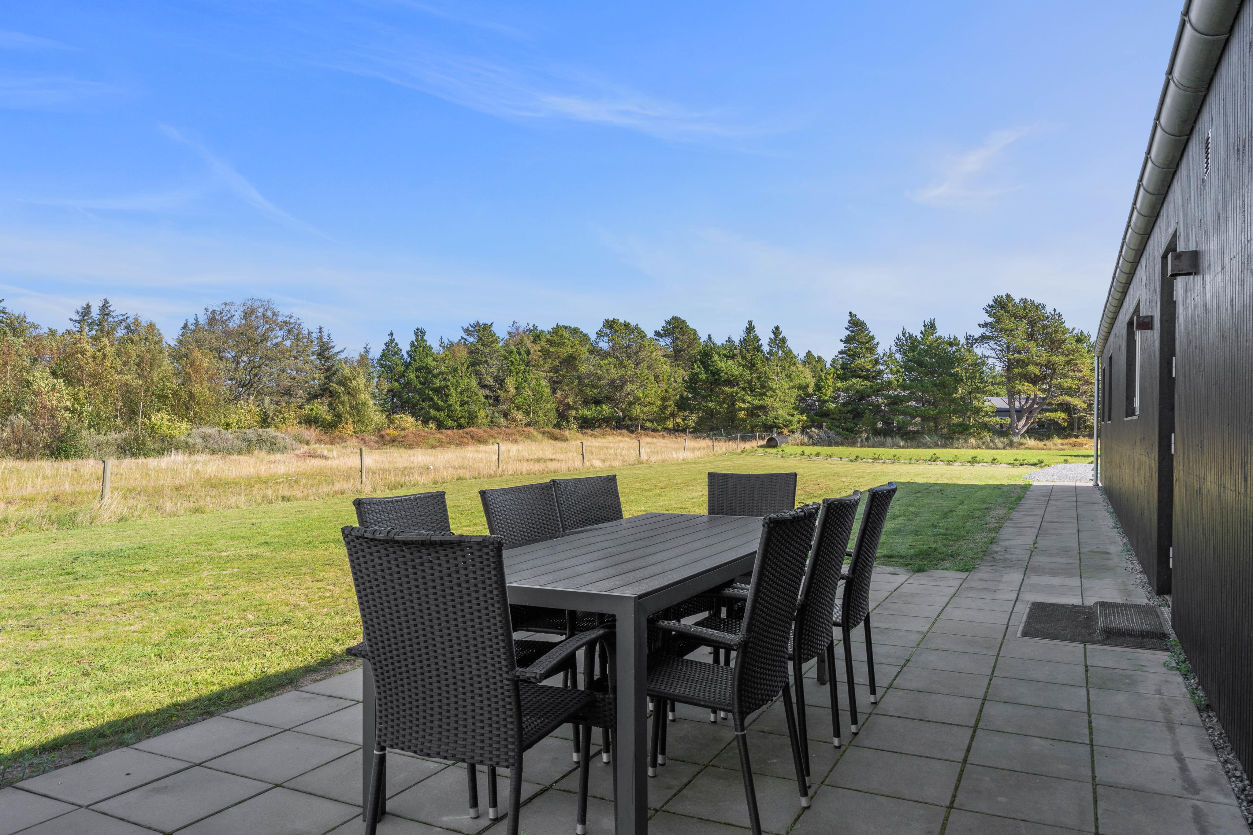 På den fantastiske terrasse med udsigt over naturen har I plads nok til at nyde solen. Bøfferne og pølserne grilles på gasgrillen i dette fantastiske sommerhus, mens i slapper af i havemøblerne.
