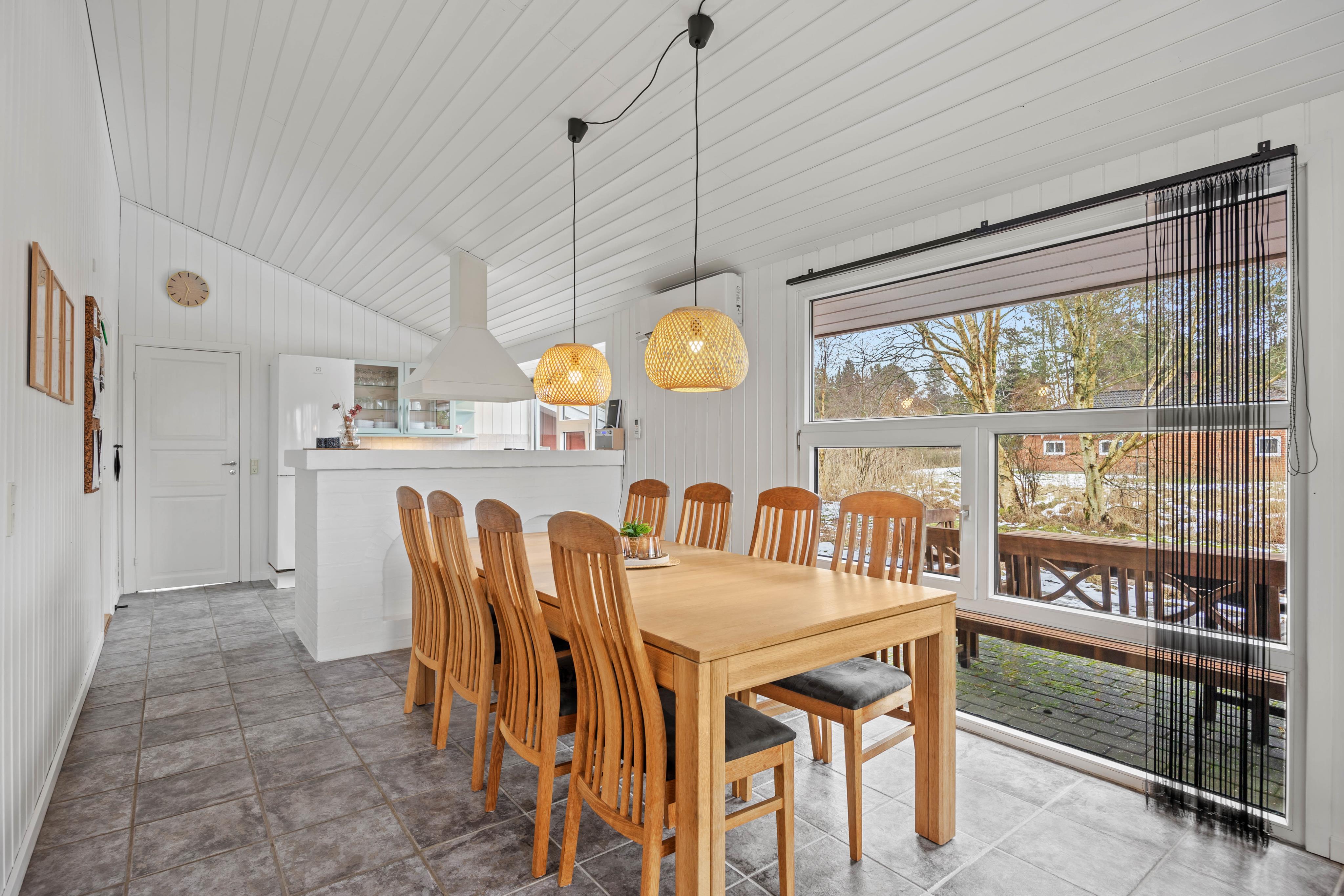 Hele huset er indrettet med lyse, træbeklædte vægge og praktiske gulve i opholdsrummene, som er optimal for både børnefamilier og hundeejere.