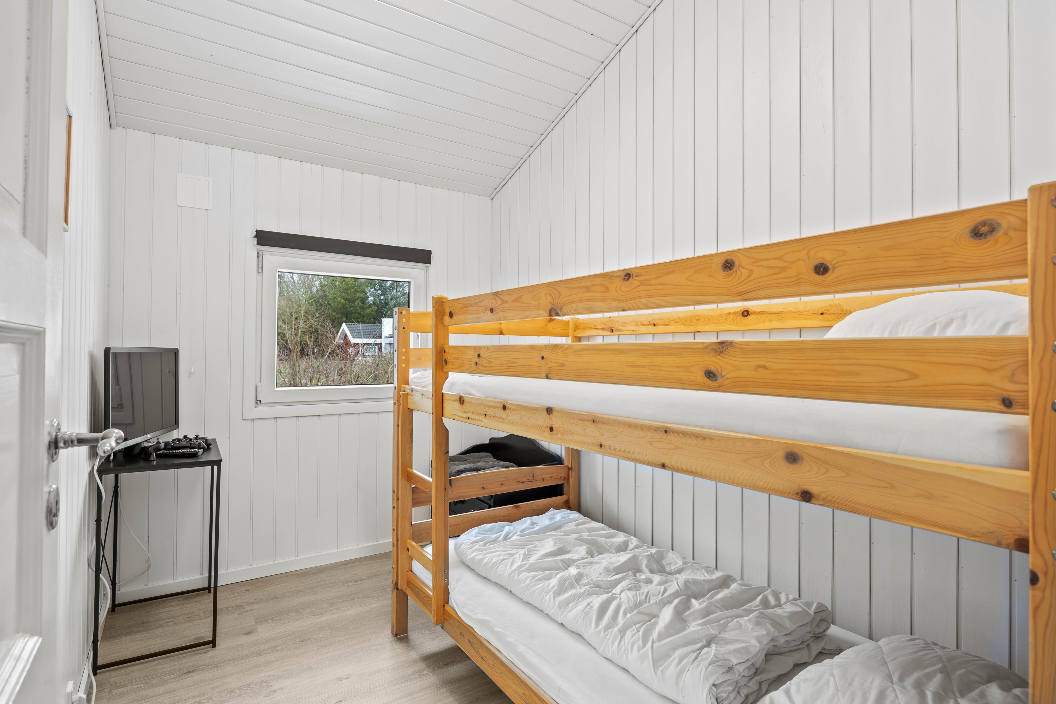 Med fire komfortable soveværelser er der rigelig plads til alle. De to soveværelser er udstyret med dobbeltsenge, 1 har enkeltsenge og det sidste har 2 etagesenge. Der er et komplet badeværelse med gulvvarme, og desuden er der et gæste-wc. Det ene badeværelse er udstyret med spa og adgang til sauna, hvor I kan nyde velvære for krop og sjæl.