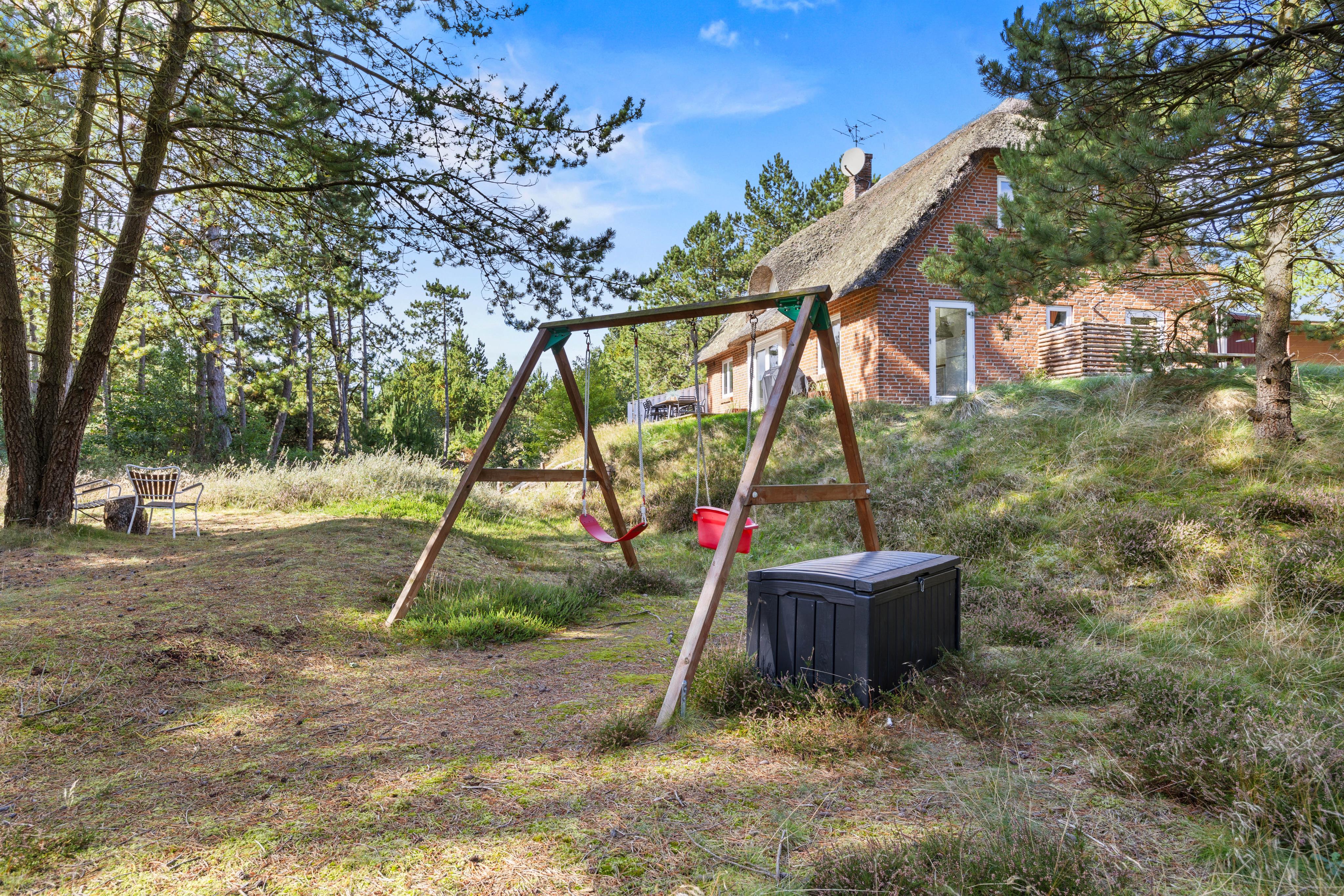 I sommerhuset i Vråby kan I nyde hyggen ved brændeovnen på kølige aftener og pladsen til afslapning på den 2.500m2 store grund. Her er der rig mulighed for at nyde solens stråler, mens børnene leger på gyngerne i haven. Sommerhusets moderne bekvemmeligheder inkluderer en vaskemaskine og ladestik til el-bilen, hvilket gør opholdet endnu mere bekvemt. Efter en dag på stranden kan I tage et forfriskende brusebad under udendørsbruseren eller slappe af i tømmespaen – ofte funkler en storslået stjernehimmel over Rømø og forvandler natten til et magisk lys.