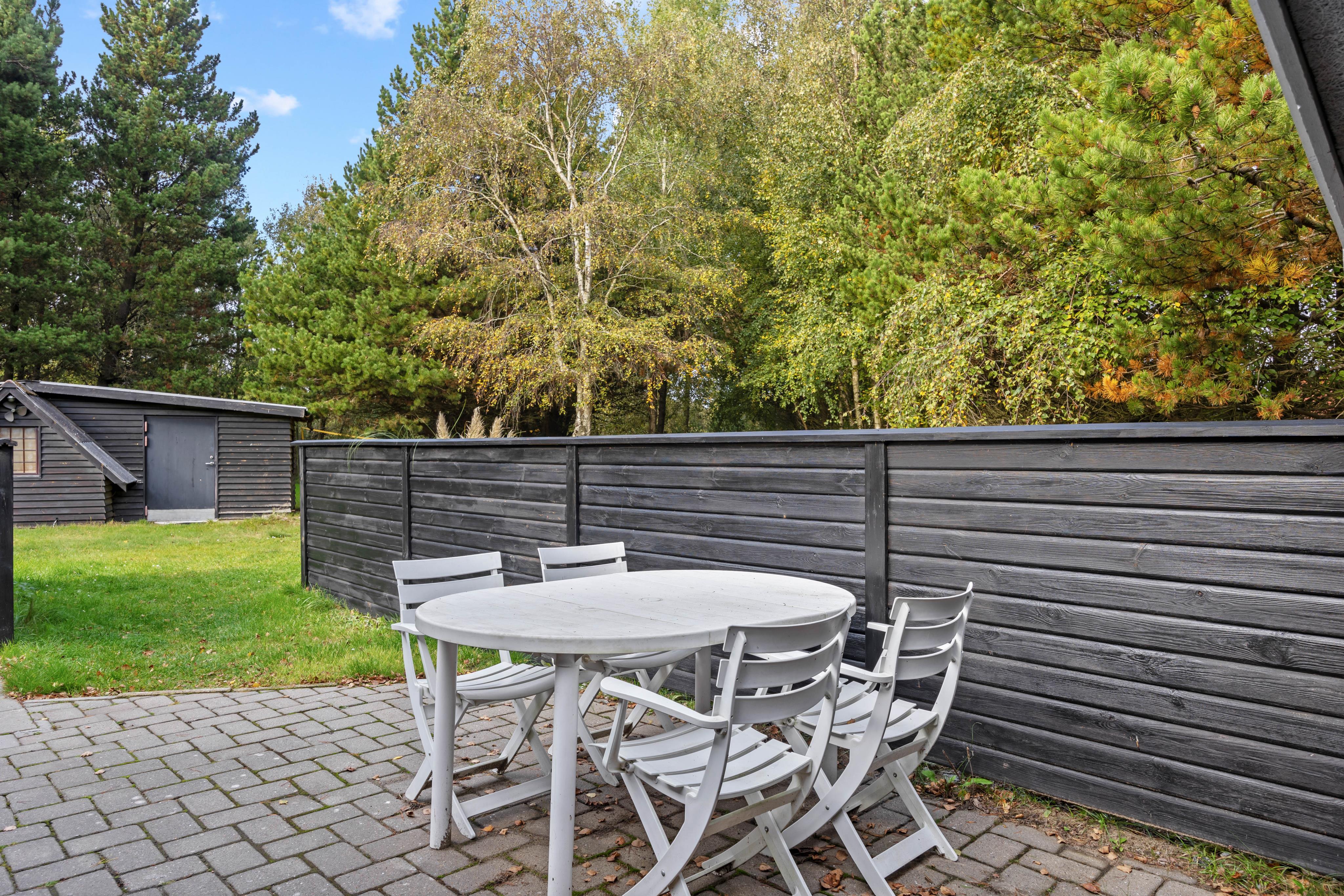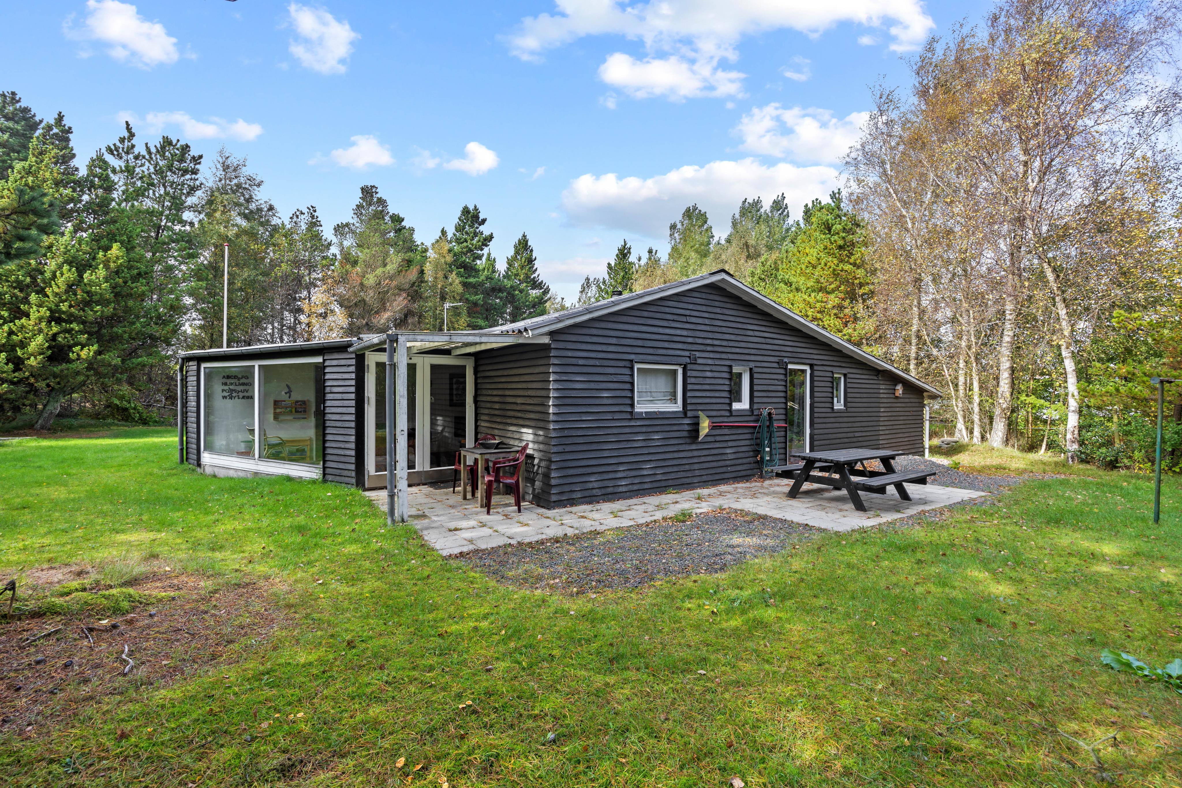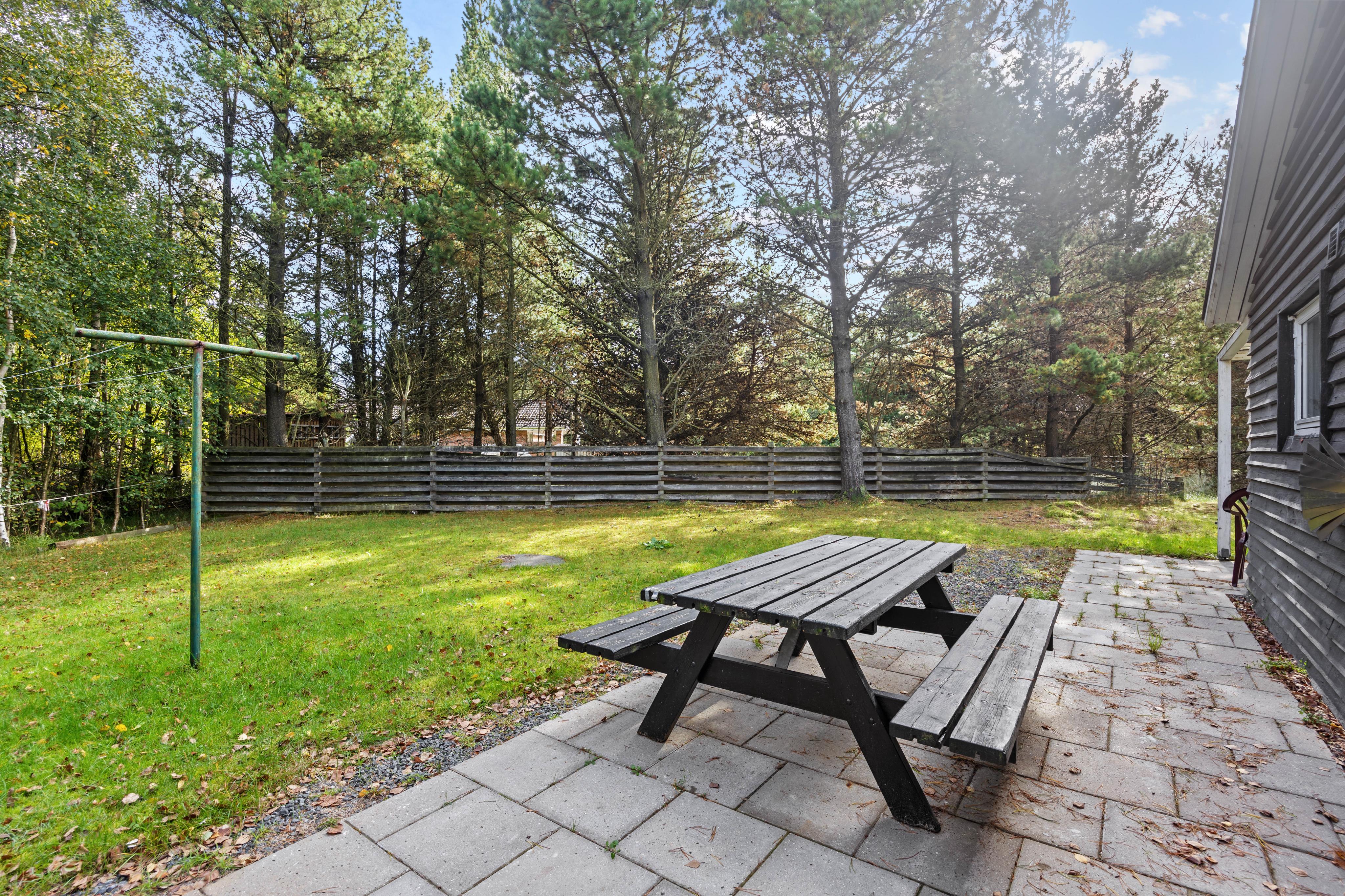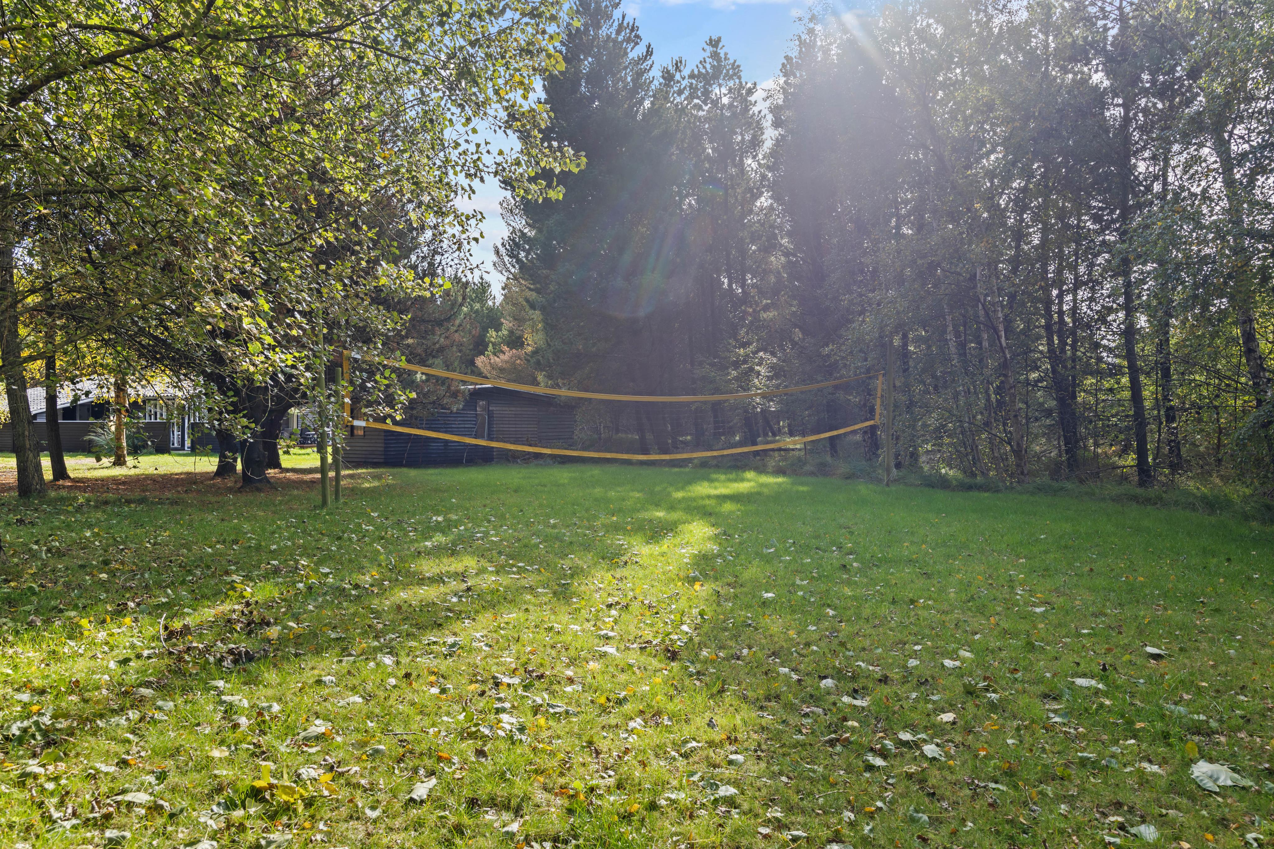 Husets højdepunkt er den store naturgrund på 2.750 m². En åben og en overdækket terrasse giver rig mulighed for at nyde den friske luft, mens du slapper af i de komfortable havemøbler. Hvad enten du tænder op i grillen eller spiller en omgang bordfodbold, bliver hvert øjeblik en oplevelse. For de aktive er der både en volleyballbane og en basketballbane på græsplænen – perfekt til hyggelig konkurrence og bevægelse i det fri. Sønderstrands dejlige badestrand ligger kun 1,1 km væk og indbyder til en forfriskende dukkert.