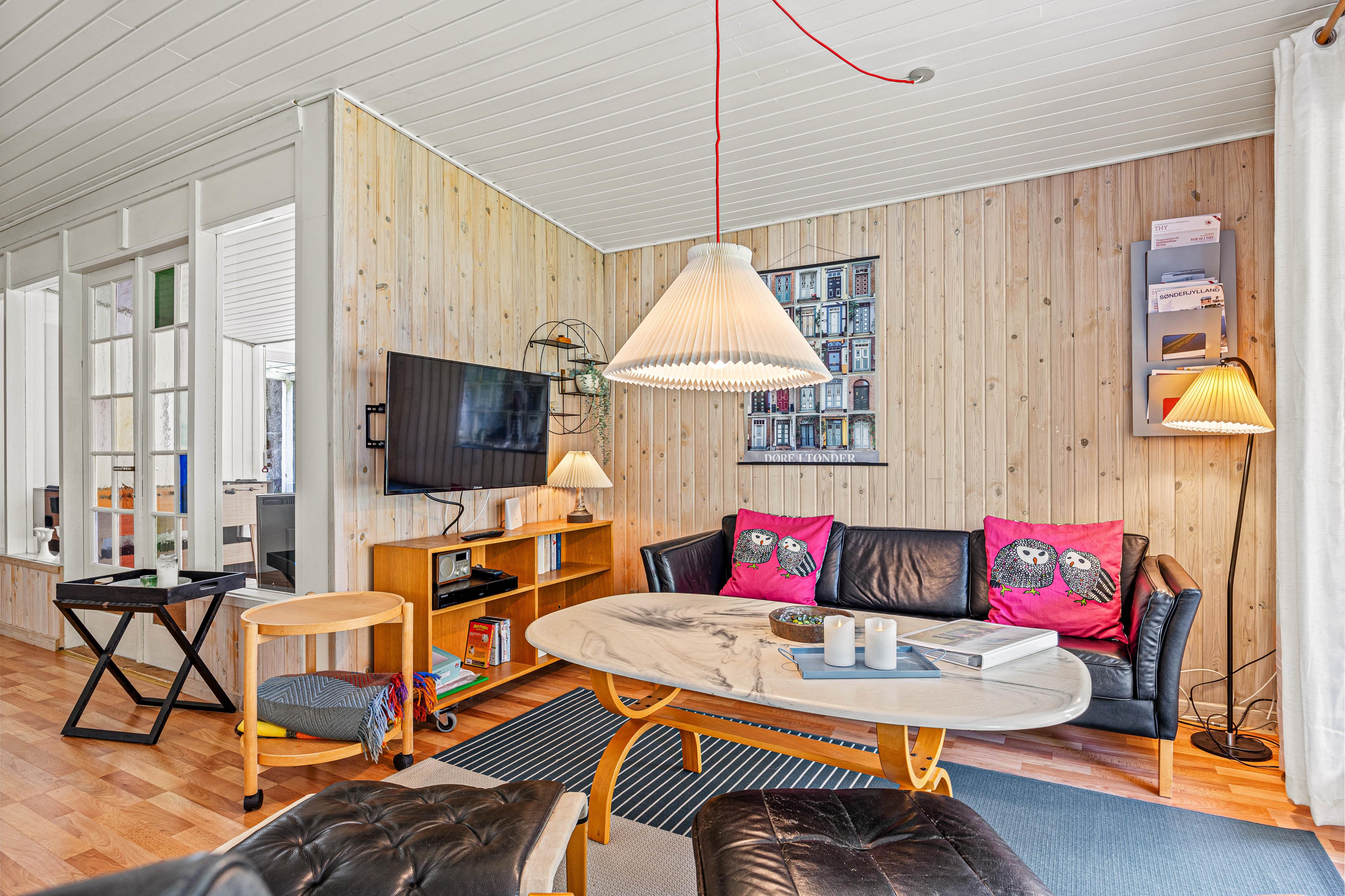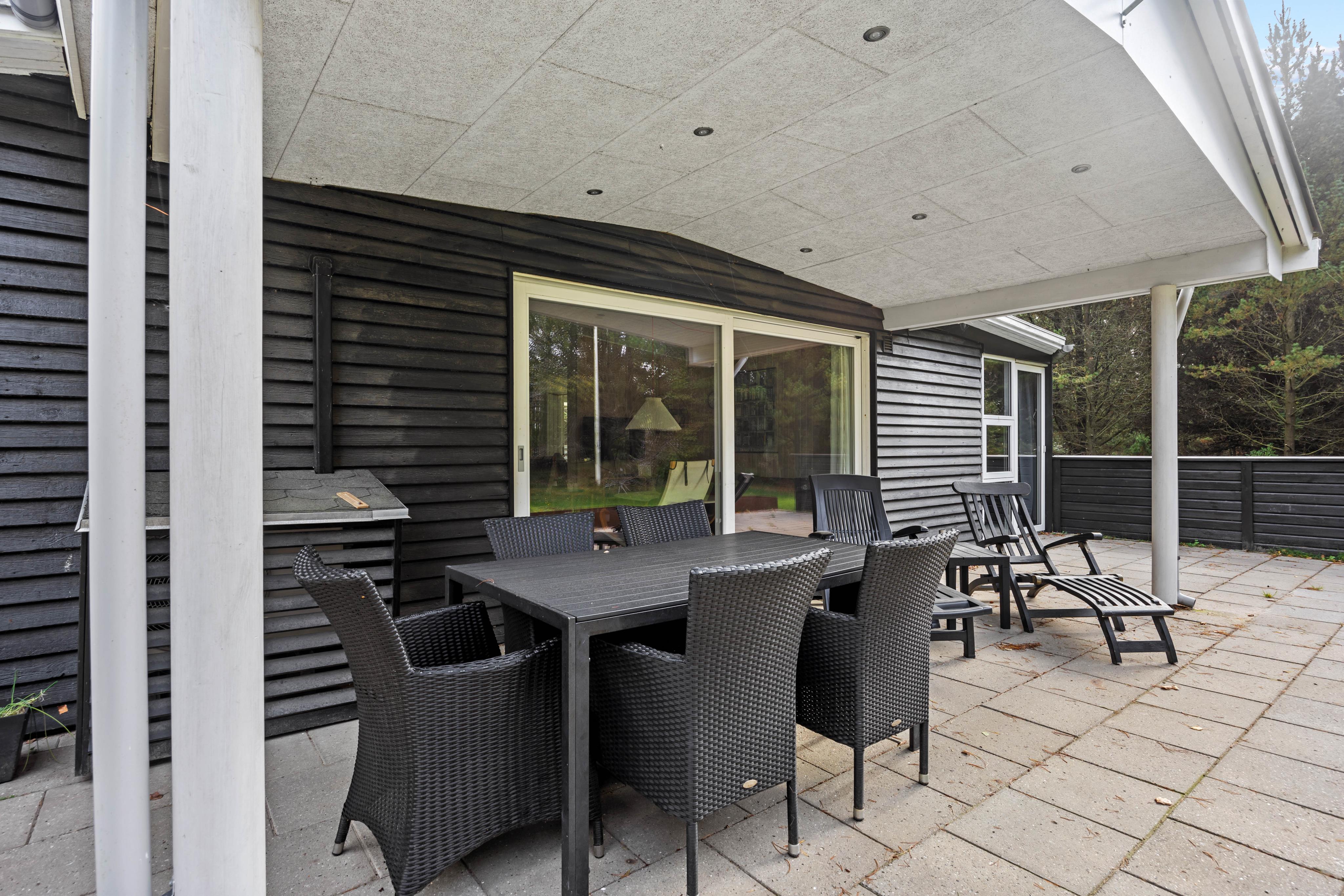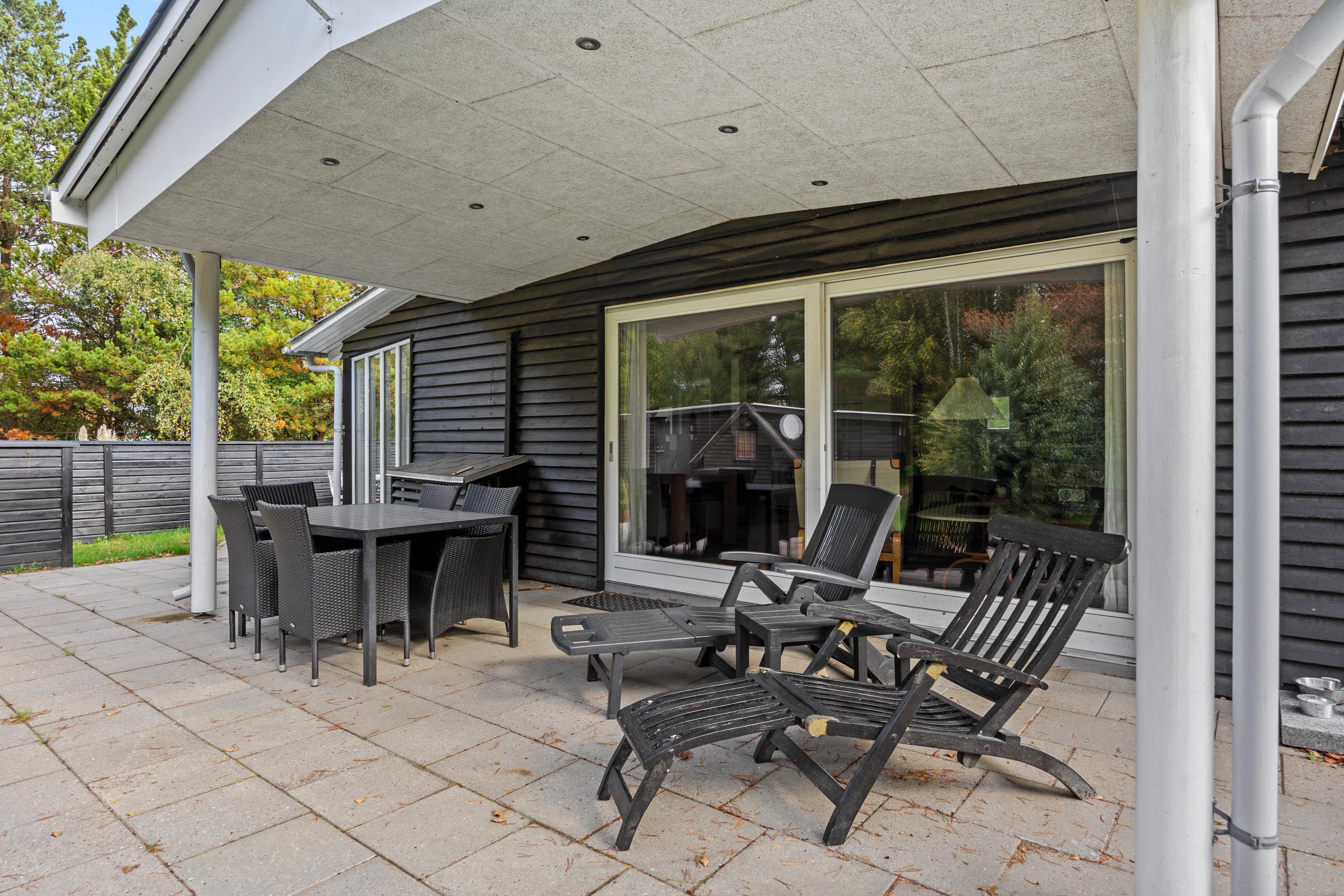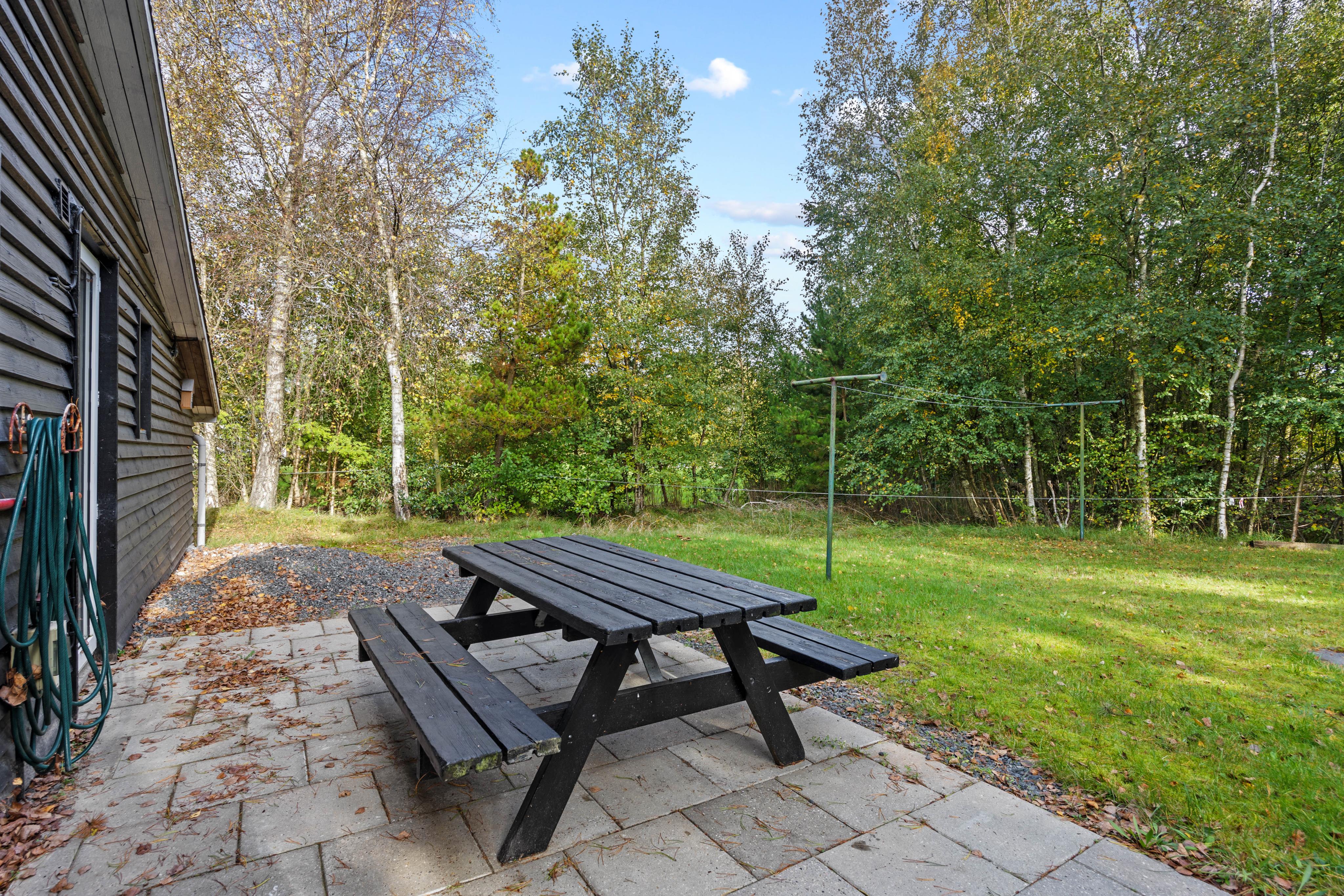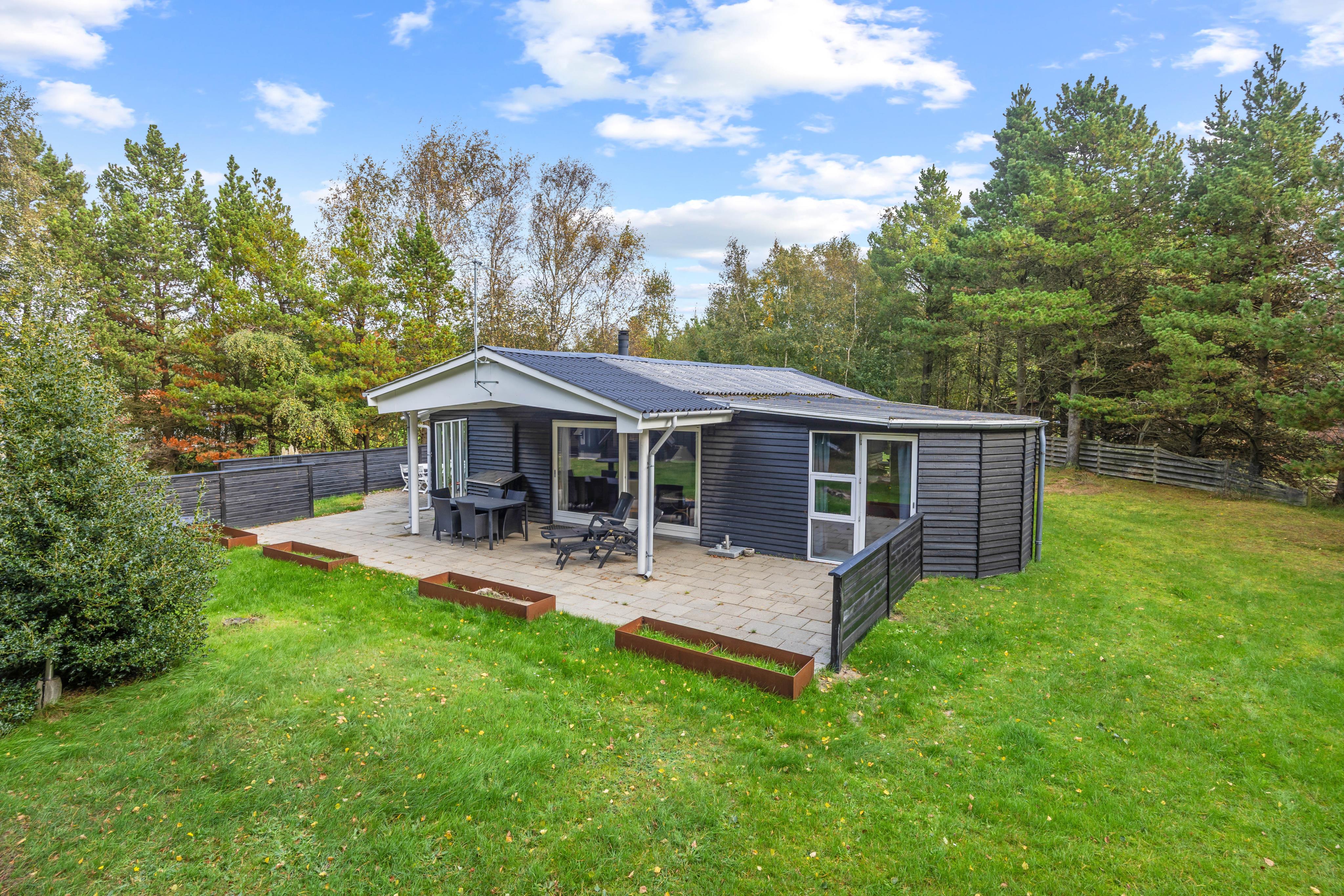Husets højdepunkt er den store naturgrund på 2.750 m². En åben og en overdækket terrasse giver rig mulighed for at nyde den friske luft, mens du slapper af i de komfortable havemøbler. Hvad enten du tænder op i grillen eller spiller en omgang bordfodbold, bliver hvert øjeblik en oplevelse. For de aktive er der både en volleyballbane og en basketballbane på græsplænen – perfekt til hyggelig konkurrence og bevægelse i det fri. Sønderstrands dejlige badestrand ligger kun 1,1 km væk og indbyder til en forfriskende dukkert.