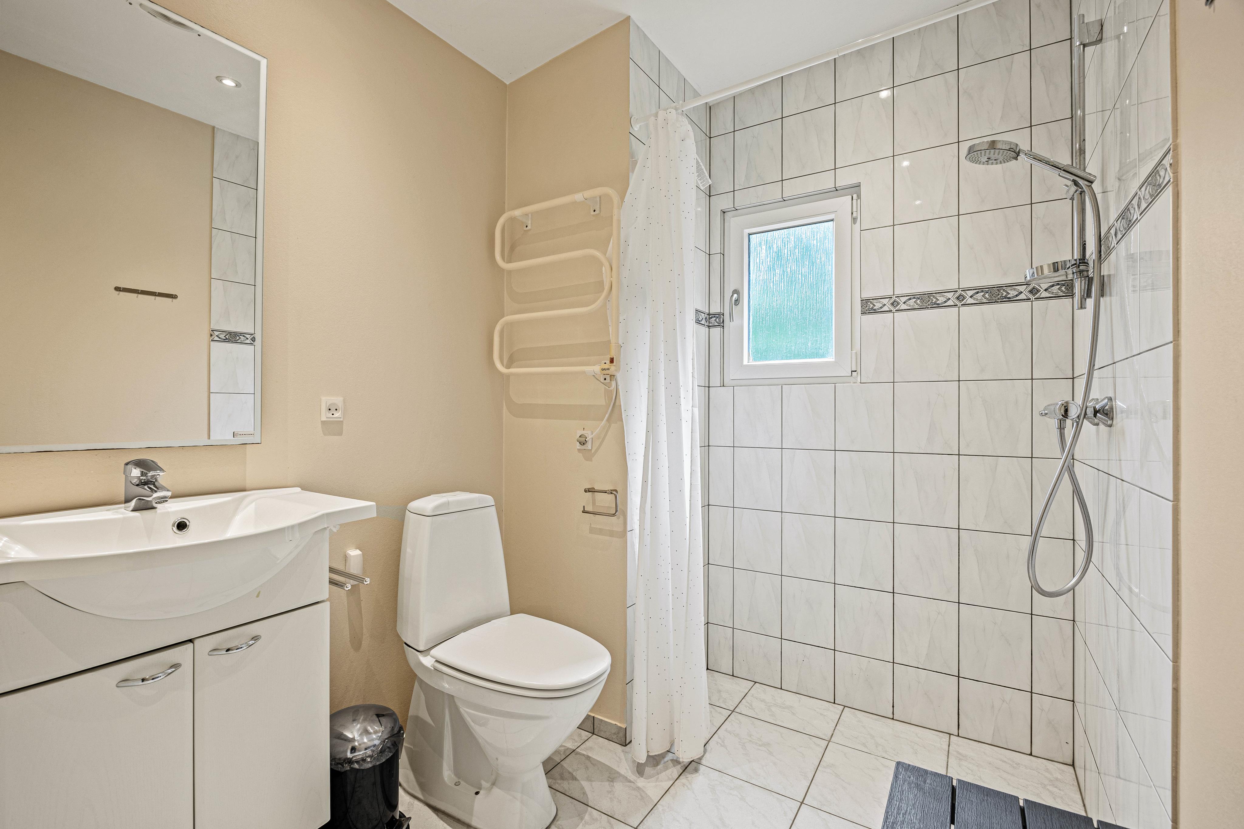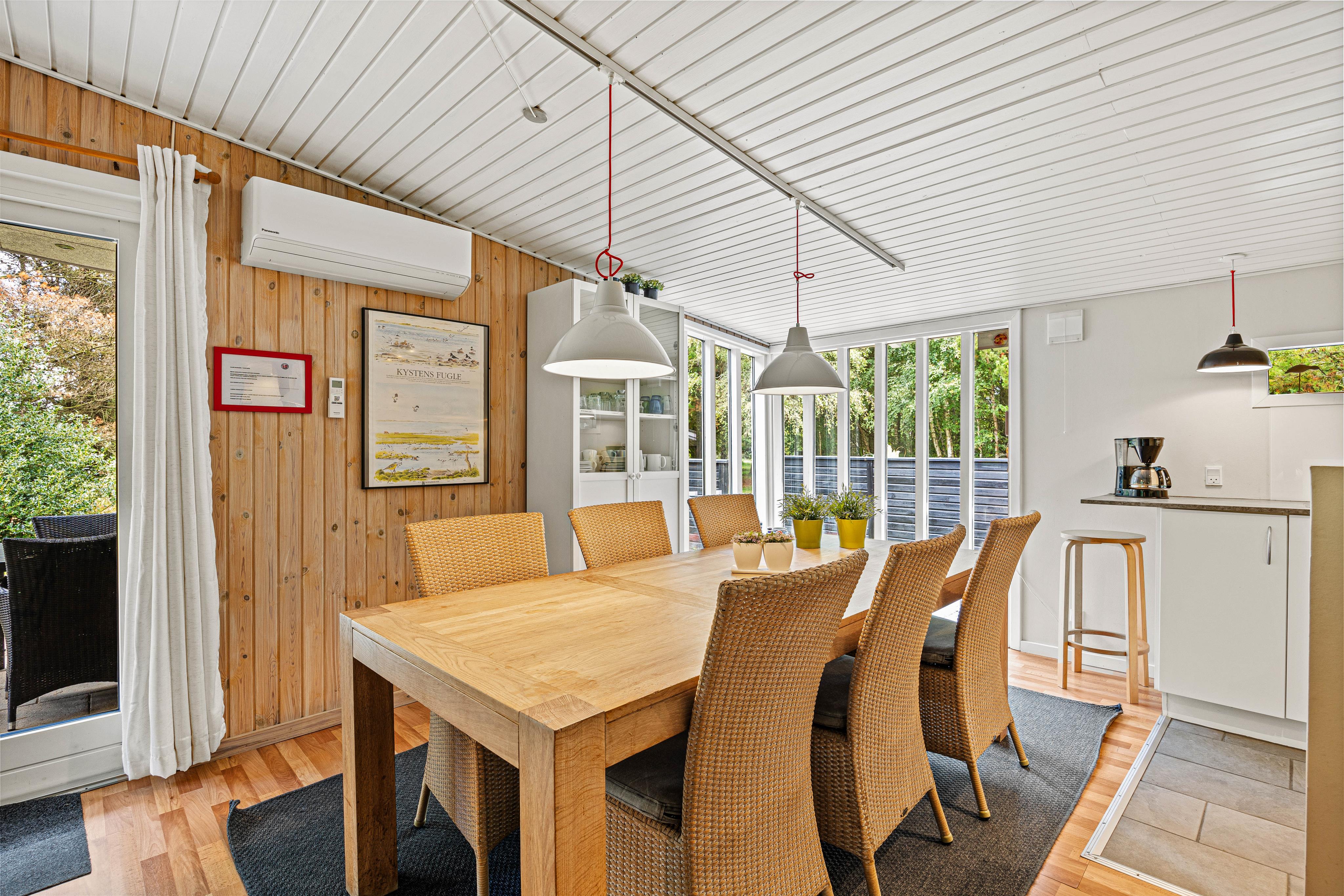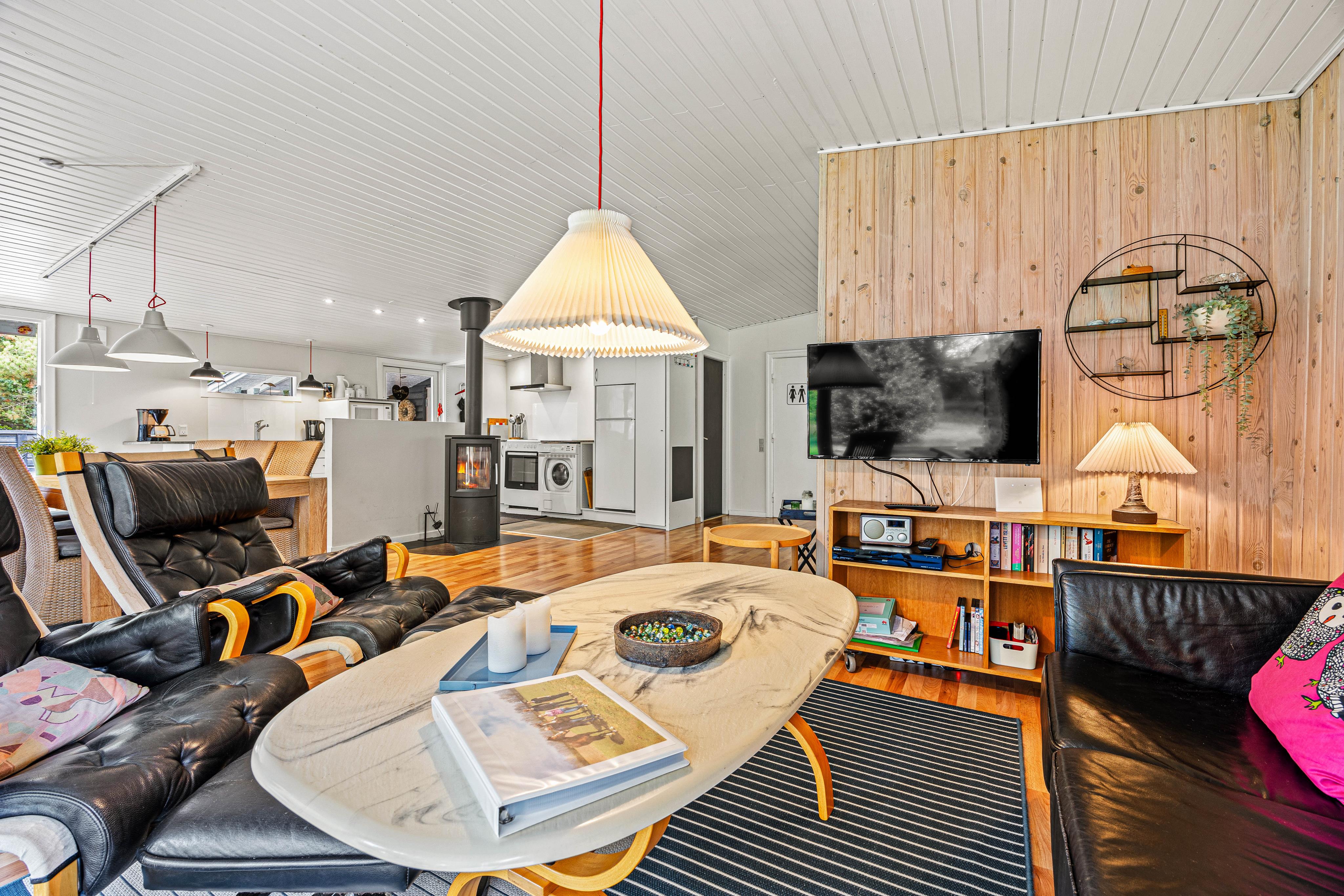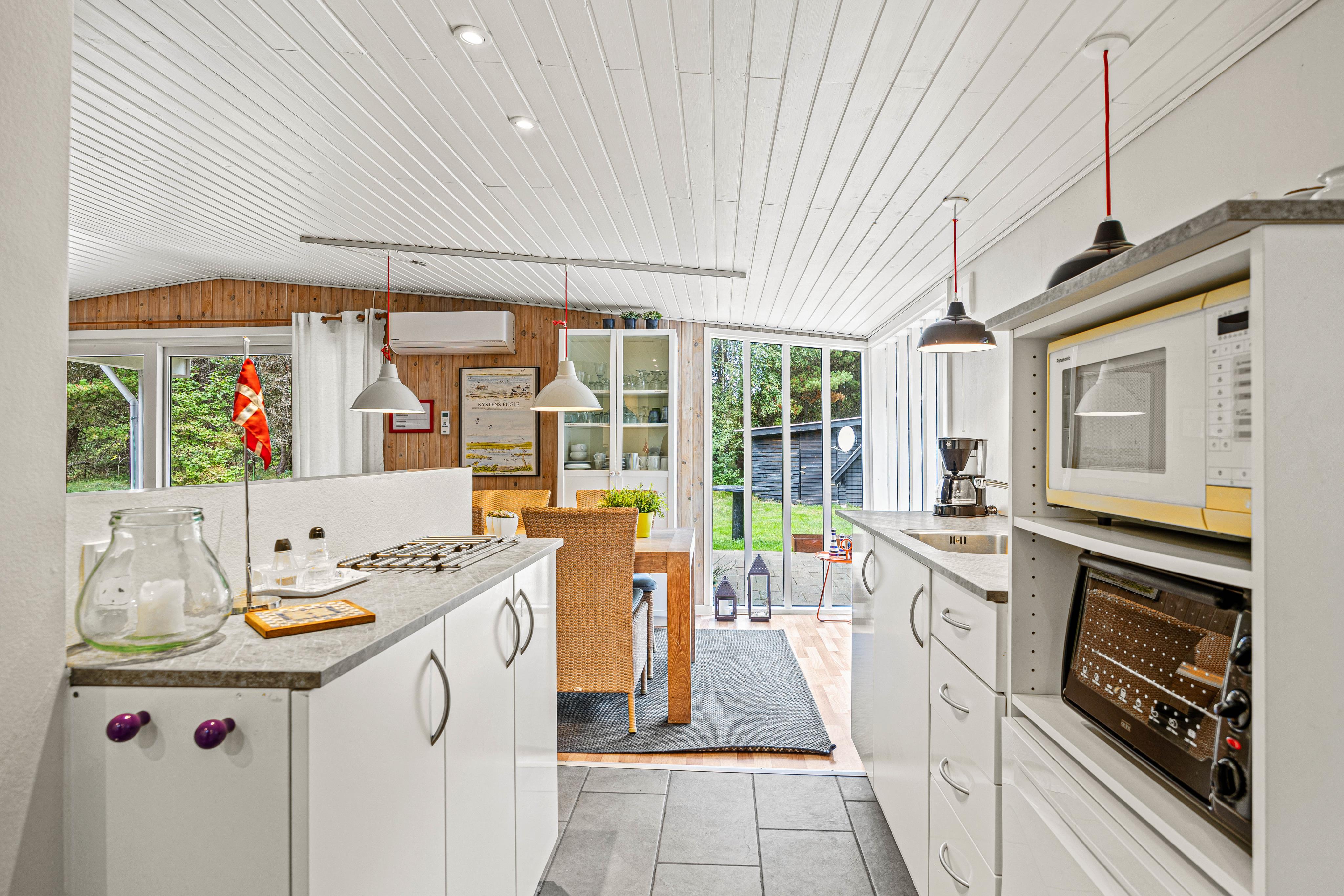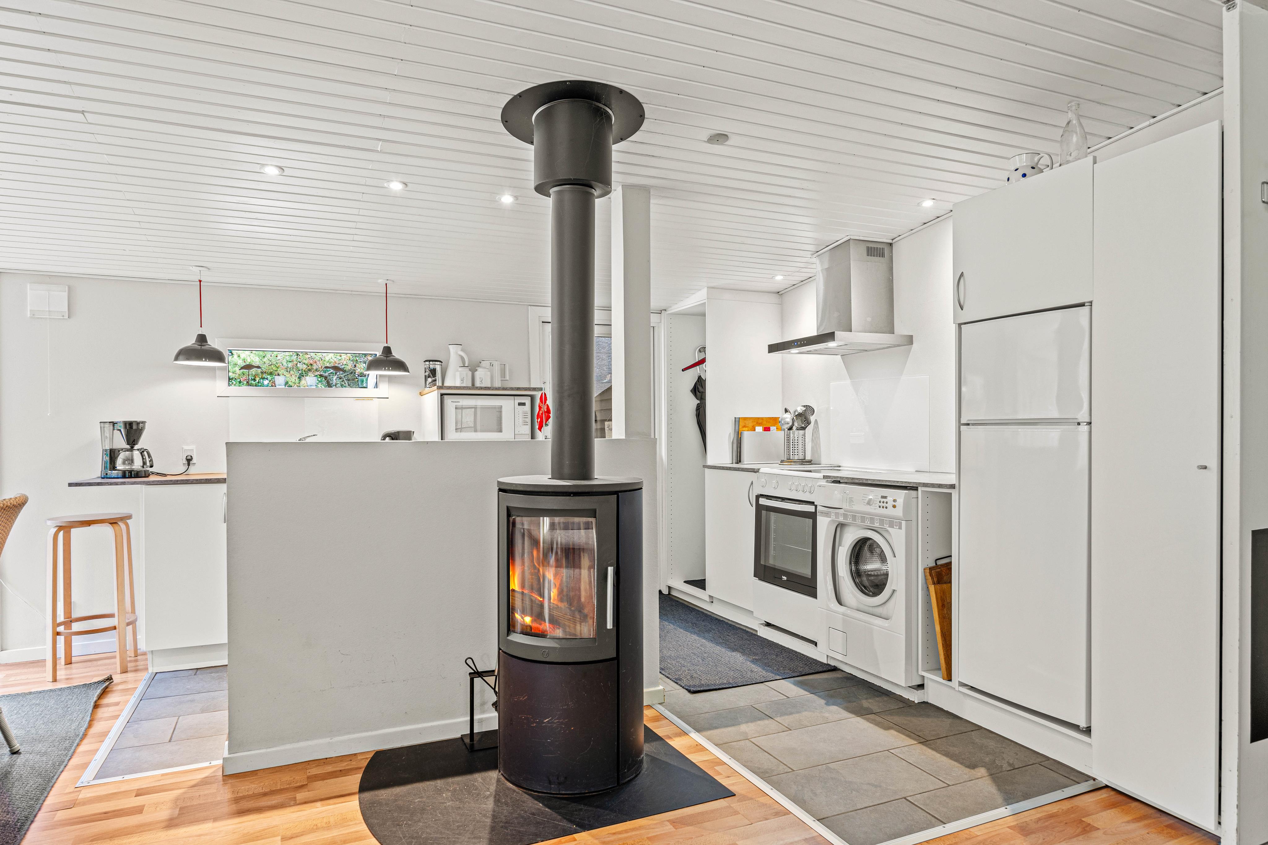 Ud over sin traditionelle charme byder sommerhuset også på moderne bekvemmeligheder såsom varmepumpe og gulvvarme på badeværelset for ekstra komfort. Den dejlige havestue giver mulighed for at nyde naturen – også på køligere dage. Faciliteterne fuldendes af en vaskemaskine og en spillekonsol med bl.a. Wii-spil, så både børn og voksne kan underholdes. Perfekt til afslapning med familie eller venner og til at skabe nye, gode minder.