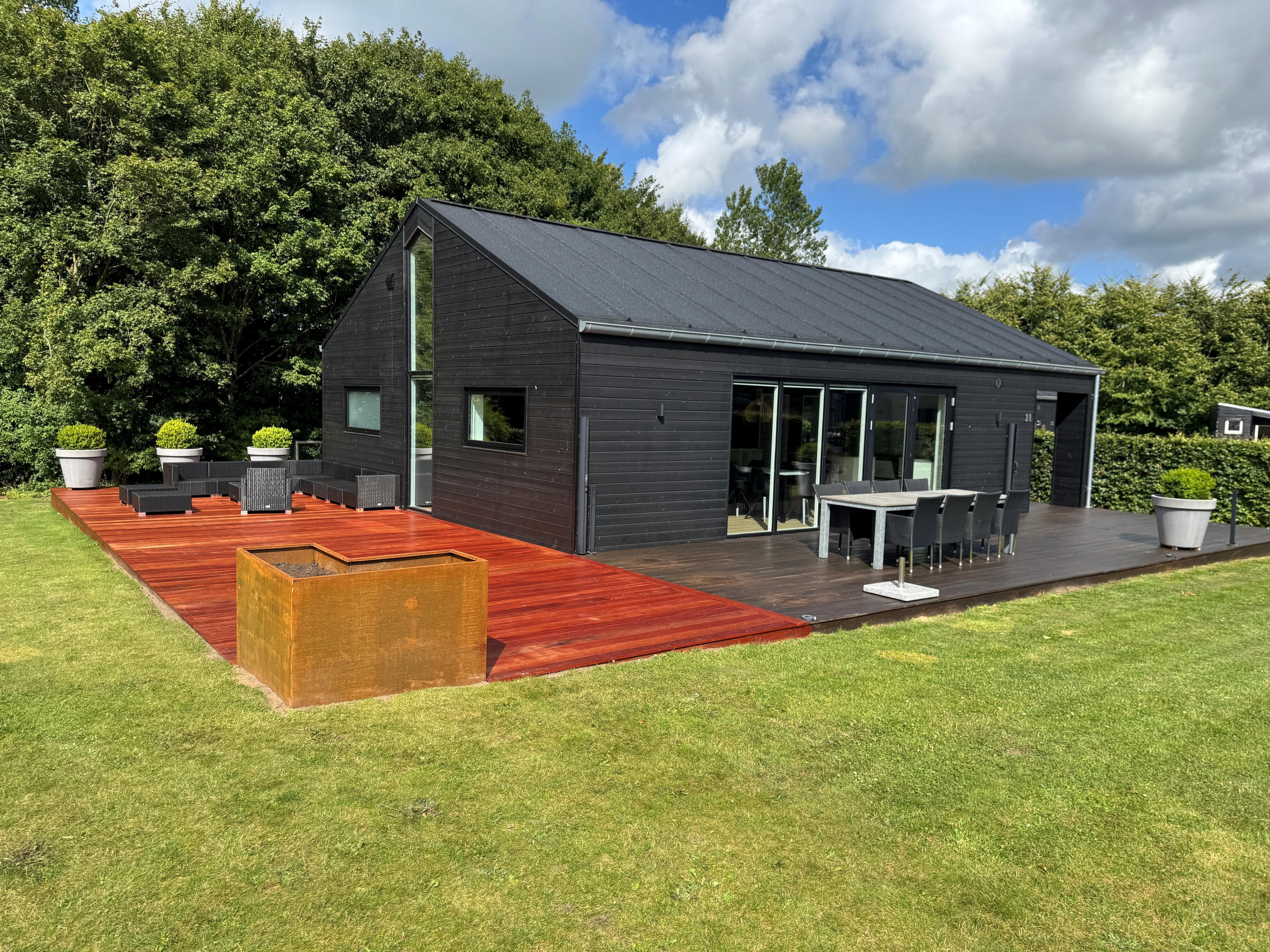 Efter dagens eventyr kan I trække jer tilbage til husets 2-personers standspa, hvor boblerne opløser hverdagens stress, og I kan nyde stilheden i eget tempo. Uderummet breder sig over en 800 m² plænegrund med både åben og afskærmet terrasse – ideel til solbadning på solvognene eller kaffe i skyggen under parasollen. Grillen indbyder til fælles grillmiddage, mens gynge, trampolin, rutschebane og åbent areal giver plads til leg og bevægelse i trygge rammer. Når duggen falder, kan I tænde lyset på terrassen og lade aftenen fortsætte under stjernerne, omgivet af det rolige landskab.