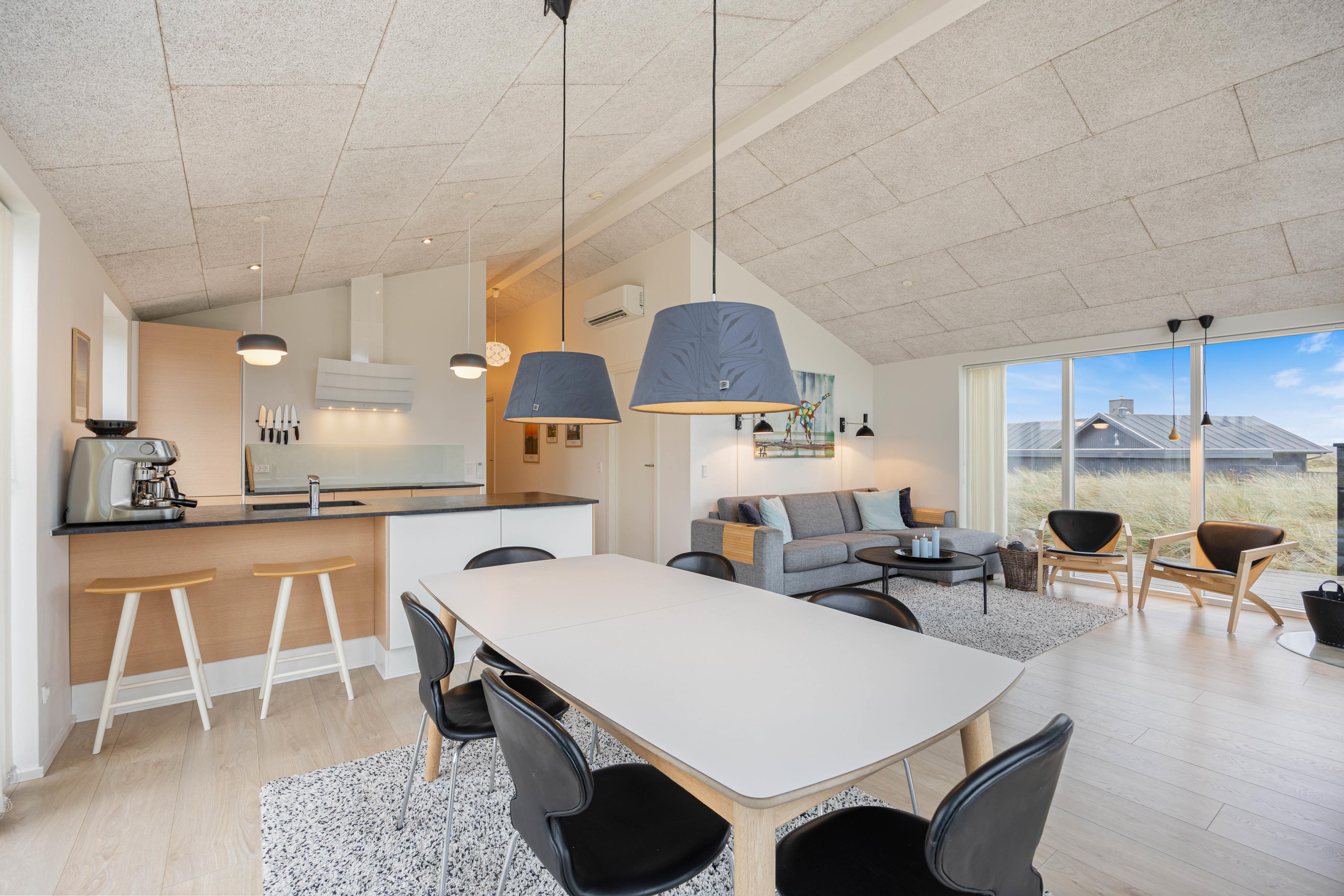 Sommerhuset ligger i den bedste beliggenhed tæt på stranden. Ren afslapning fra første øjeblik. På grund af beliggenheden midt i klitterne har man absolut ro uden at føle sig indelukket eller overvåget. Det er rummeligt og lyst indrettet. Det mangler ikke noget i husets udstyr – fra det moderne køkken til udendørsbruser og havemøbler – det er simpelthen alt der. Perfekt for enhver, der søger ro og natur og ønsker at undslippe hverdagens travlhed. Simpelthen hyggeligt og alligevel meget moderne! En drøm!