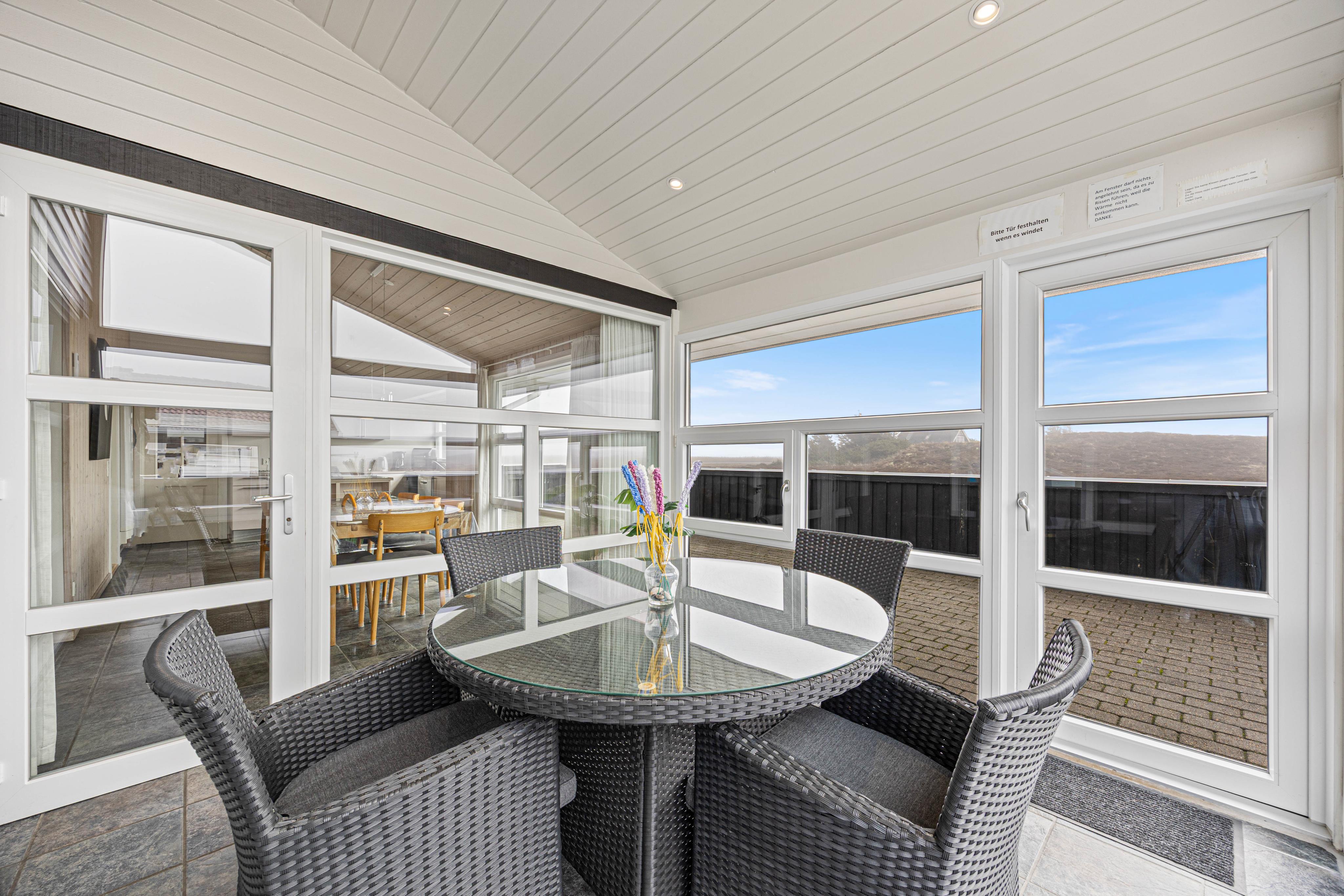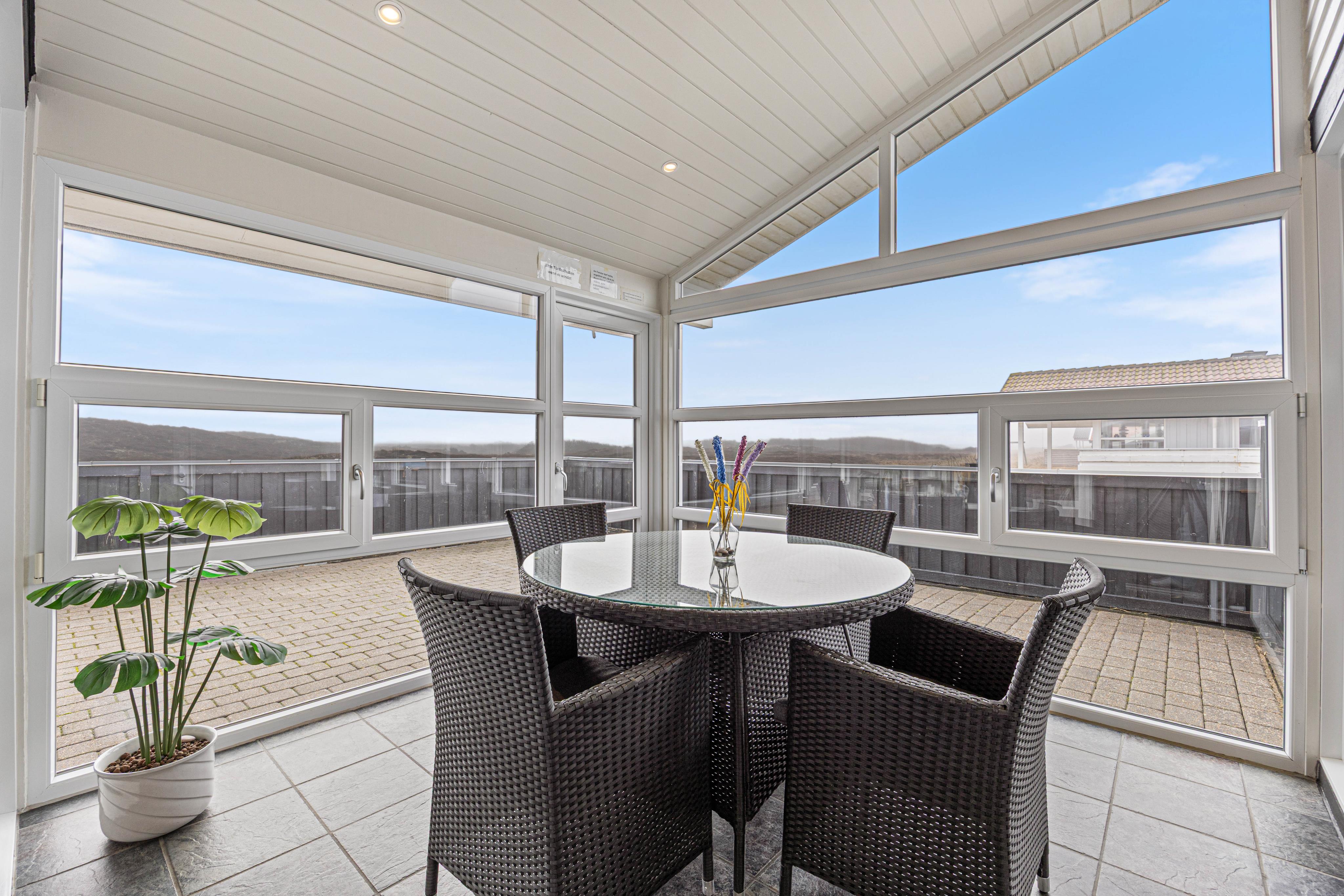Et af sommerhusets highlights er den fine udestue, som forlænger en lun sommeraften og ellers et hyggeligt samlingspunkt på en regnvejrsdag.