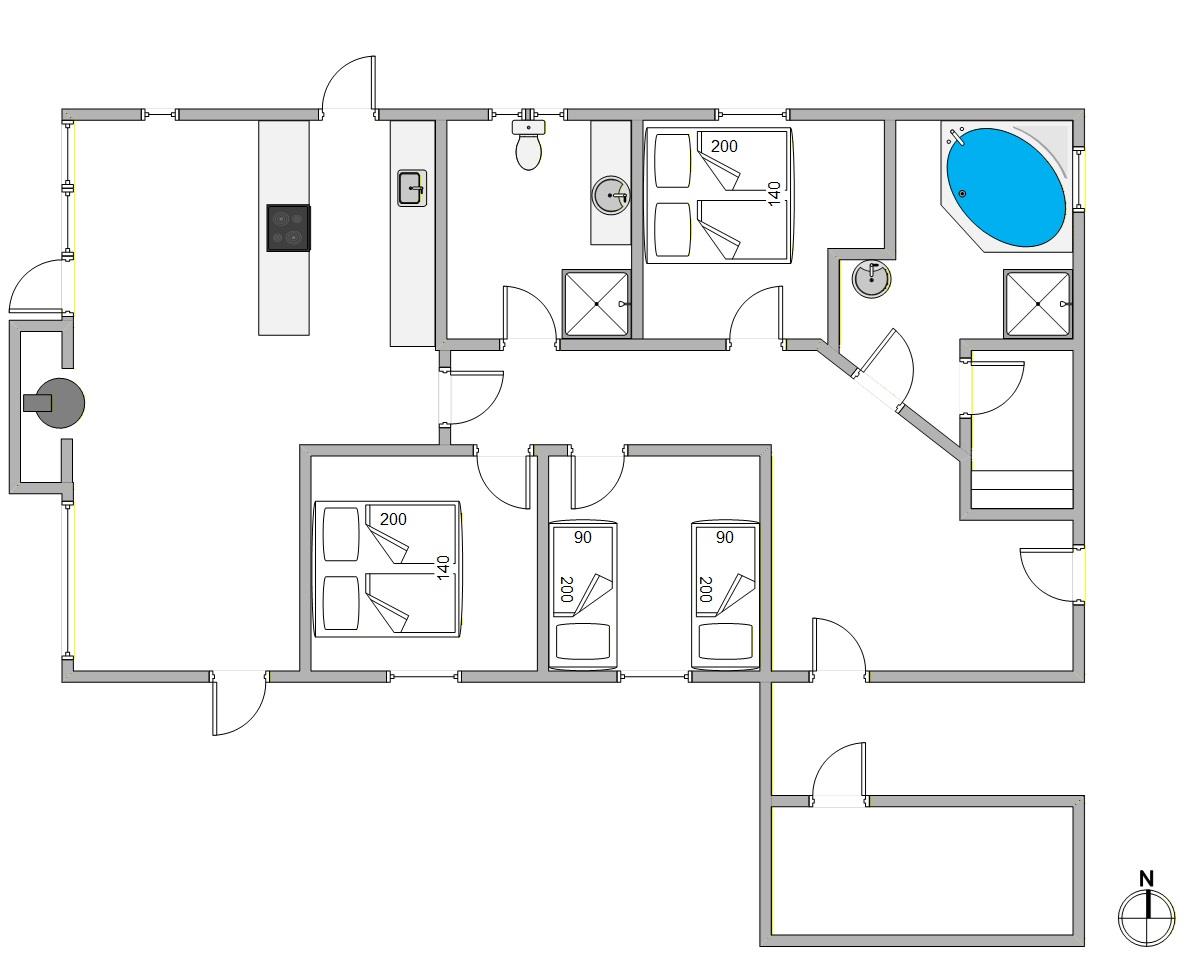 Feriehuset er super. Flotte terrasser, godt udstyret køkken, velholdt badeværelse og ren udendørsanlæg. Det eneste irriterende for os var dobbeltsengene på 1,40 m til to voksne.