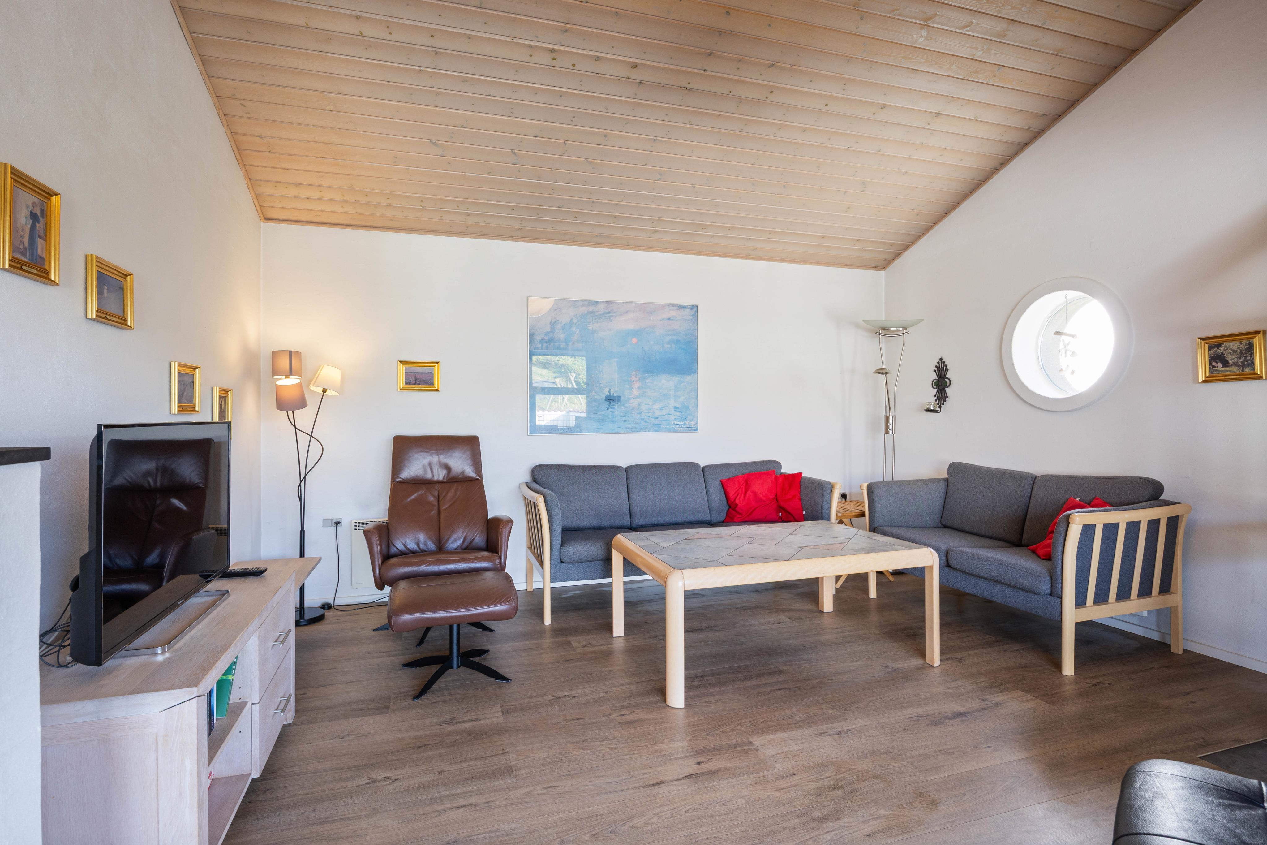 I den hyggeligt møblerede stue finder I masser af plads til at slappe af ved den varme brændeovn. Stuen er i åben forbindelse med både køkken og spiseplads, så hele familien kan være samlet, så meget som muligt – også når der skal laves mad. Der er opvaskemaskine i køkkenet.