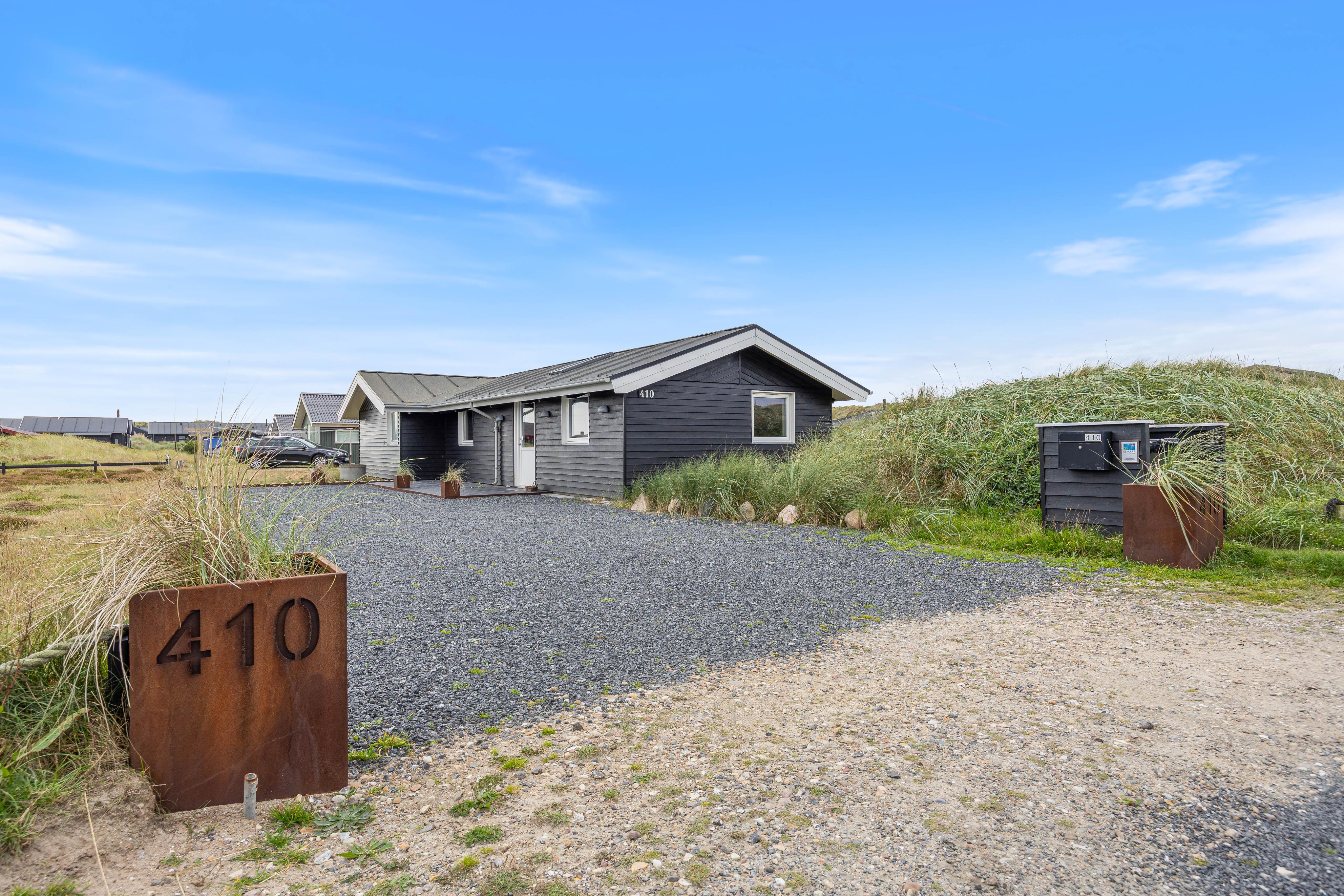 Feriehus 410 ligger meget tæt på stranden og i meget rolige omgivelser. En ferie til afslapning står intet i vejen her. Hele huset har alt inventar, der er nødvendigt for at opleve en afslappende og dejlig ferie. Flot udbyggede cykelruter muliggør skønne cykelture. Derudover er skønne spadsereture gennem klitterne og på stranden mulige. Ren afslapning.
