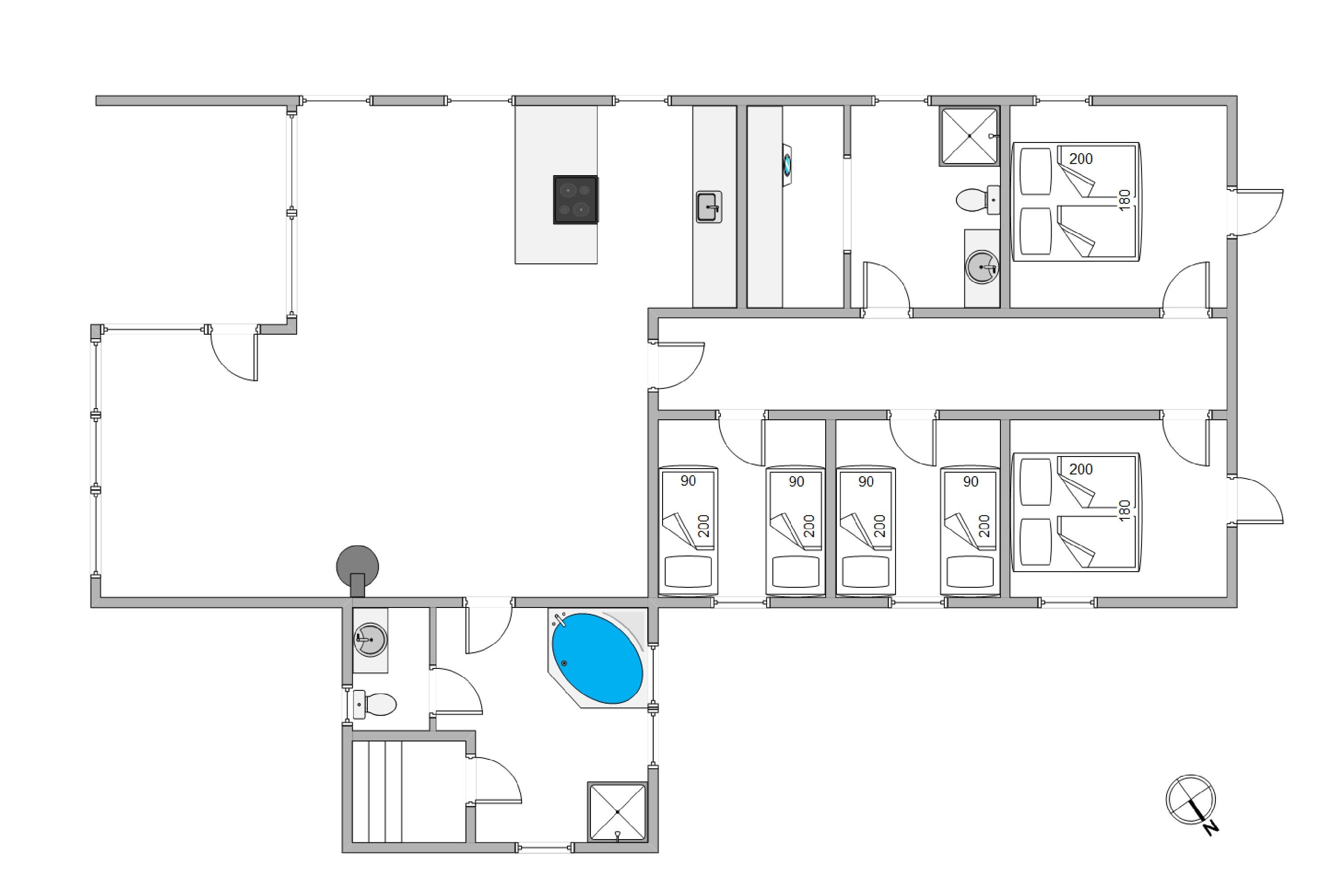 Dette store sommerhus har god plads til 8 personer. De 4 soveværelser er alle med trælaminat og 2 af soveværelserne har dobbeltsenge. De sidste 2 soveværelser har hver 2 enkeltsenge til en god nats søvn.