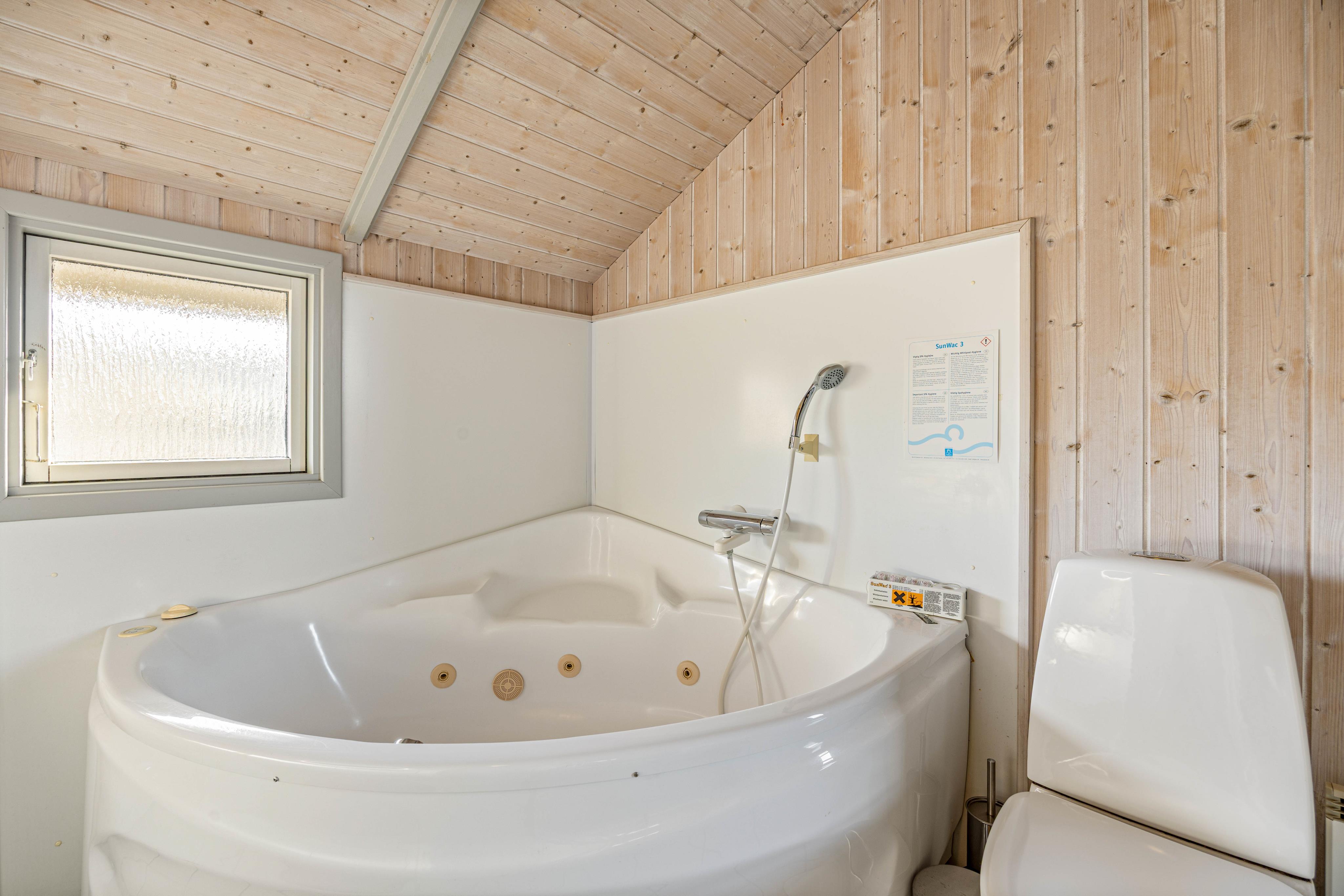 Sommerhuset råder over et lækkert badeværelse med gulvvarme – ligeledes renoveret i 2025 – hvor både sauna og spa indbyder til afslapning og energioptankning efter en lang og aktiv dag ved stranden. Derudover findes et gæstetoilet, så der undgås kø i de travle morgentimer.