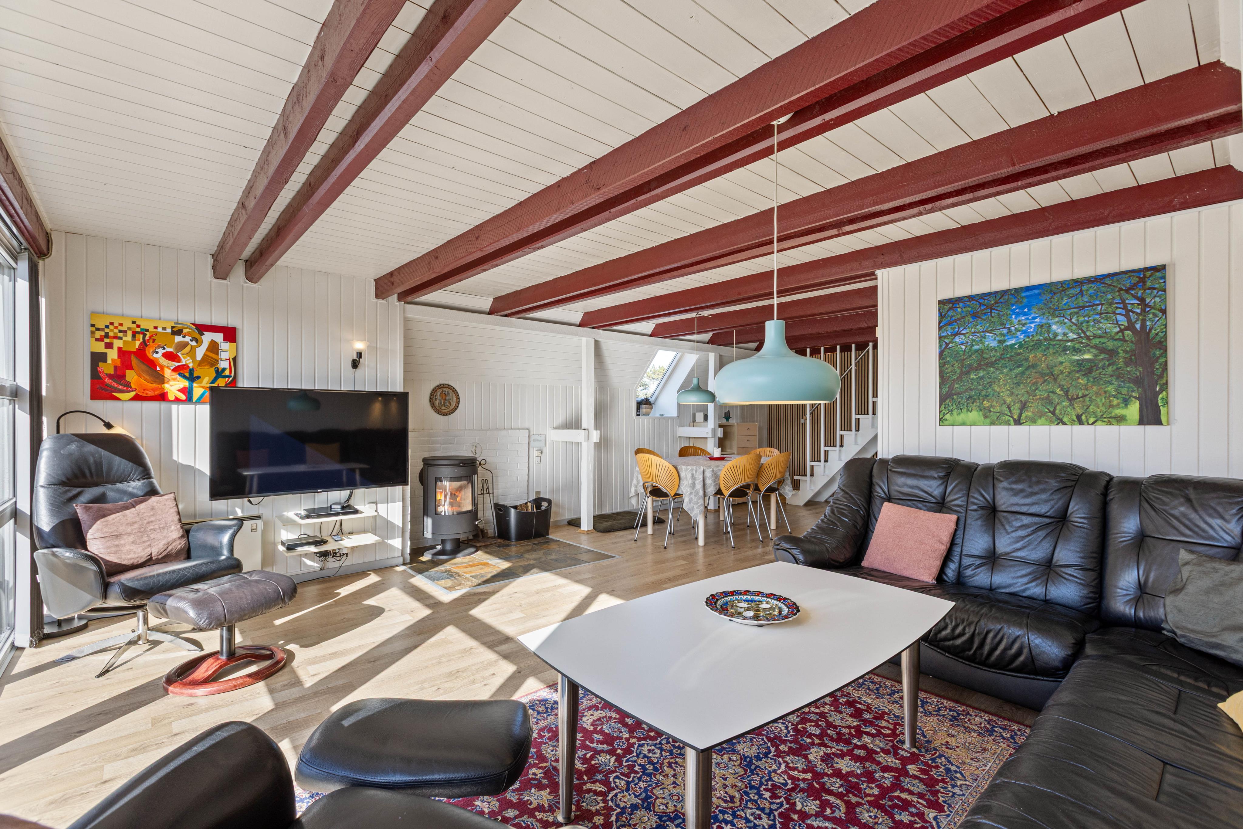 Indenfor byder sommerhuset på et lyst og indbydende miljø, der skaber de perfekte rammer for hyggelige stunder sammen. Stuen er hjertet i sommerhuset, hvor den varme brændeovn bidrager til en behagelig atmosfære, især på kølige aftener.