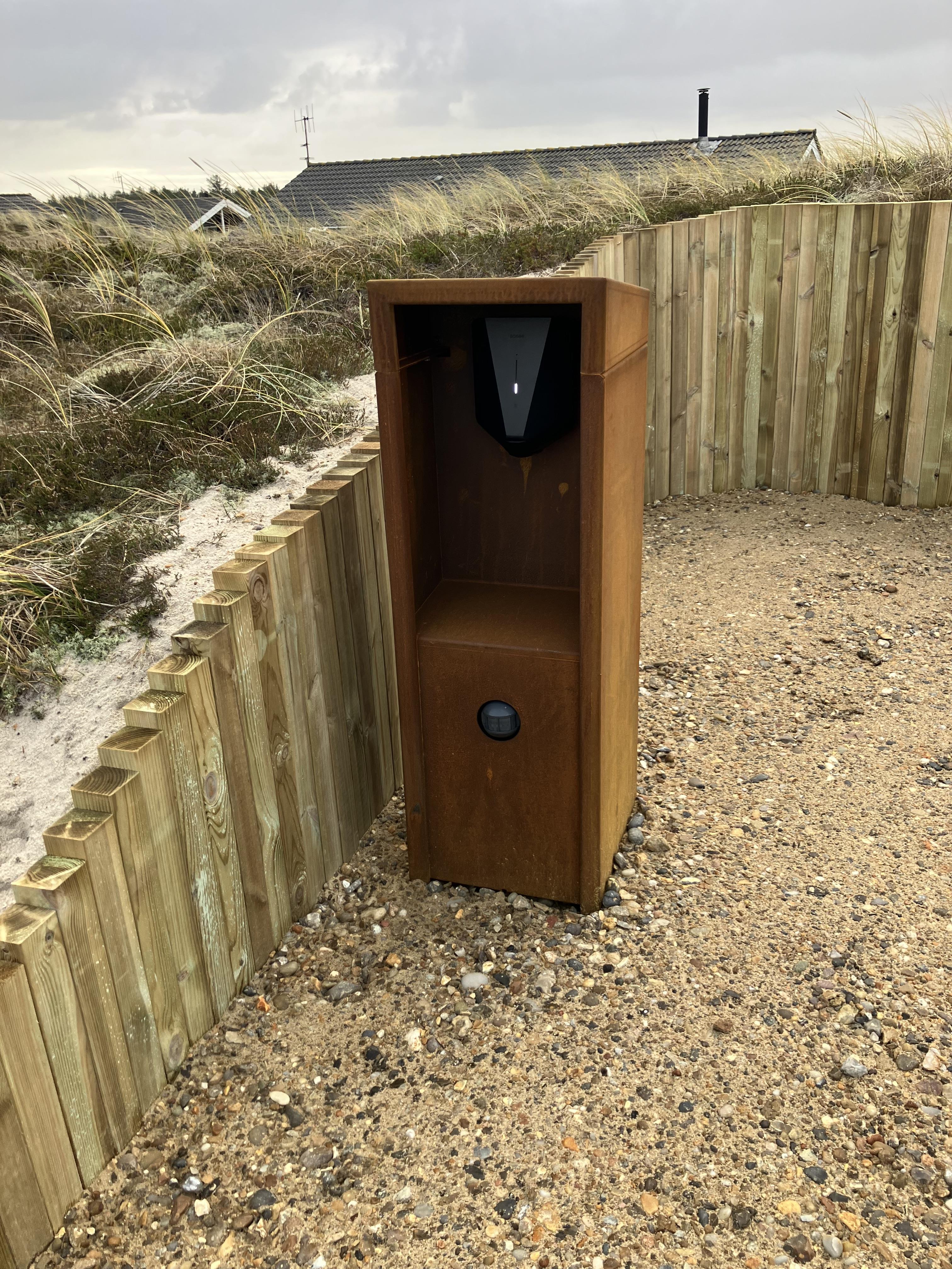 En delvist afskærmet terrasse går langs tre sider af feriehuset, hvor du finder komfortable havemøbler. Det er lige så indbydende til morgenmad om morgenen som til et godt aftenmåltid, tilberedt fra jeres egen gasgrill. Omgivet af den 1200 kvadratmeter store klitgrund/naturgrund kan du nyde panoramaudsigten over klitter og hede og lade roen falde over dig. Gå ikke glip af en vandretur til stranden for at opleve solnedgangen i Vesterhavet – det er altid en oplevelse.