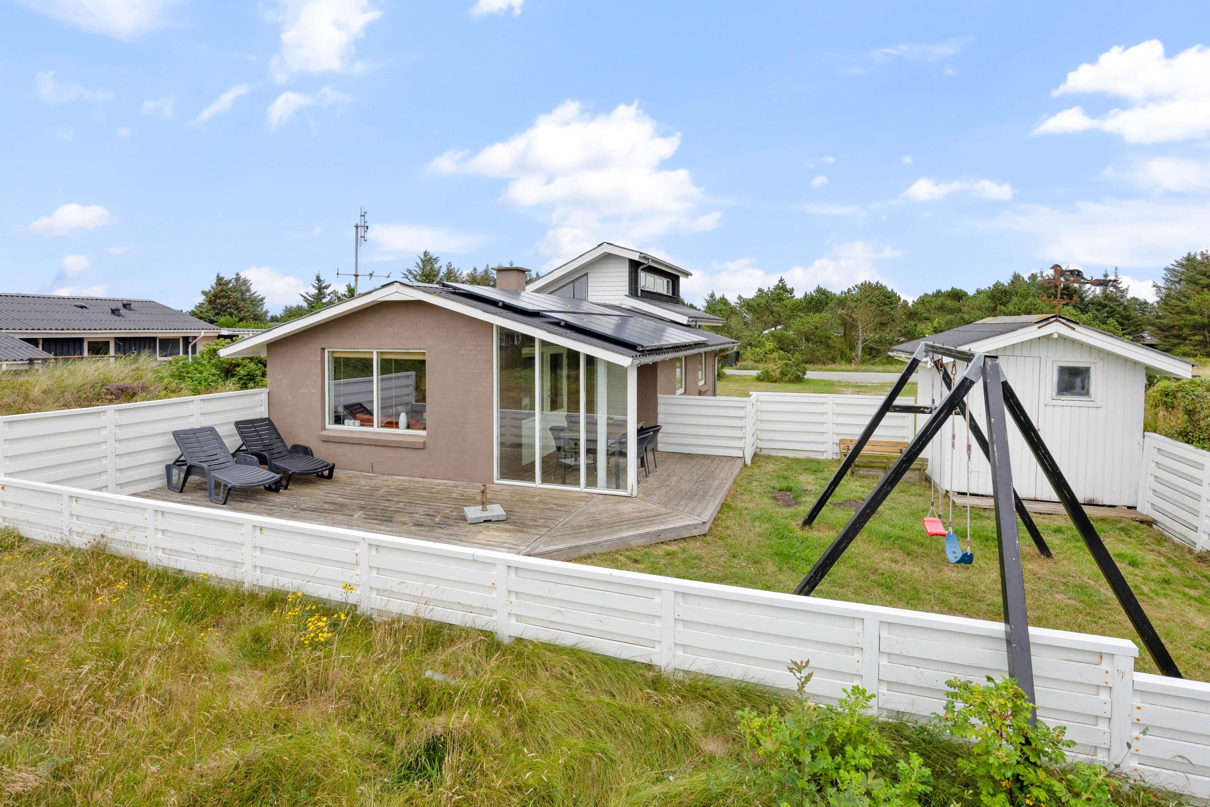 Fra stuen er der udgang til den sydvendte terrasse. Her kan I slappe af i de komfortable liggestole, trække ind i skyggen eller slappe af i havemøblerne. Man kan altid finde en krog med læ, hvis man ønsker at nyde en kop te i fred og ro. Tænd op i grillen til aften, og nyd et lækkert grillmåltid sammen, imens skyggerne bliver lange. Med under 1 kilometer til havet kan I nå at opleve solnedgangen i Vesterhavet. Det er altid en imponerende oplevelse.