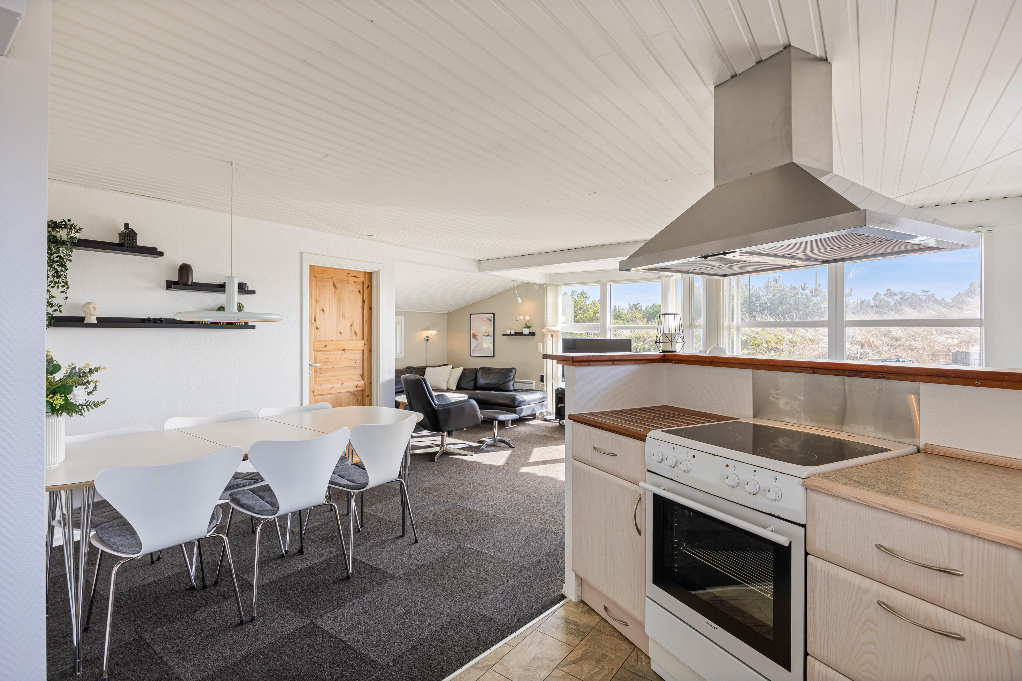 Beliggenheden giver også anledning til gode naturoplevelser væk fra feriehuset, for Vesterhavet med den gode sandstrand ligger kun en god gåtur herfra, så I på en god sommerdag nemt kan komme ned og nyde den friske luft og lege i vandkanten. Og når I kommer tilbage til feriehuset, kan I bruge den praktiske udebruser til at skylle salt og sand af med. Men på køligere dage tiltrækker Vesterhavet også besøgende, da det er forfriskende med en god gåtur, hvor I sikkert også vil blive fascineret af de brusende bølger.