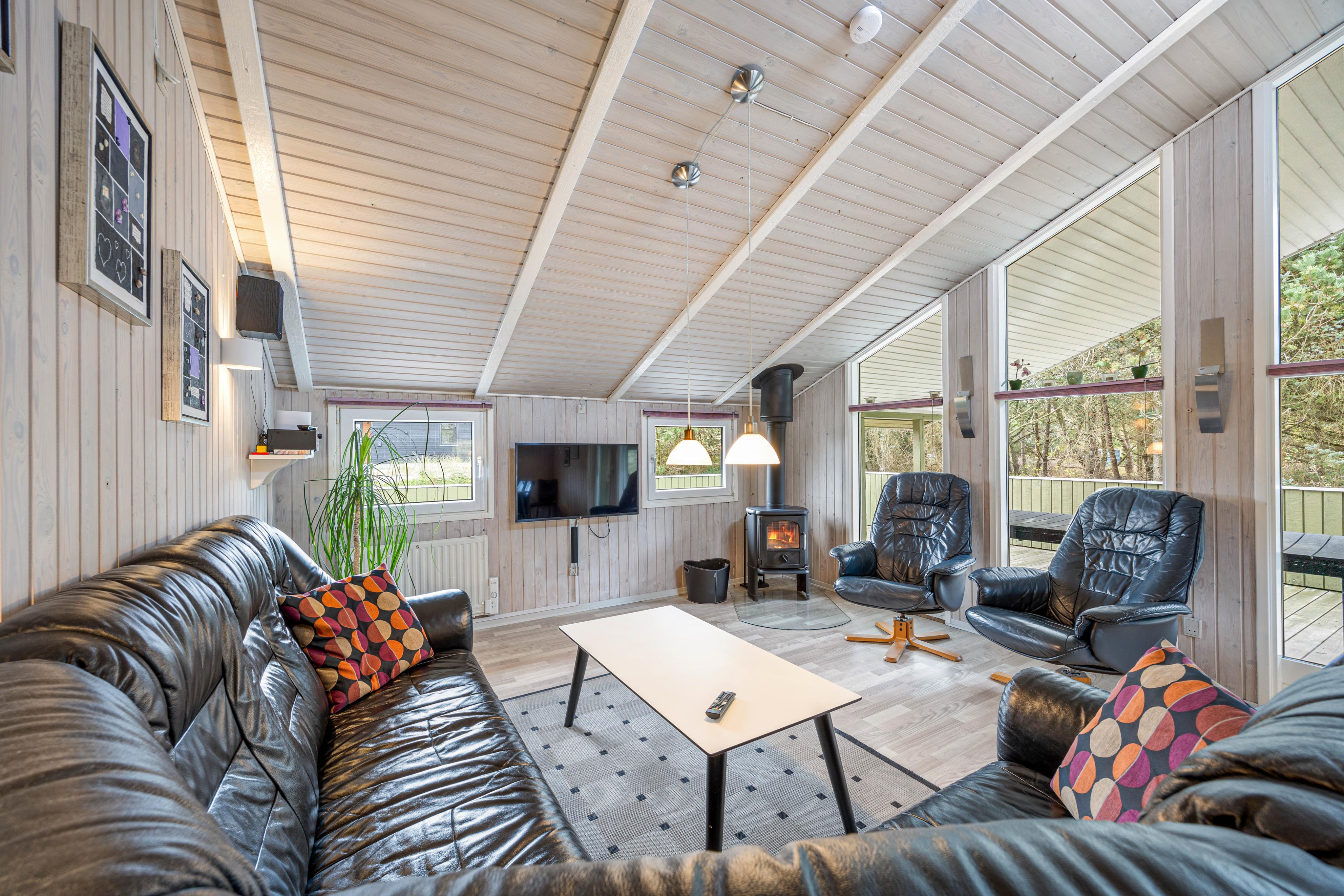 Velkommen i et dejligt feriehus, hvor man har gjort meget ud af den personlige og hyggelige indretning. Her kan der nemt slappes af hele året rundt, om familien samles ved spisebordet eller i den store sofa til familiespil, eller du sætter dig til rette i en af de bekvemme lænestole og nyder en hyggelig regnvejrseftermiddag foran brændeovnen med din yndlingsbog.