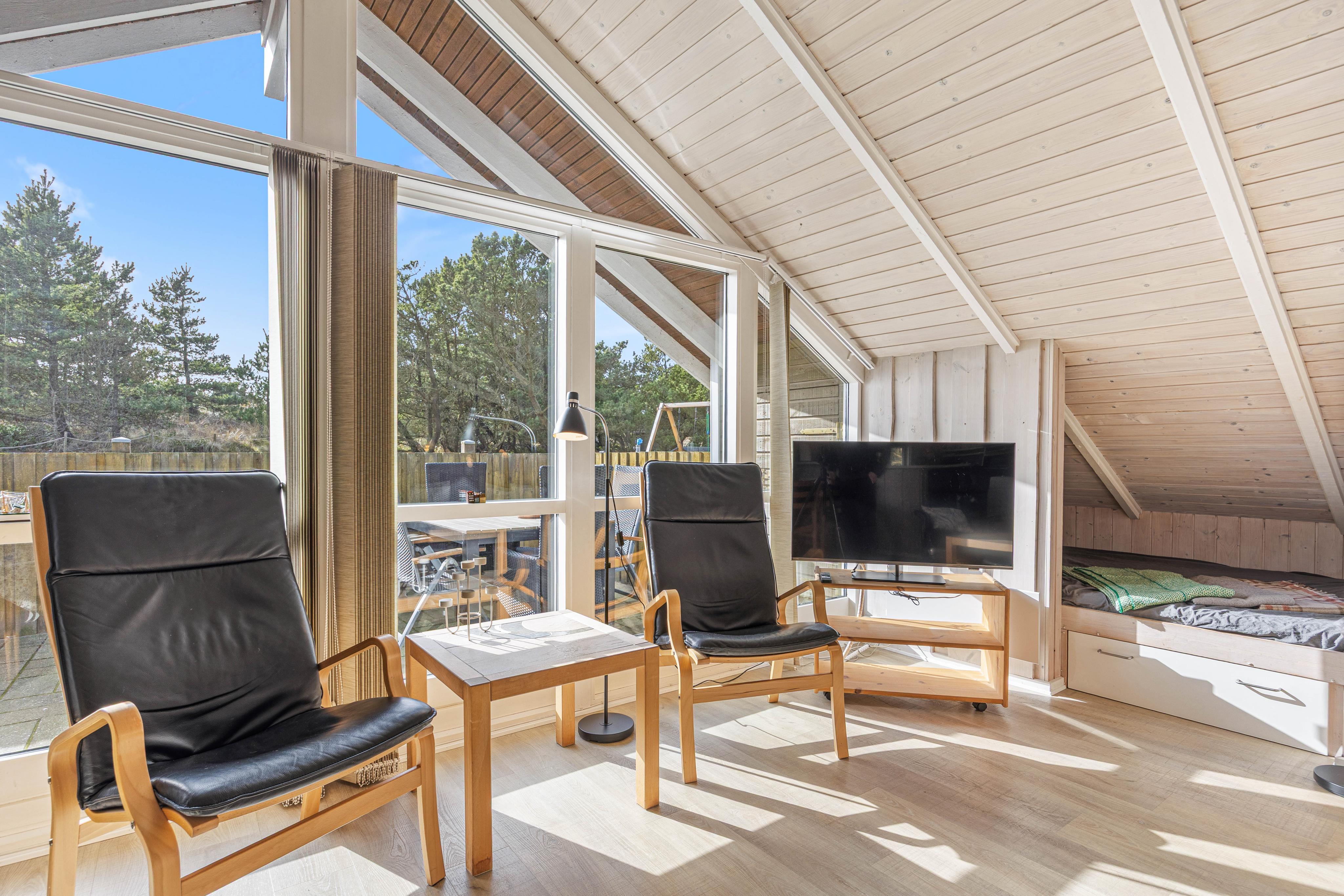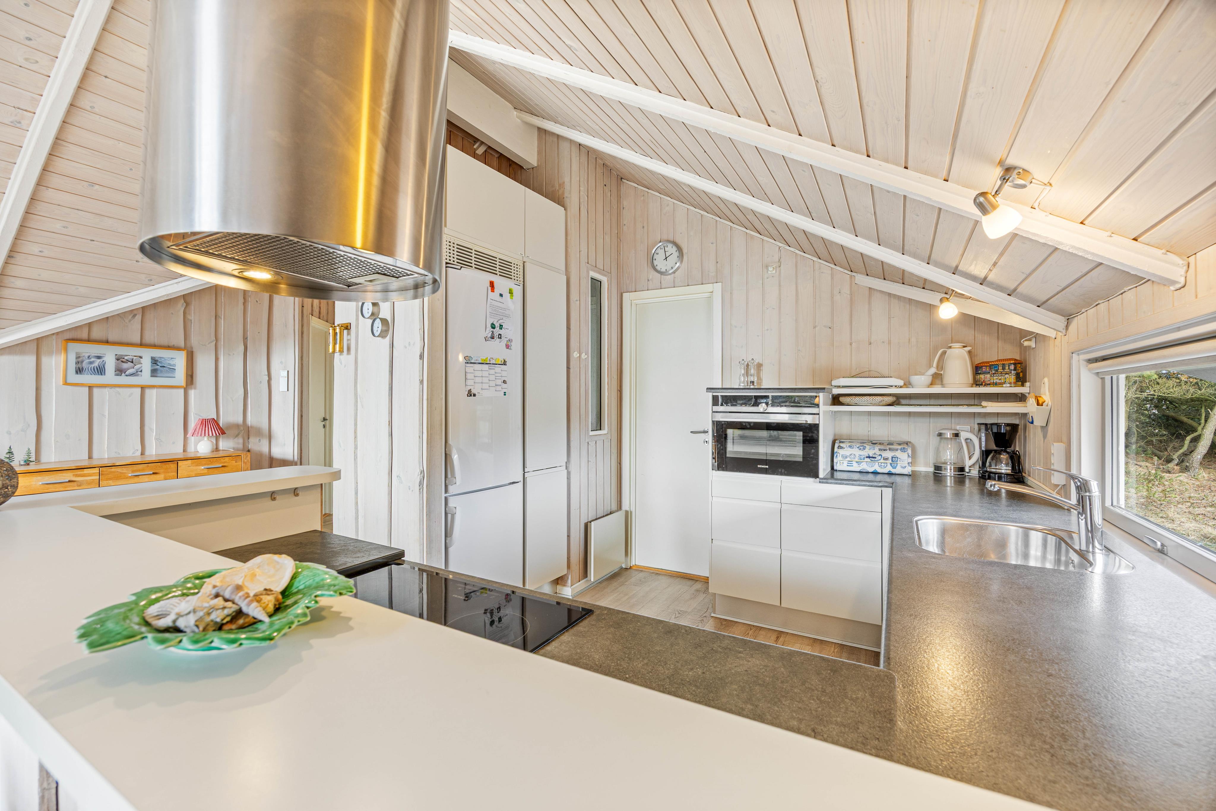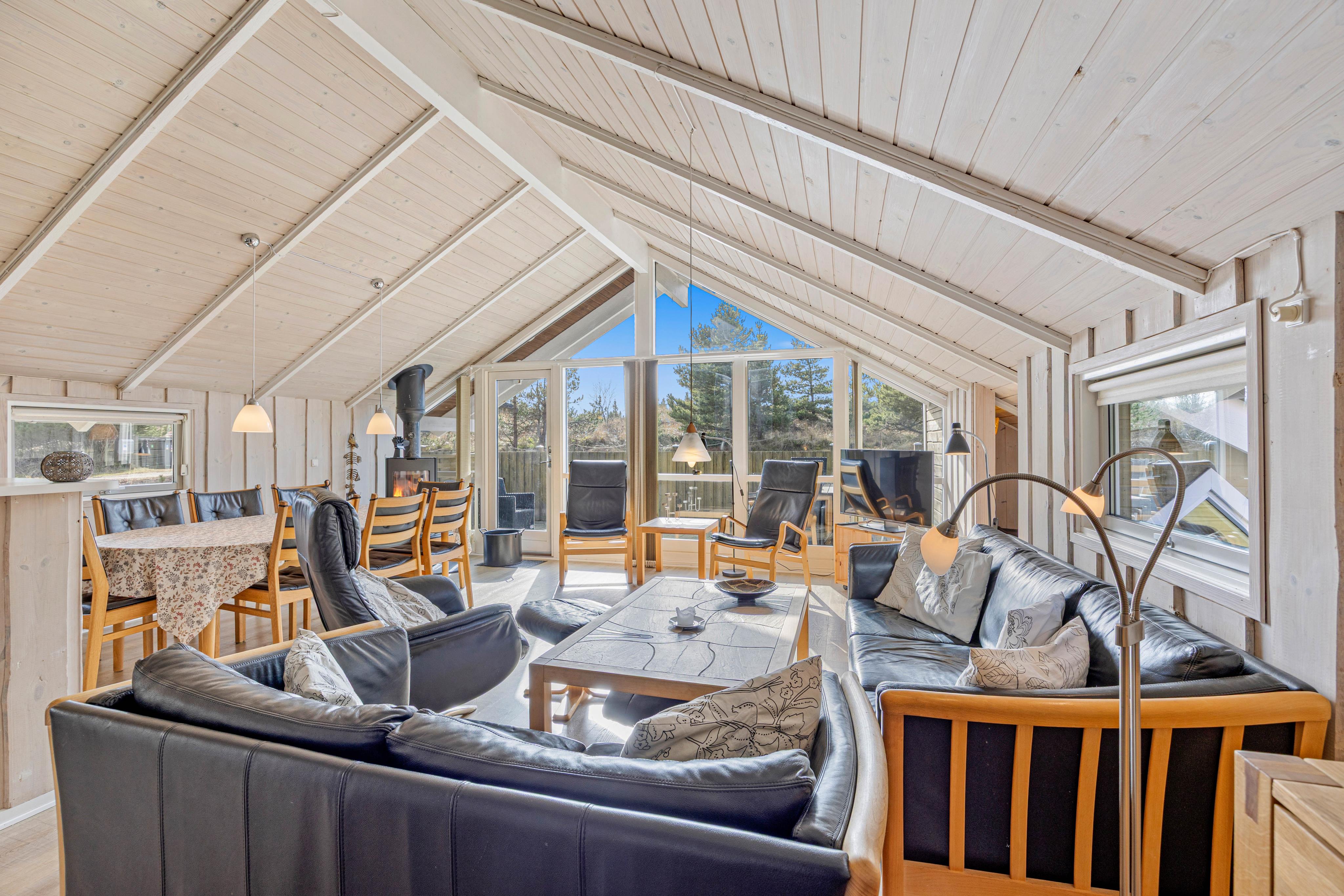 Tænd op i brændeovnen, og lad de knitrende flammer fylde rummet med hygge, mens aftensmaden bliver tilberedt. Samtidig kan I holde øje med de mindste feriegæster, som ser fjernsyn i sofaen, spiller rundt om spisebordet eller slapper af i den hyggelige alkove.