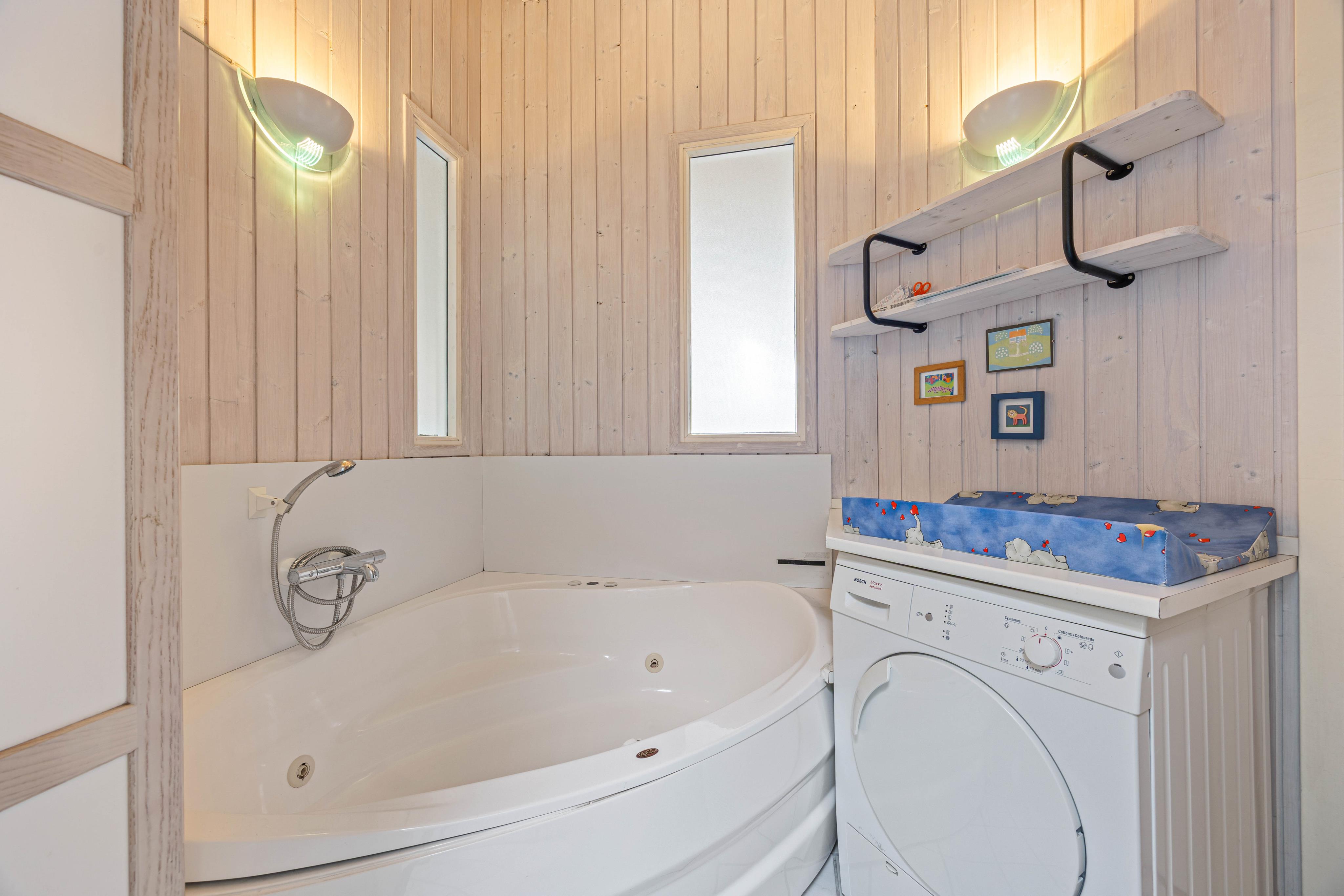 Dejligt feriehus med god "traditionel" indretning (brætspil, strandlegetøj, osv.). Vi følte os meget godt tilpas med 2 familier og 3 børn. Fine siddepladser overalt. Især for børn er alt der, selv en puslemulighed. Boblebadet er lidt kedeligt, da det kun har dyser og ingen bobler.