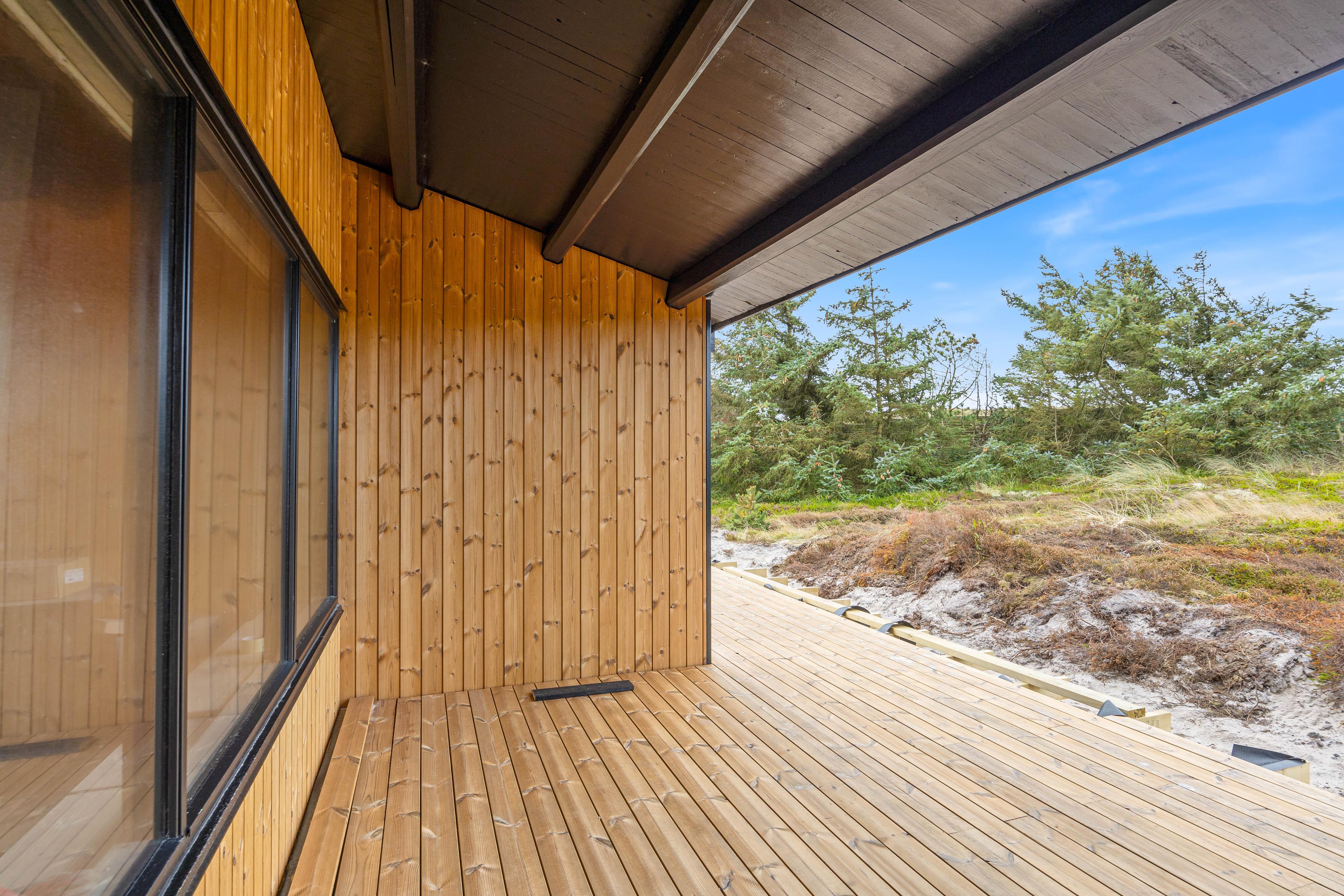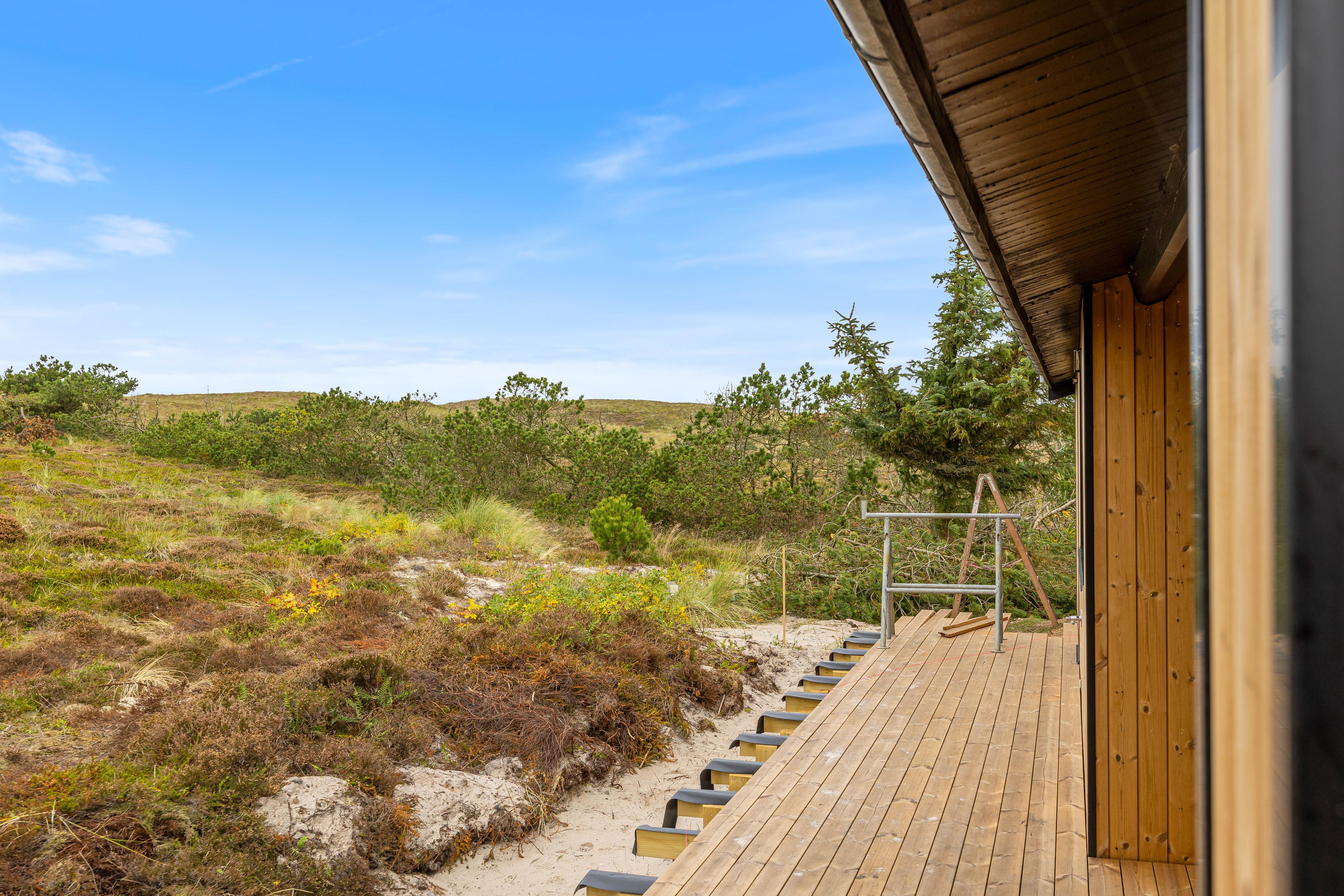 Beliggende på en stor klitgrund på godt 3.600 kvadratmeter, er der masser af plads til at børnene kan gå på opdagelse, mens de voksne kan nyde de naturskønne omgivelser. Med kun 2000 meter til indkøbsmuligheder er det nemt at få fat i de nødvendige forsyninger til jeres ophold. På den delvist overdækkede og delvist afskærmede terrasse kan I nyde panoramaudsigten, slappe af i havemøblerne, solbade eller arrangere en grillaften imens skyggerne bliver lange. Der er kun 400 meter til stranden, så I kan både nå en dukkert og opleve solnedgangen i Vesterhavet inden turen går tilbage til sommerhuset.