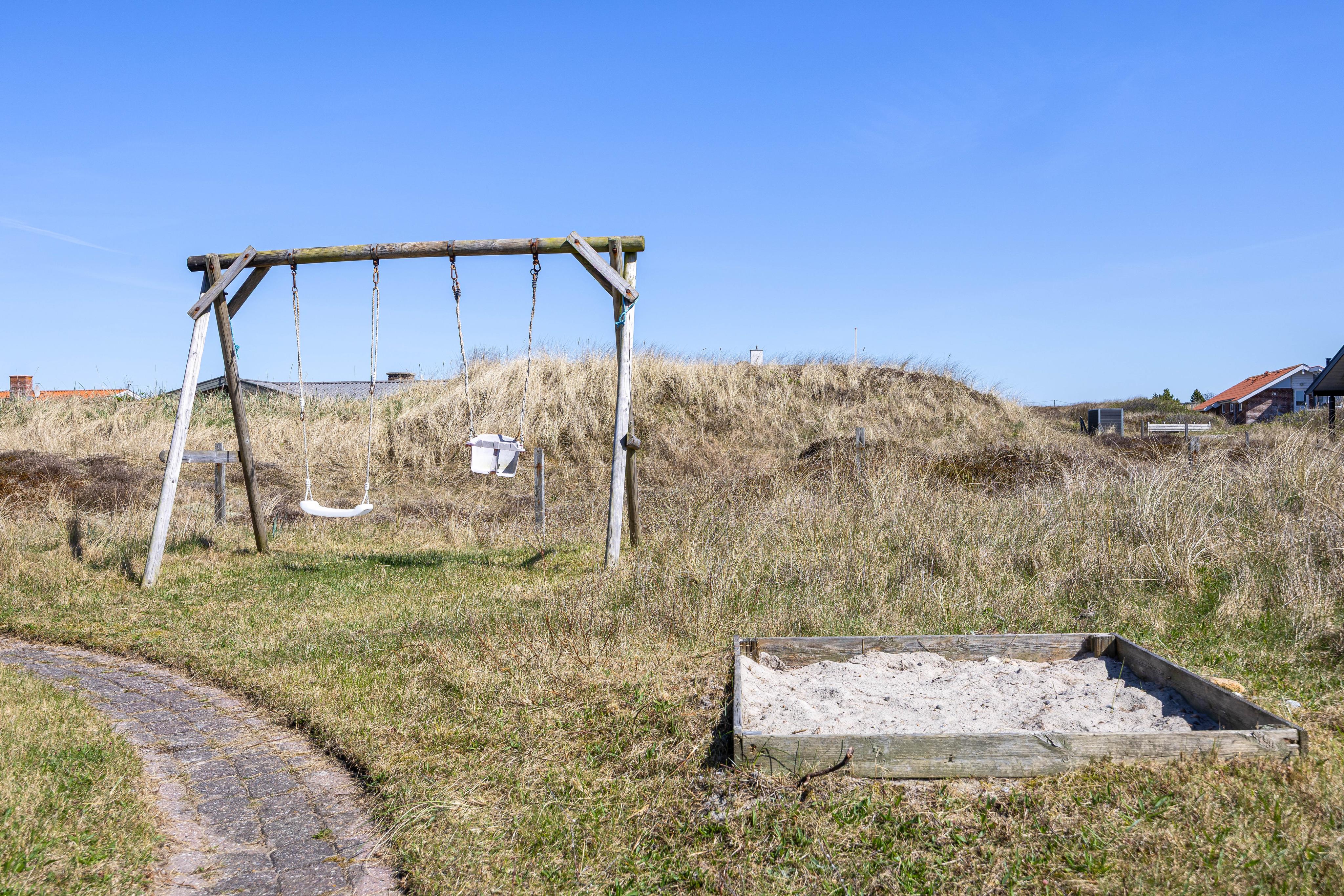 Udenfor fuldendes oplevelsen. Naturgrunden giver god plads til leg og afslapning. Til de yngste er der både gynge og sandkasse, mens den overdækkede terrasse giver mulighed for at nyde udelivet uanset vejret. Her kan I samles til måltider eller afslutte dagen i roligt tempo, mens hundene opholder sig tæt på jer.