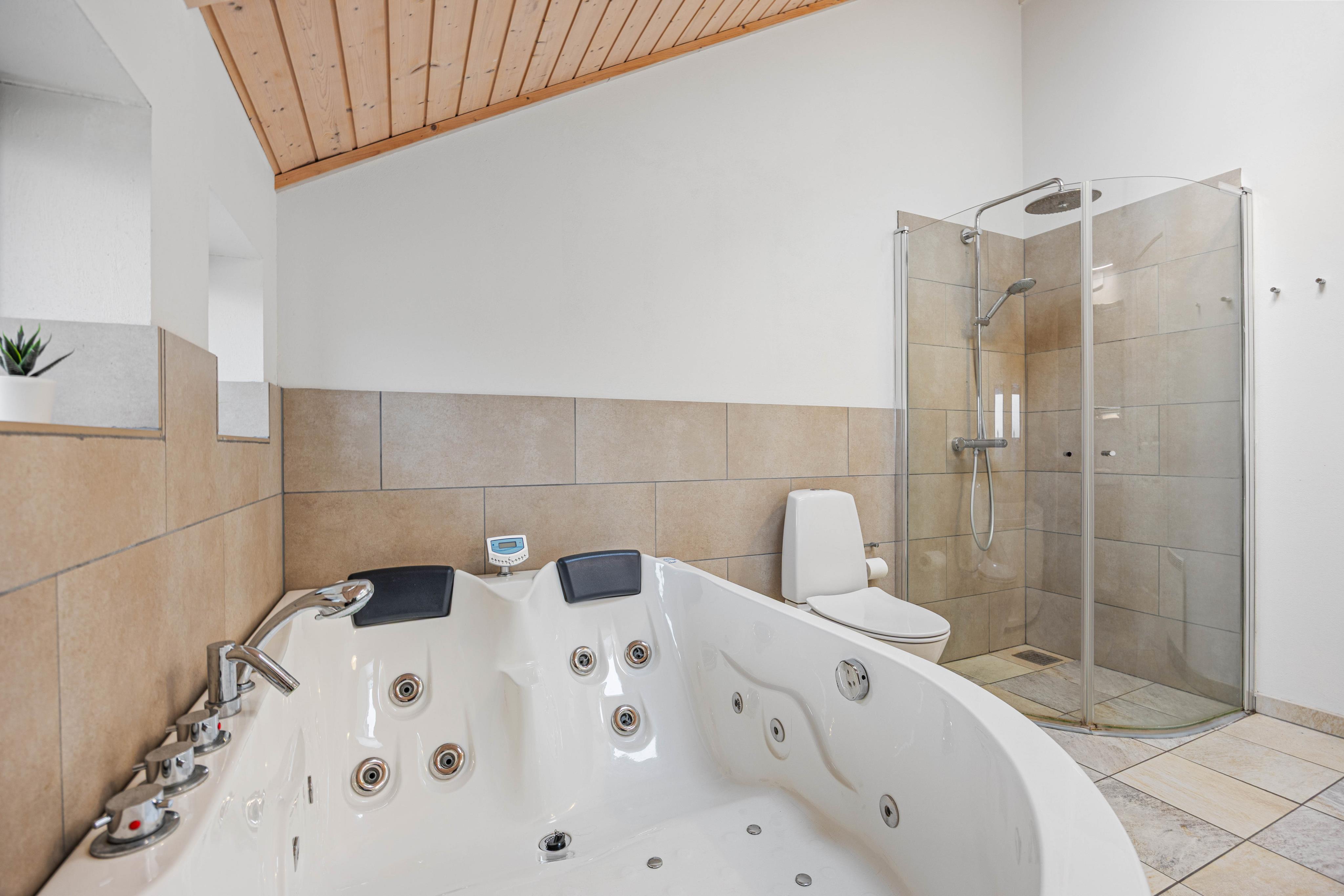 Feriehuset er bygget i 2012 og har 120m² I kan boltre jer på. Det er udstyret med en energibesparende luft til luft varmepumpe og har 2 badeværelser med gulvvarme. Det store badeværelse er udstyret med et spabad til 2 personer og en dejlig sauna.