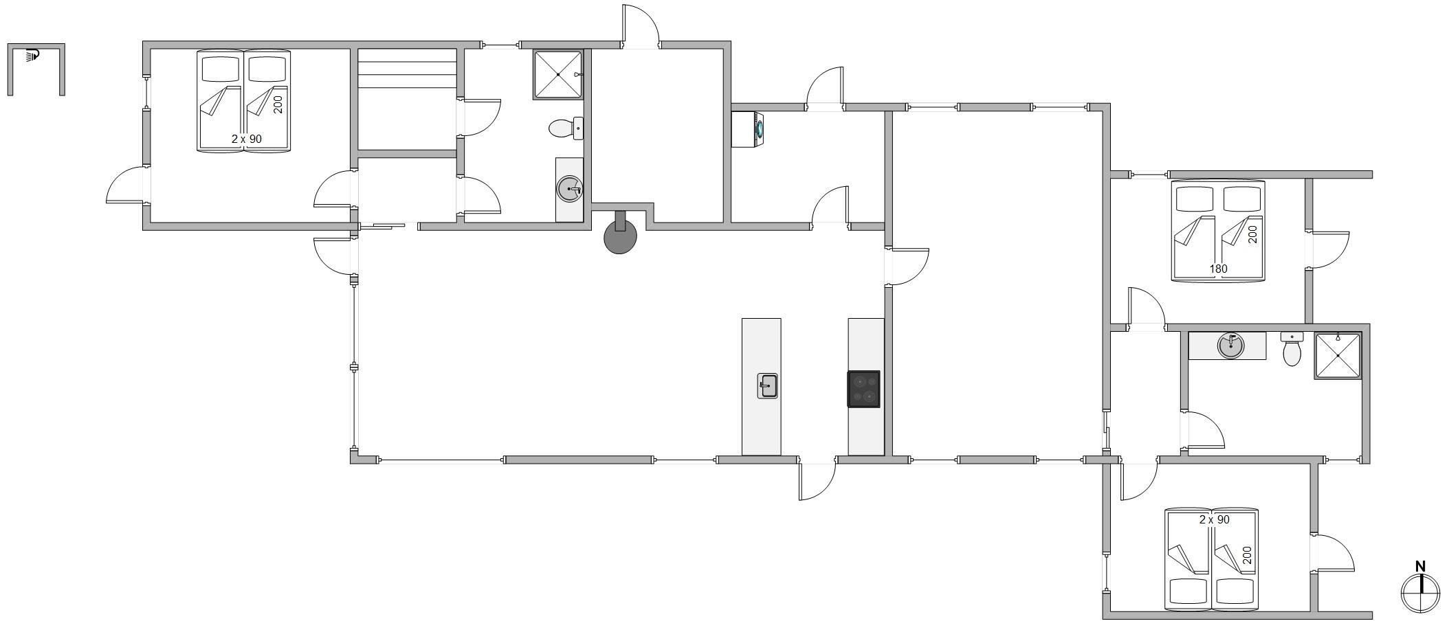 De to flotte badeværelser med rummelige brusenicher har gulvvarme - og i forbindelse med det store badeværelse er en lækker sauna, hvor man efter en frisk travetur ved Vesterhavet kan komme hjem og blive varmet godt igennem – det er ægte ferie. De 3 rummelige soveværelser har dobbeltsenge, og derudover er der også en hems i feriehuset. Der er vaskemaskine, tørretumbler og en energibesparende varmepumpe til rådighed for jer.
