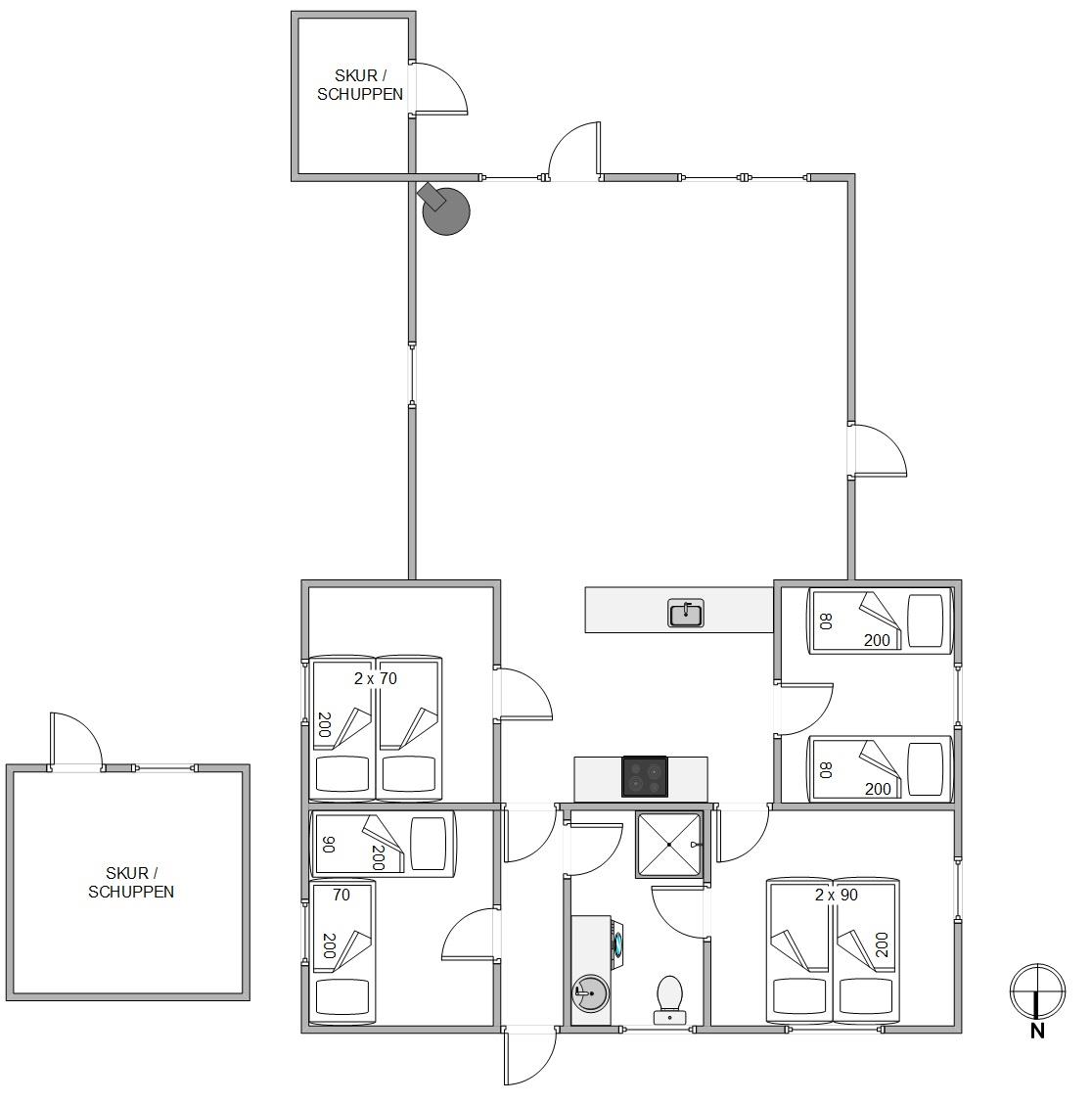 Bemærk at sommerhuset ikke egner sig til gangbesværede, da der er et lille trin ud til badeværelset.
