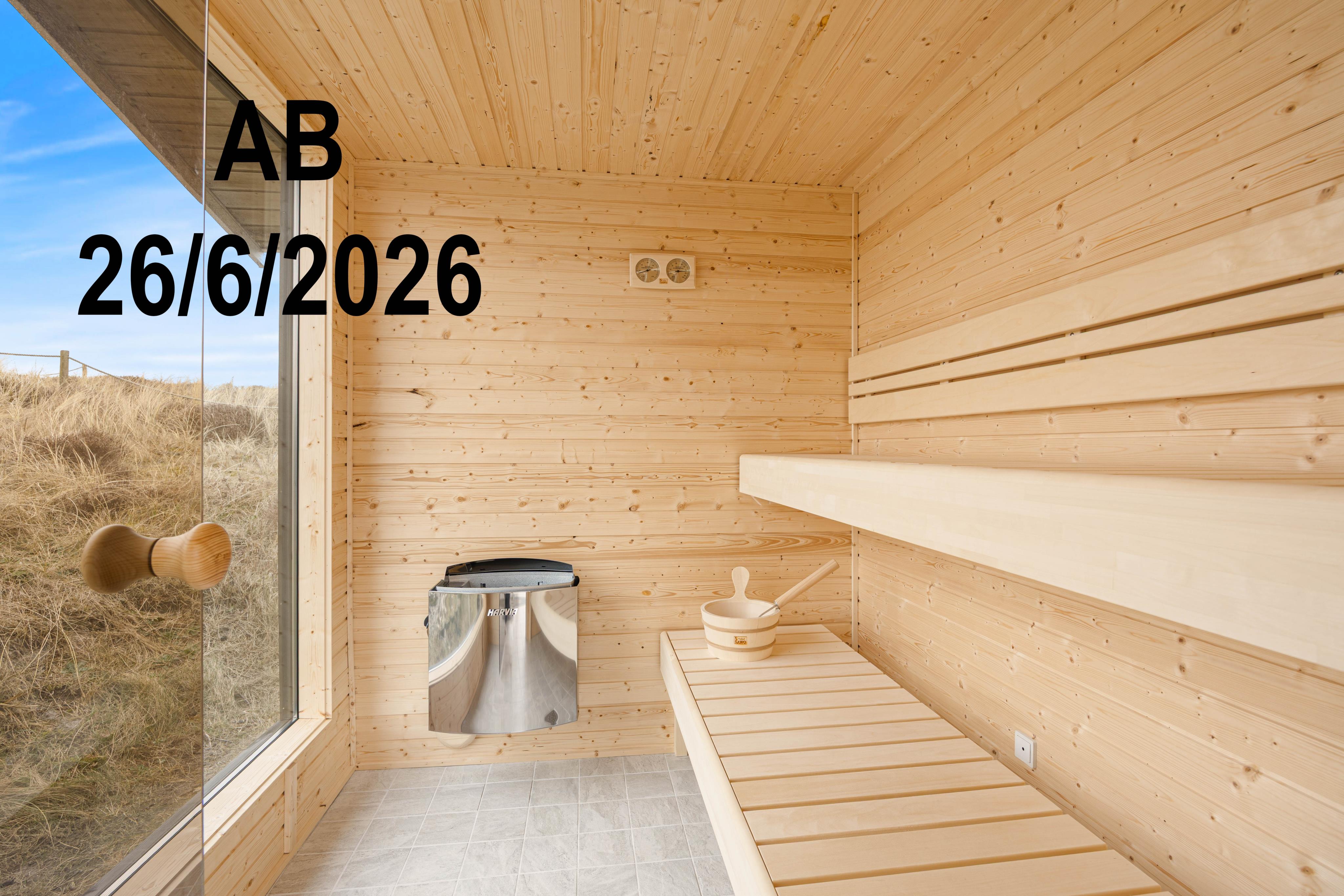 Fra den 26.06.26 får huset en dejlig udesauna samt en forfriskende udebruser (åben fra april til november), perfekt til at nyde varme sommerdage og kølige aftener under åben himmel.