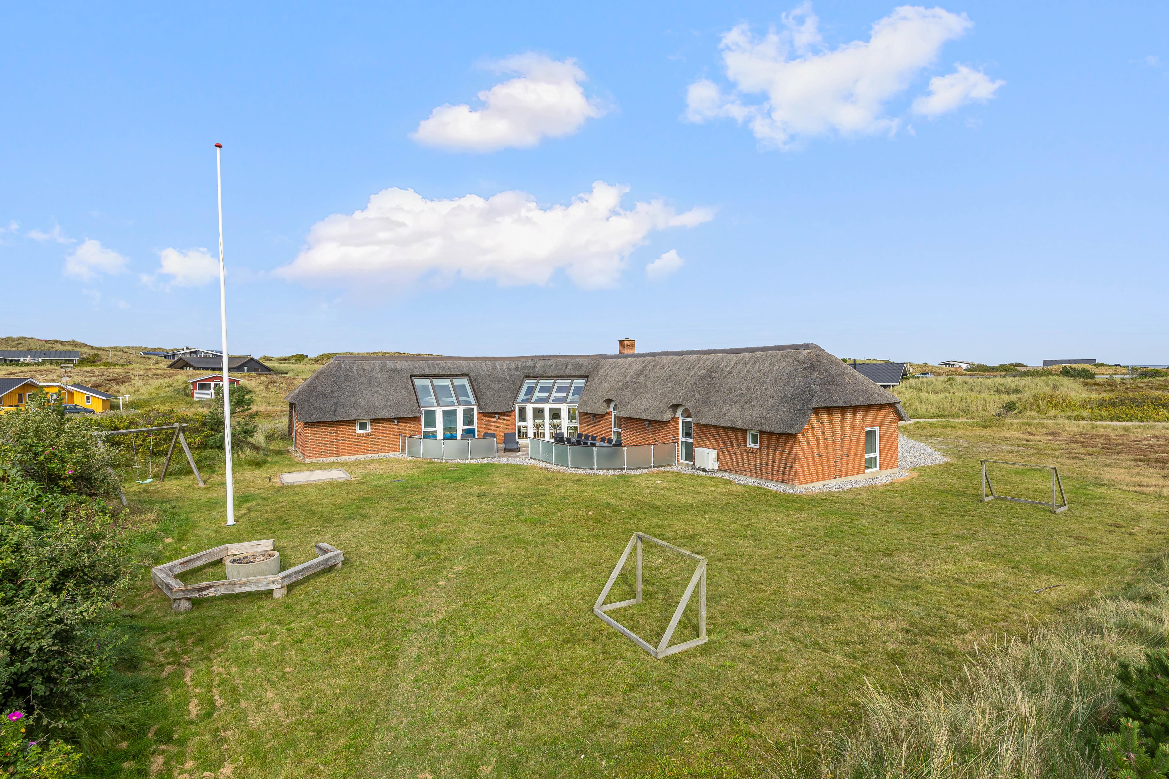 På Skodbjergevej 26 - bare 500 meter fra Vesterhavet - ligger poolhuset til 12 personer. Forkæl jer selv i spa og sauna, mens børnene boltrer sig i husets pool eller hygger sig ude med gynger, sandkasse eller fodboldspil på naturgrundens plæneareal.