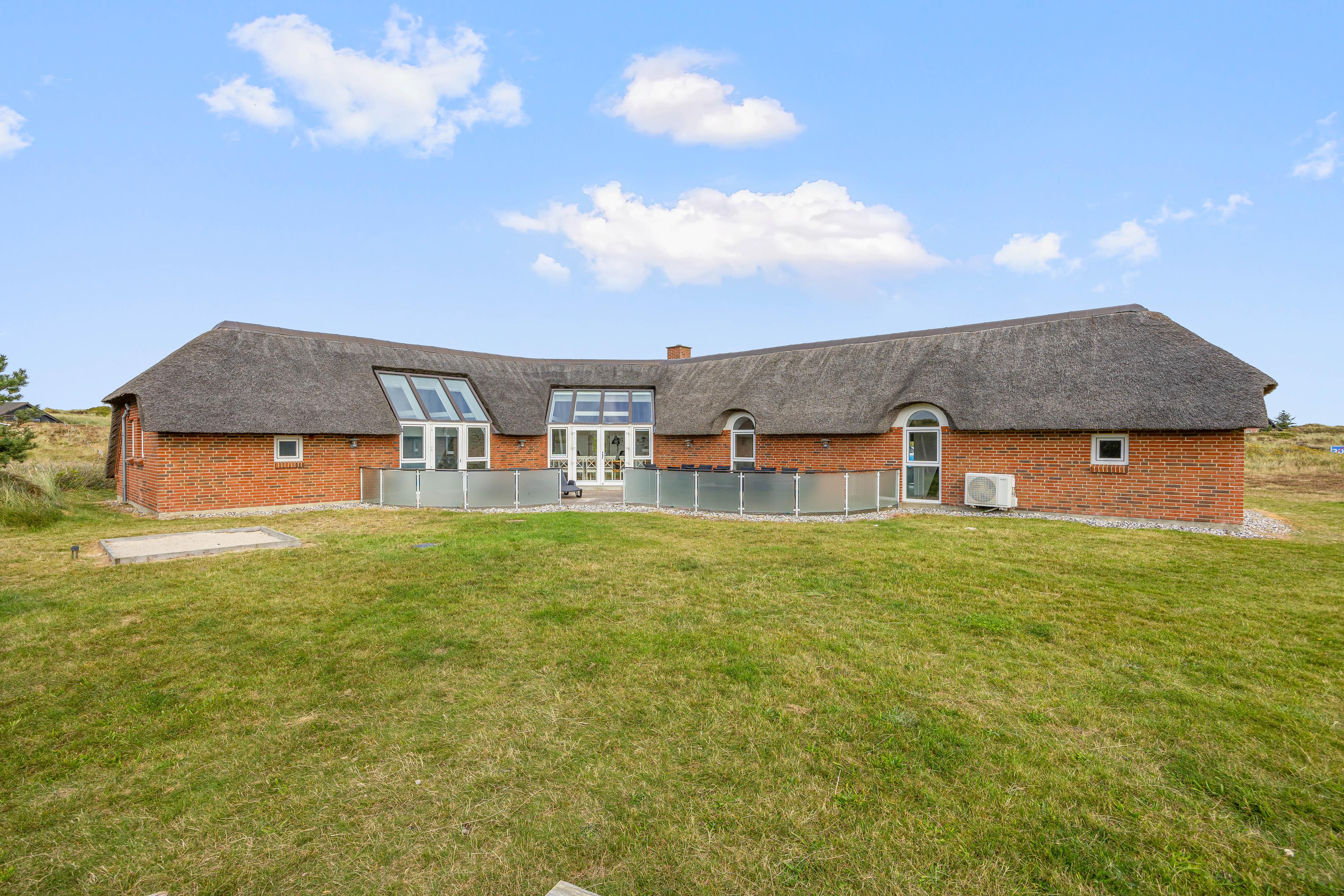 Stort sommerhus med indendørs pool, boblebad og sauna tæt på stranden og klitlandskabet.