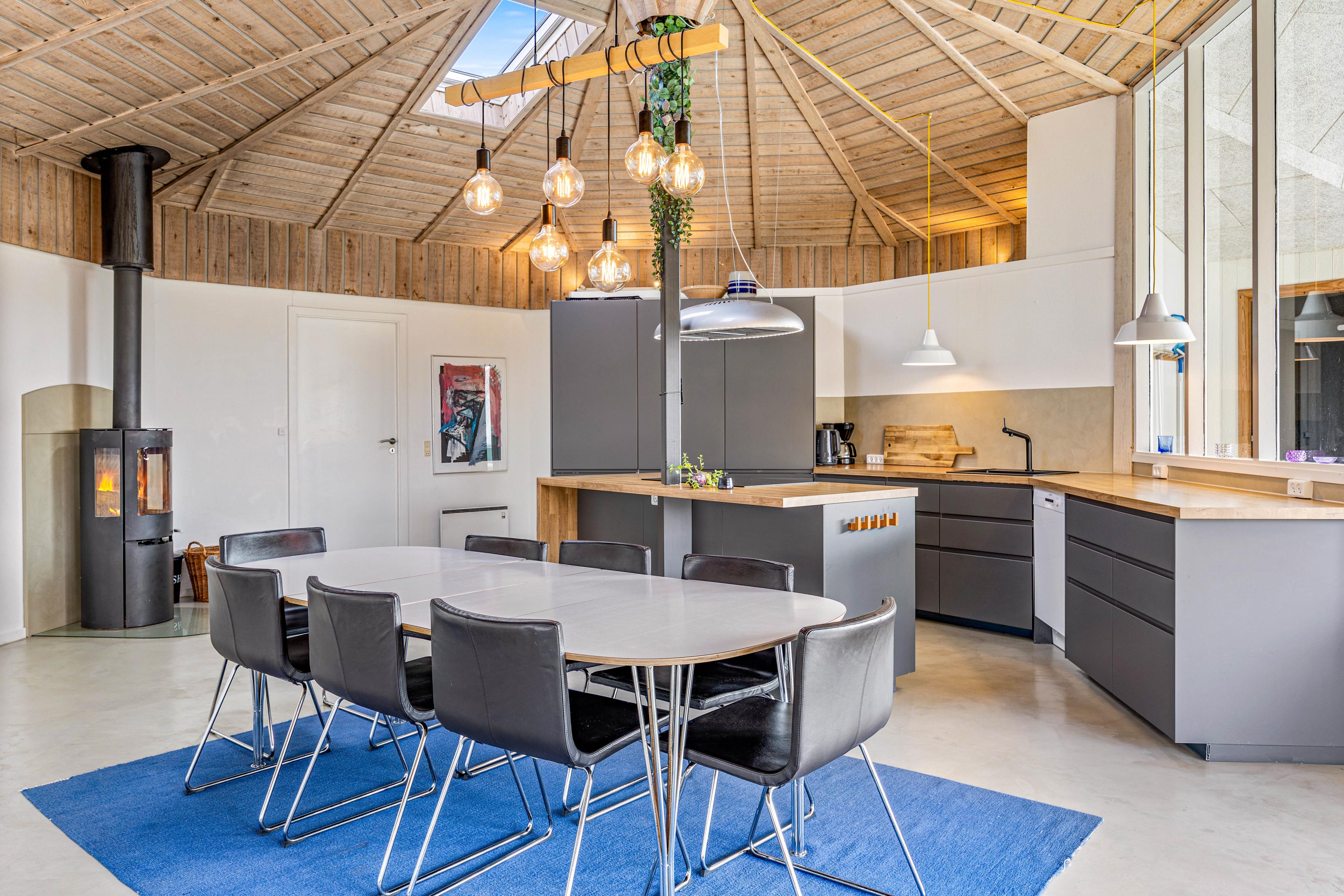 Sommerhuset er renoveret i 2021 og fremstår lyst og indbydende. Køkkenet ligger i åben forbindelse med stuen, hvor hele familien kan samles. Alrummet er hjertet af sommerhuset, og herfra har I også et godt overblik over pool-området. Brændeovnen sørger for dejlig varme og ekstra hygge, imens I tager et spil kort til lyden af det knitrende brænde, inden sengen kalder. Desuden er der en varmepumpe, som også kan sørge for en behagelig temperatur.