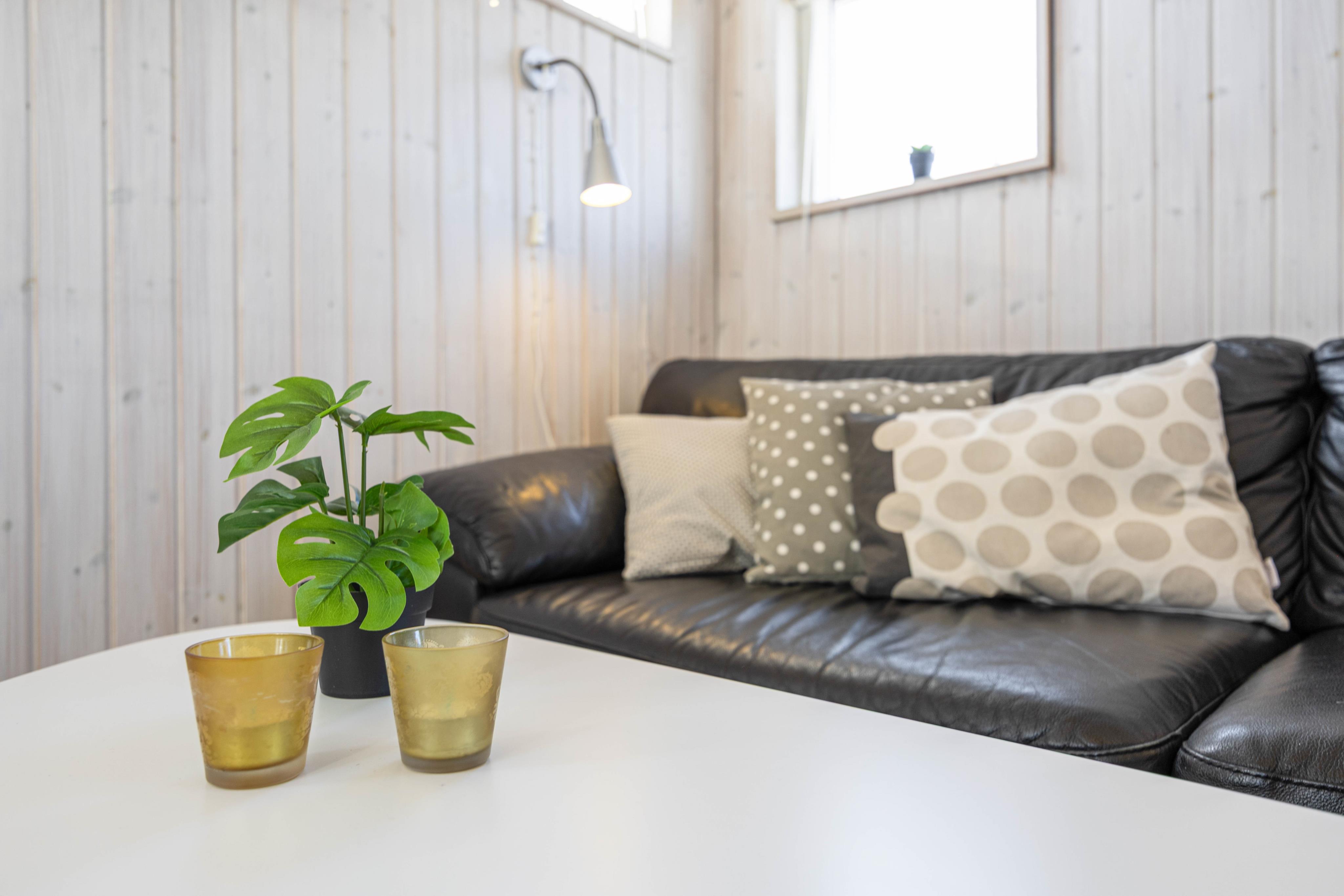 I sommerhusets køkkenalrum finder i den afslappende stue med de smukke brune lædermøbler. Her har I mulighed for at nyde den skønne brændeovn, tage en lille lur eller se en god film. I den anden ende af køkkenalrummet finder i det moderne køkken. Her kan I se ind til stuen, så i stadig kan hyggesnakke med jeres familiemedlemmer.