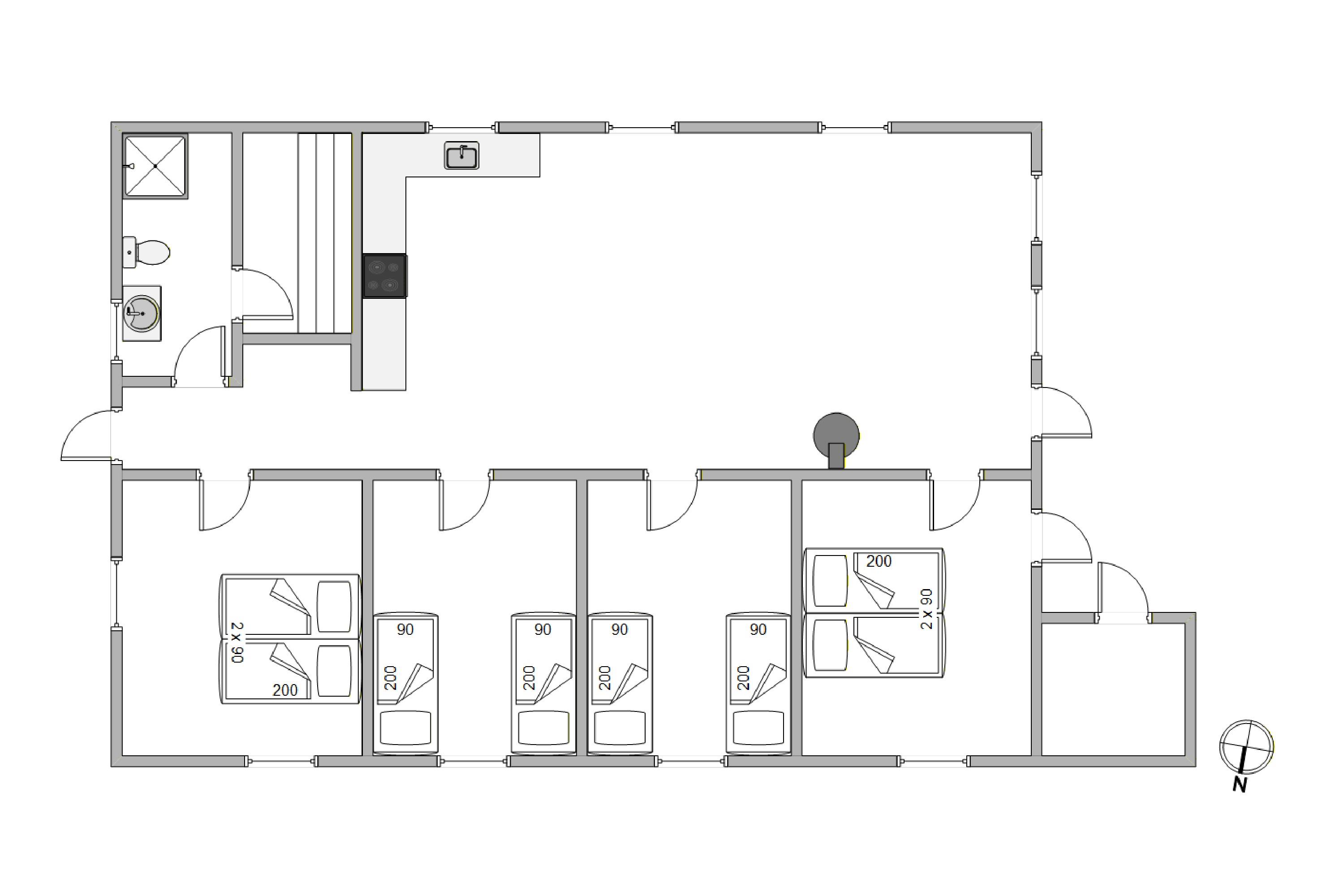 Sommerhuset har 4 komfortable værelser I kan nyde når det er tid til at lade batterierne op – 2 værelser med dobbeltsenge og 2 værelser med enkeltsenge, som sikrer jer en god nats søvn.