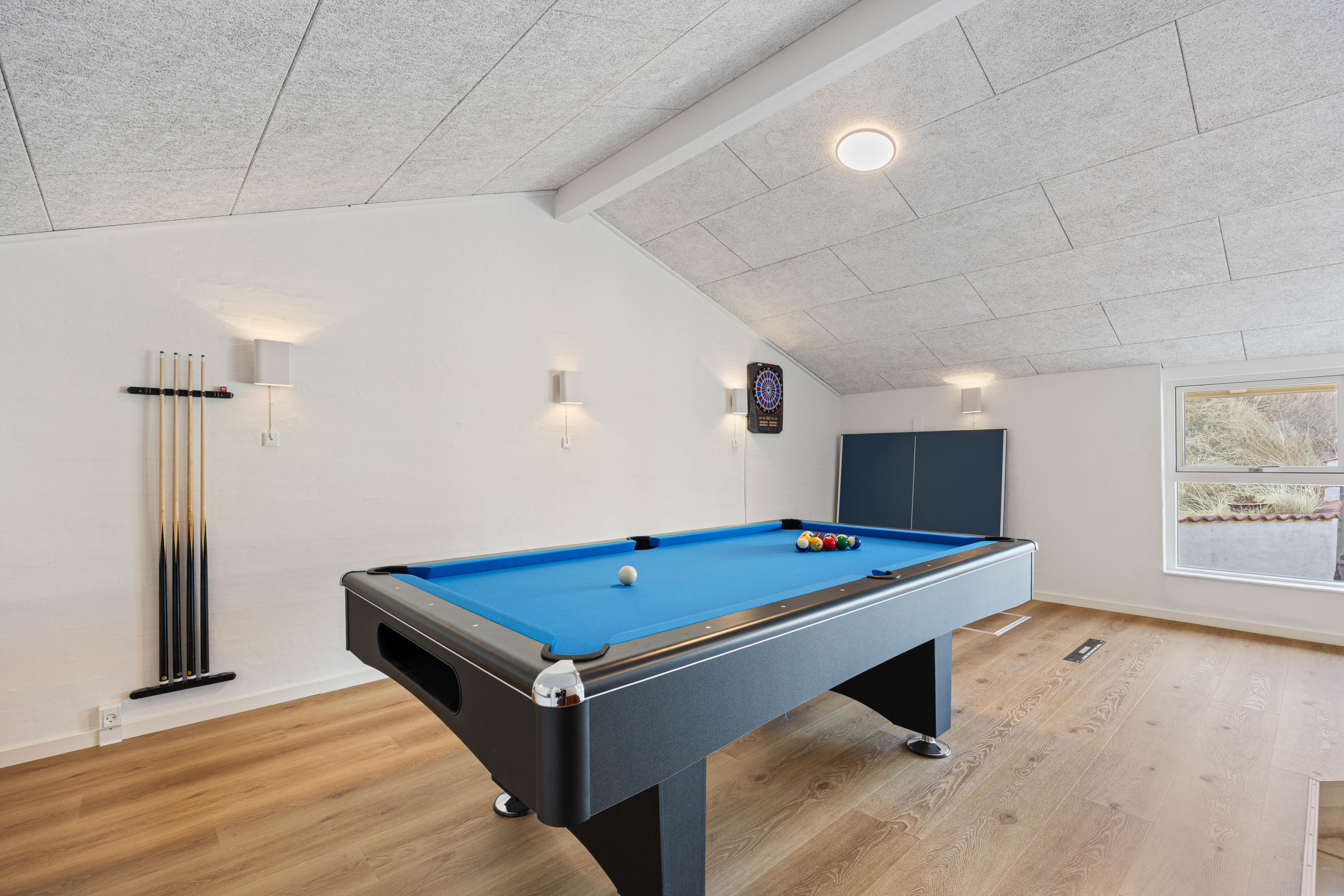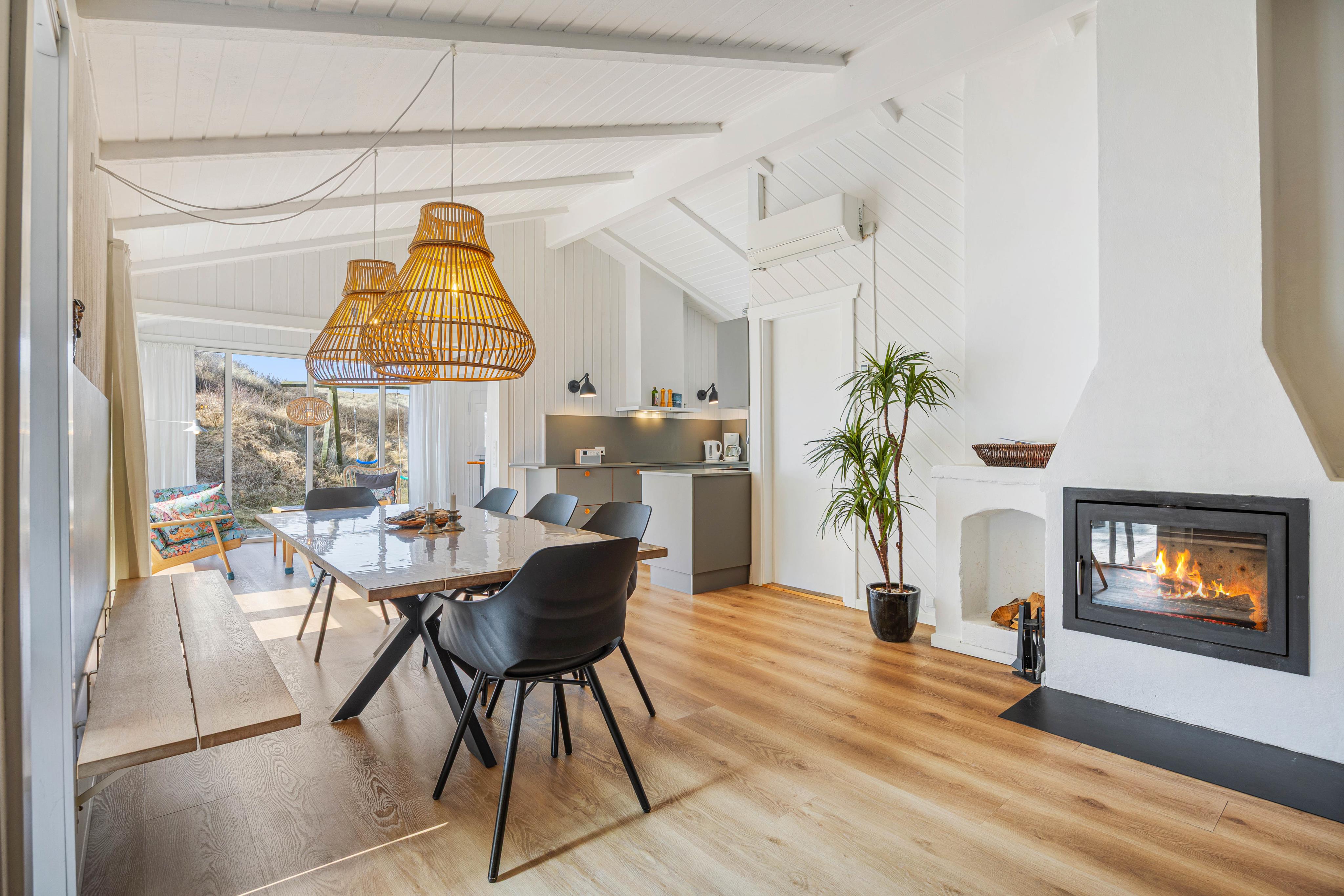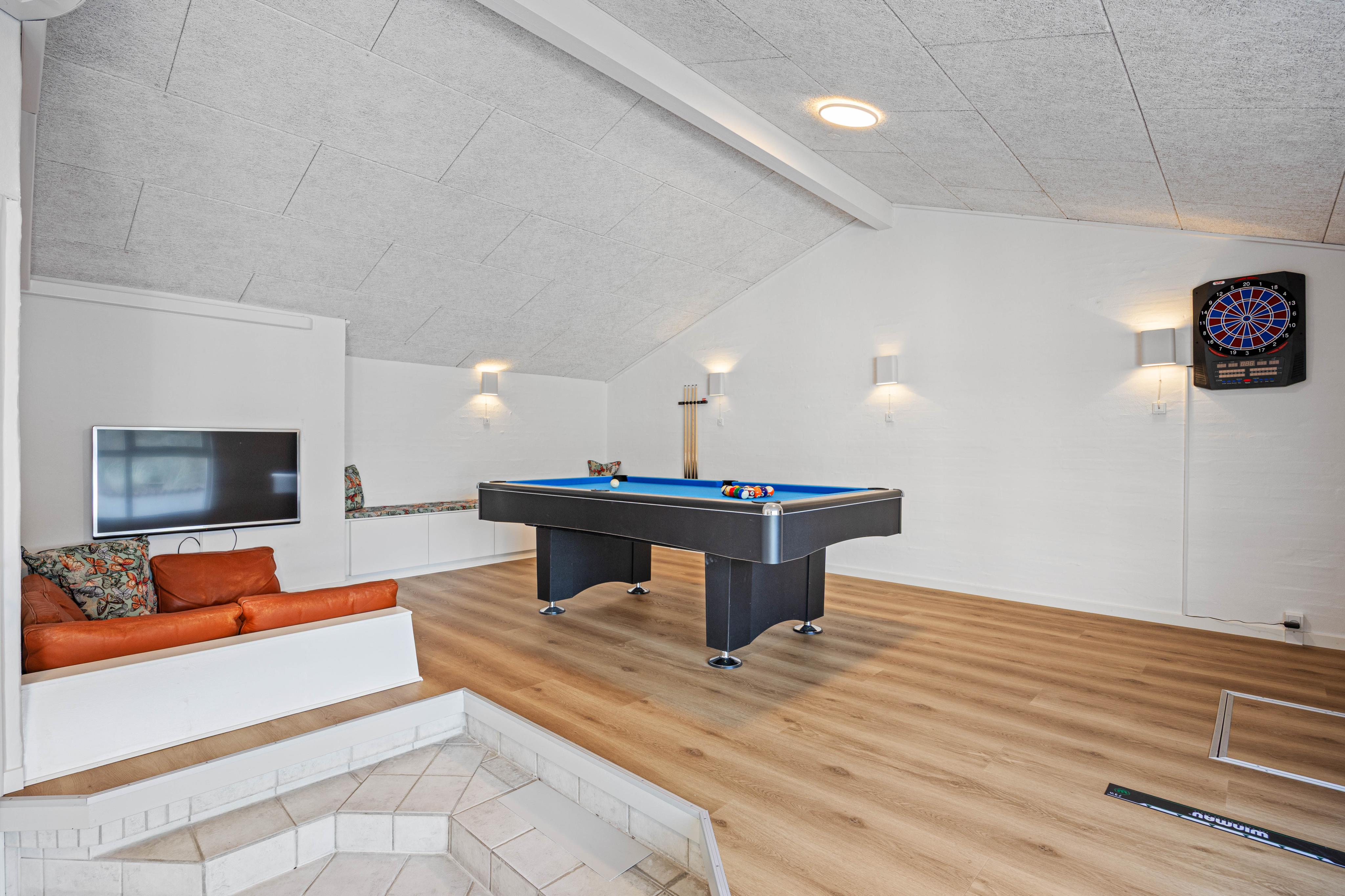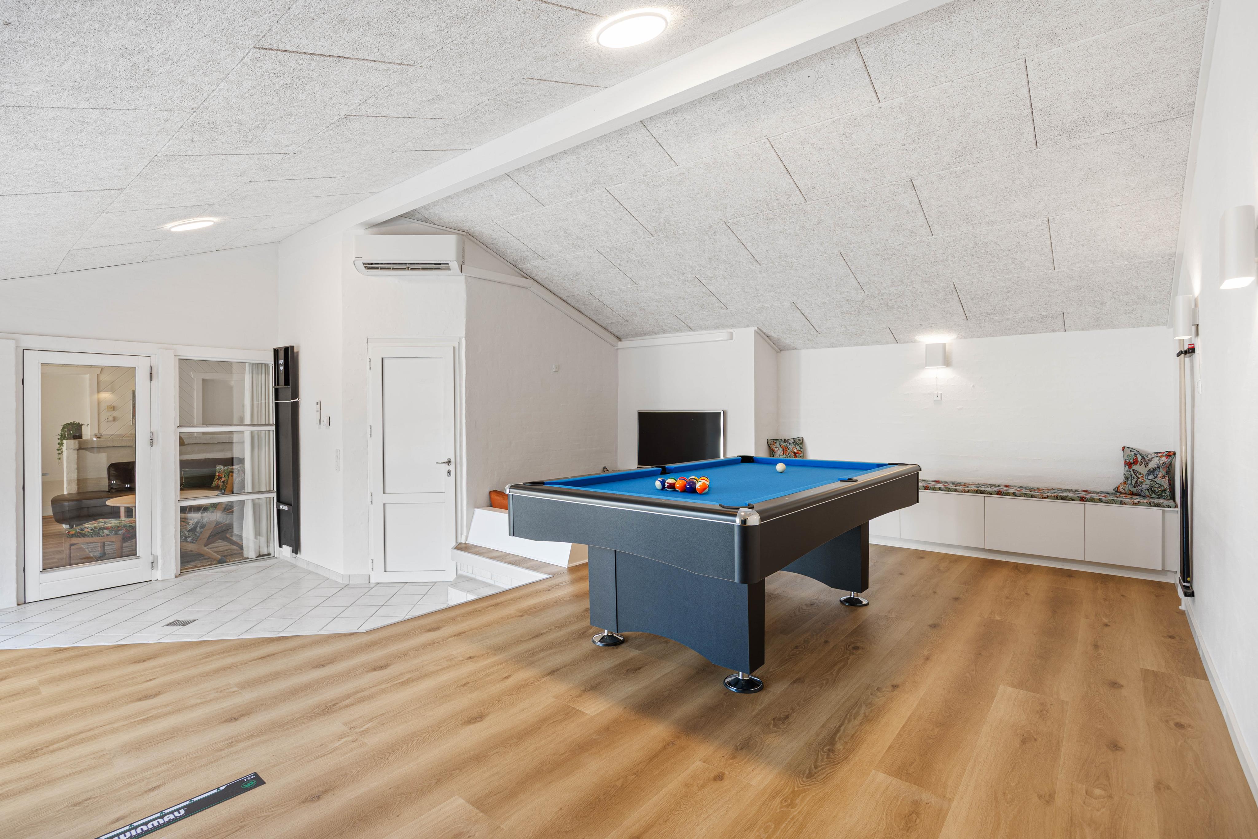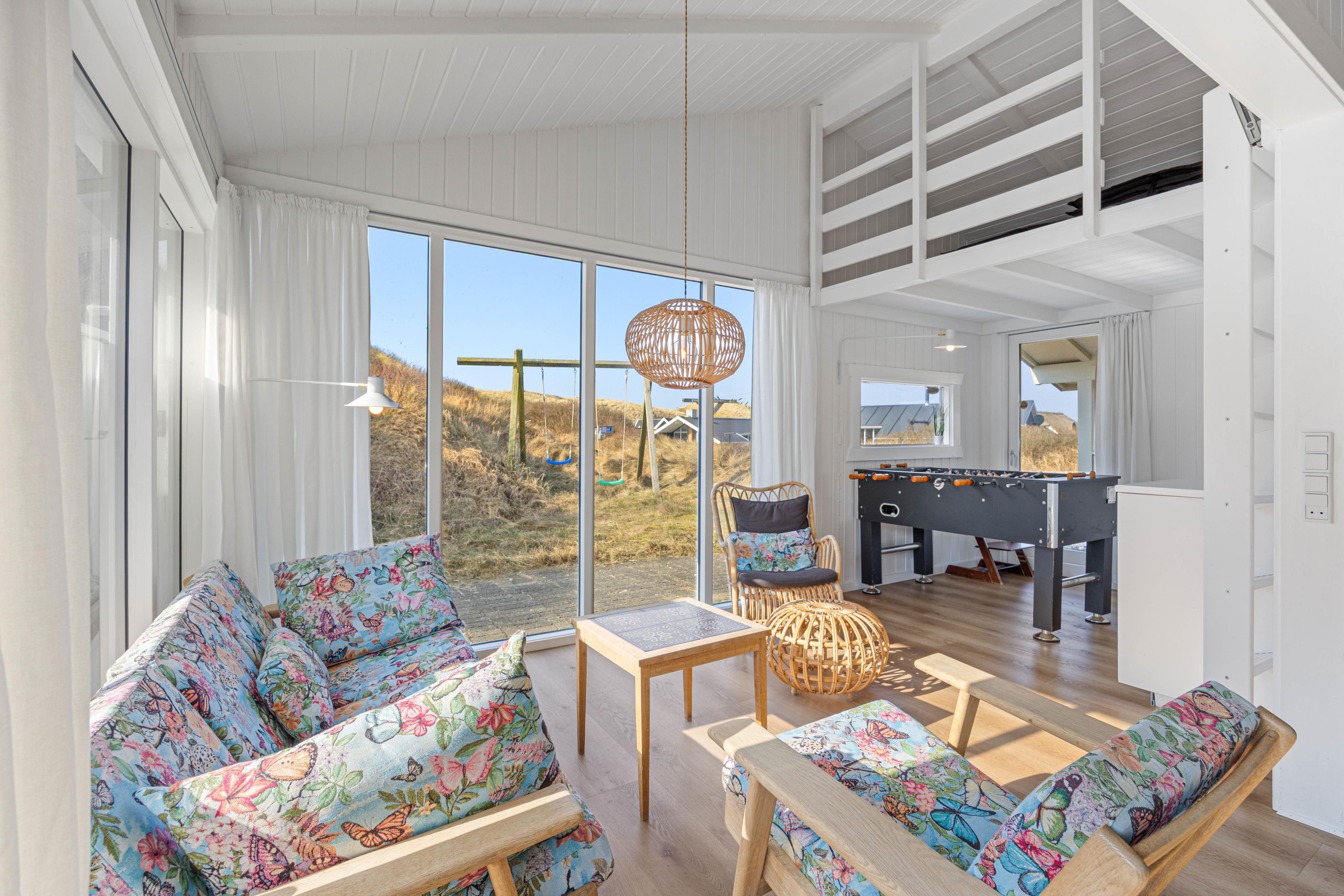 Med det samme I træder ind i dette hyggelige sommerhus, bliver I mødt af et stort og lyst opholdsrum med en smuk hvid pejs, som giver den mest fantastiske stemning til rummet. Her er højt til loftet med lyse farver og store vinduespartier, der giver et dejligt lysindfald. I opholdsrummet er der flere hygge kroge med sofaer og siddepladser, så alle kan være med. Til børnene og de legesyge voksne er der et aktivitetsrum, hvor I kan få masser af tid til at gå med spil og sjov.