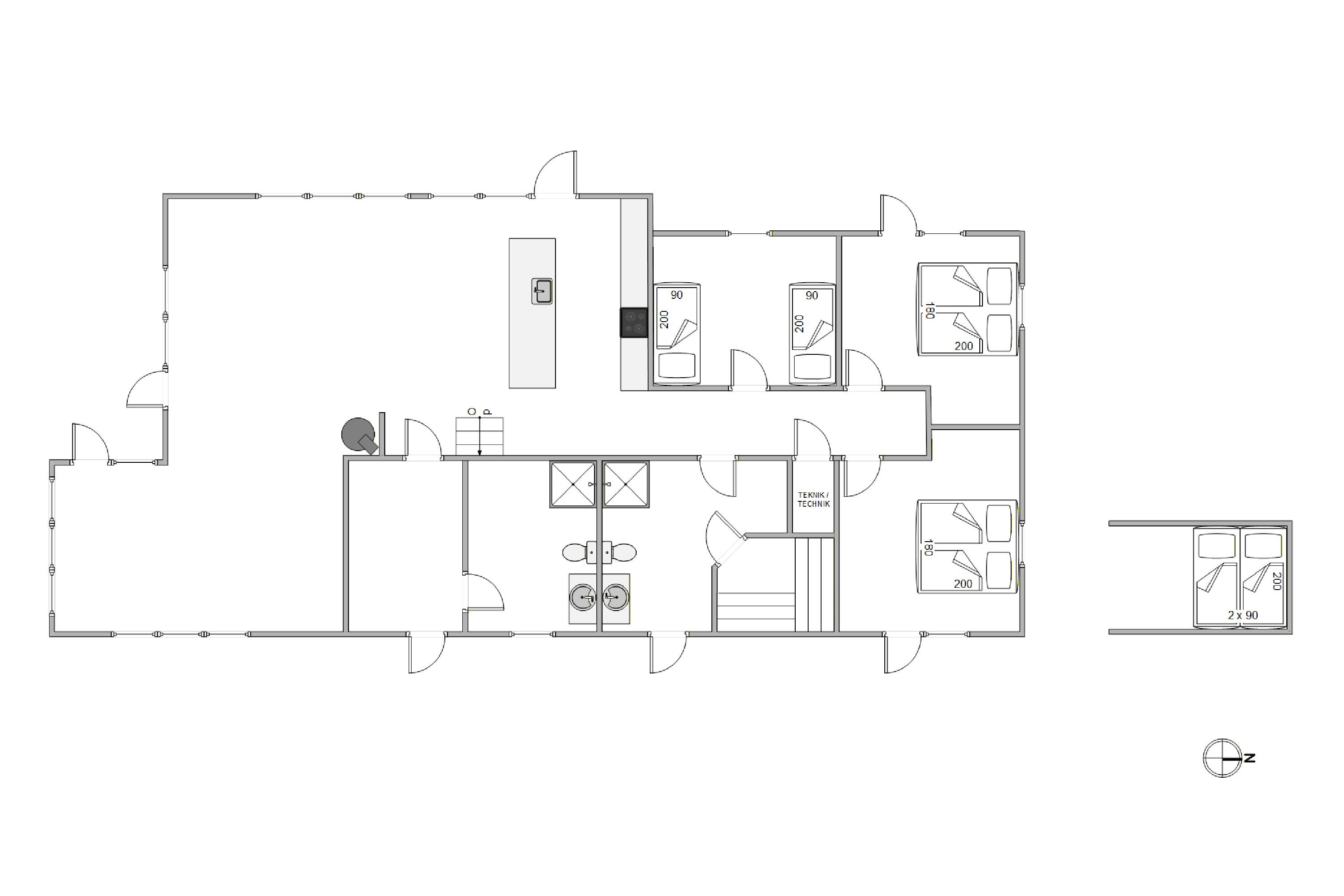 Sommerhuset er ideelt til en stor familie (4 voksne og 2 børn), 3 soveværelser og 2 badeværelser, virkelig super. Vi kommer bestemt gerne igen til Tinngodden Nr. 201.
