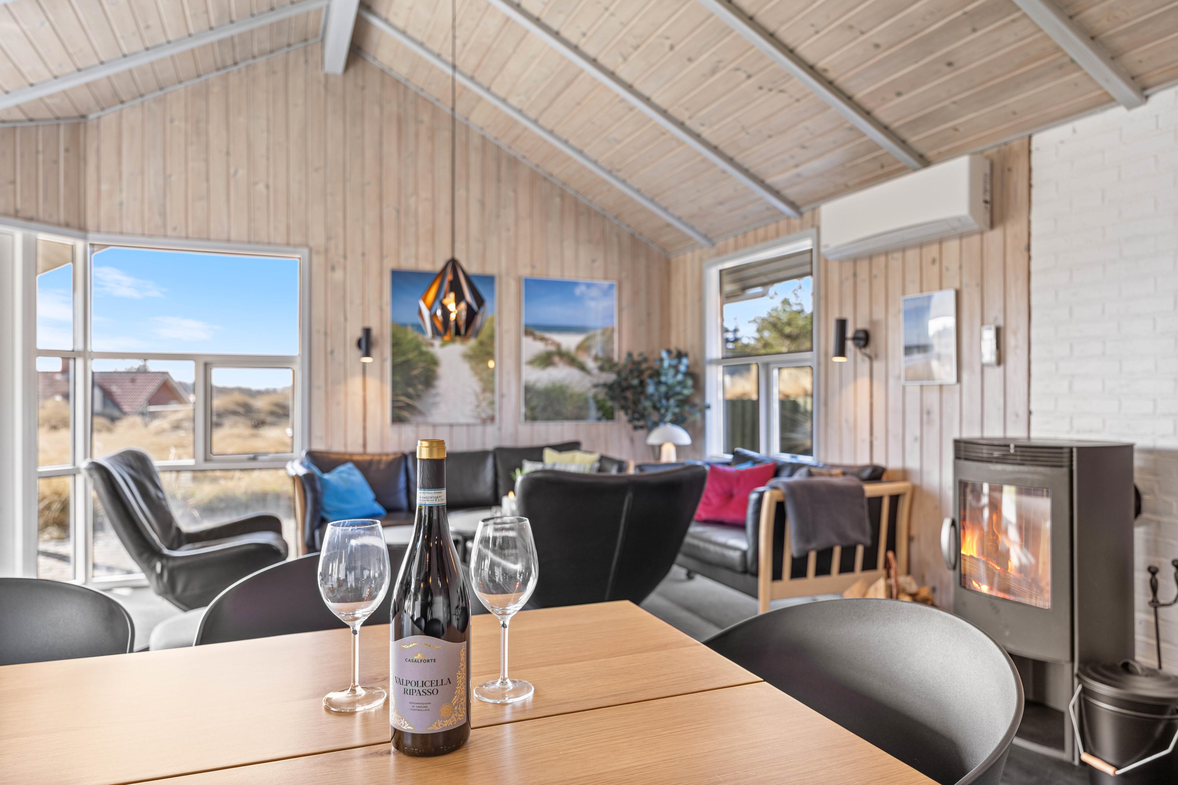 Huset er godt integreret i omgivelserne. Hyggelige udendørspladser er beskyttet mod indblik fra andre. Vejen til stranden er heller ikke lang. Hvis det regner udenfor, kan man hygge sig ved brændeovnen. For os var det første gang, at husejeren tilbød eget brænde. Mange tak! Med to par og to ældre børn kunne vi tilbringe en dejlig efterårsuge der.