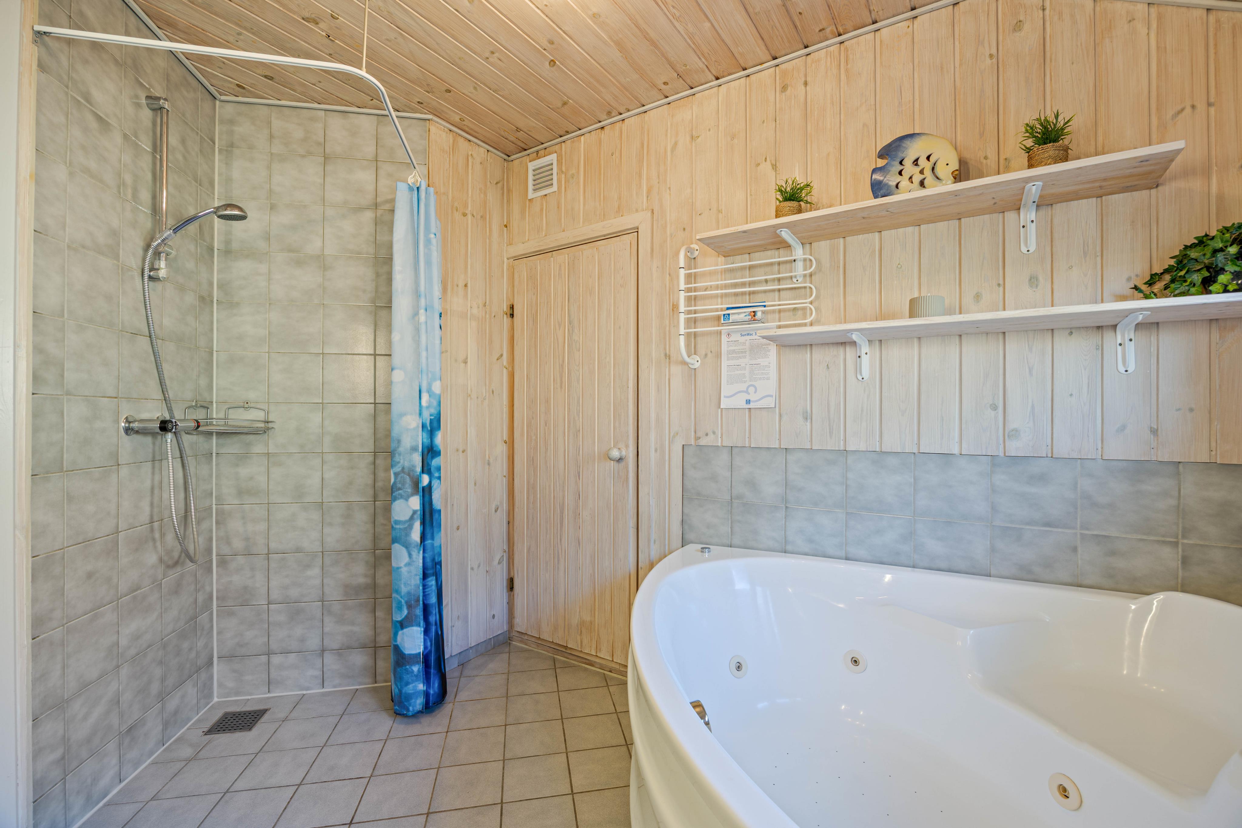 De 7 sovepladser fordeler sig på 4 gode værelser, hvor I kan finde til ro efter en dejlig dag. Derudover finder I også 2 badeværelser med gulvvarme i feriehuset. På det ene badeværelse er der en sauna og spa, hvor I kan komme helt ned i gear og nyde roen.
