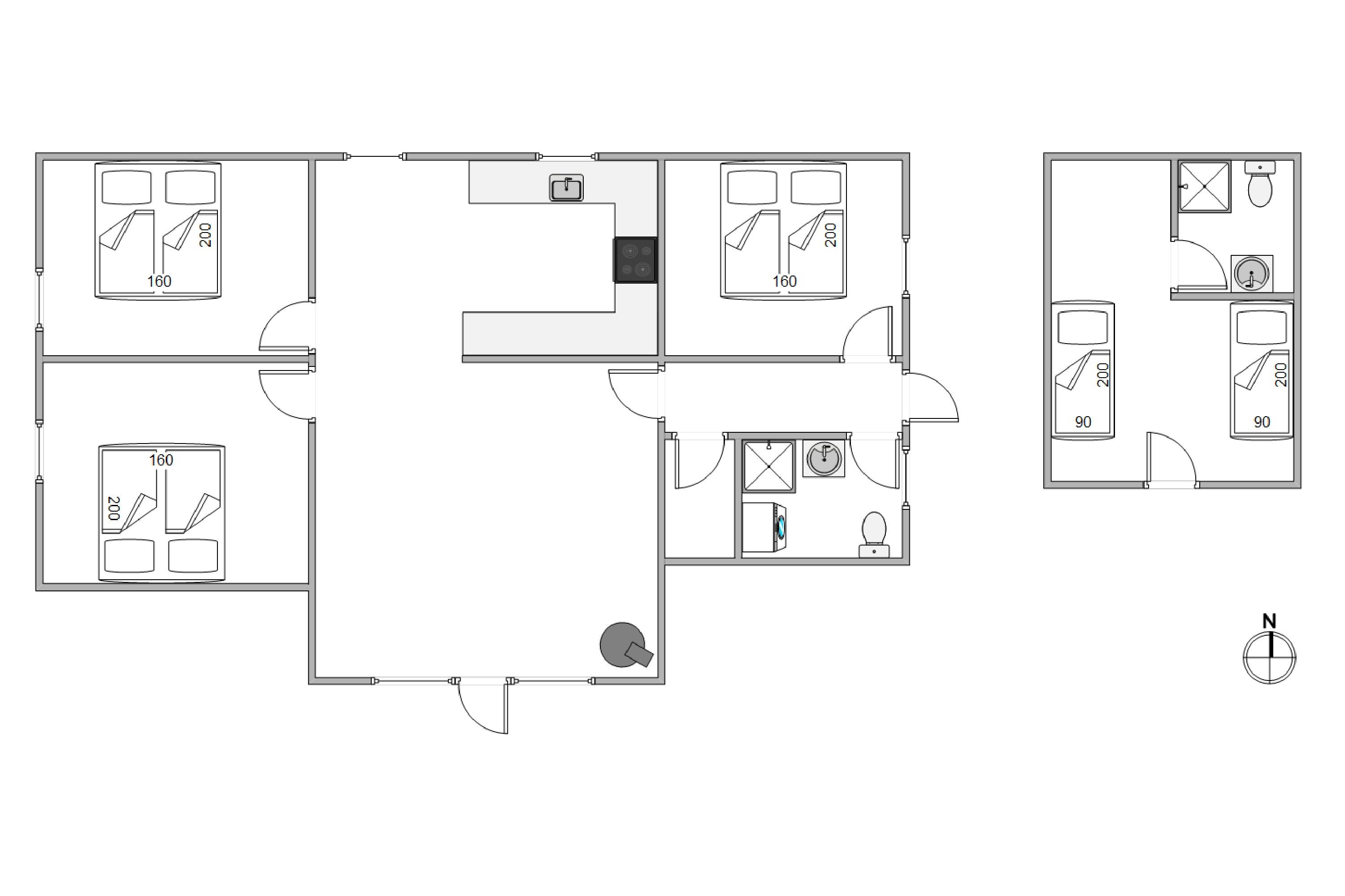 Lille hyggeligt hus med separat hus til teenagere eller venner med eget bad. Hovedhuset er beregnet til 4-6 personer, udhuset til 2 personer. Udeområdet er moderne holdt og terrassen er helt indhegnet. Den korte vej til stranden indbyder til lange gåture.