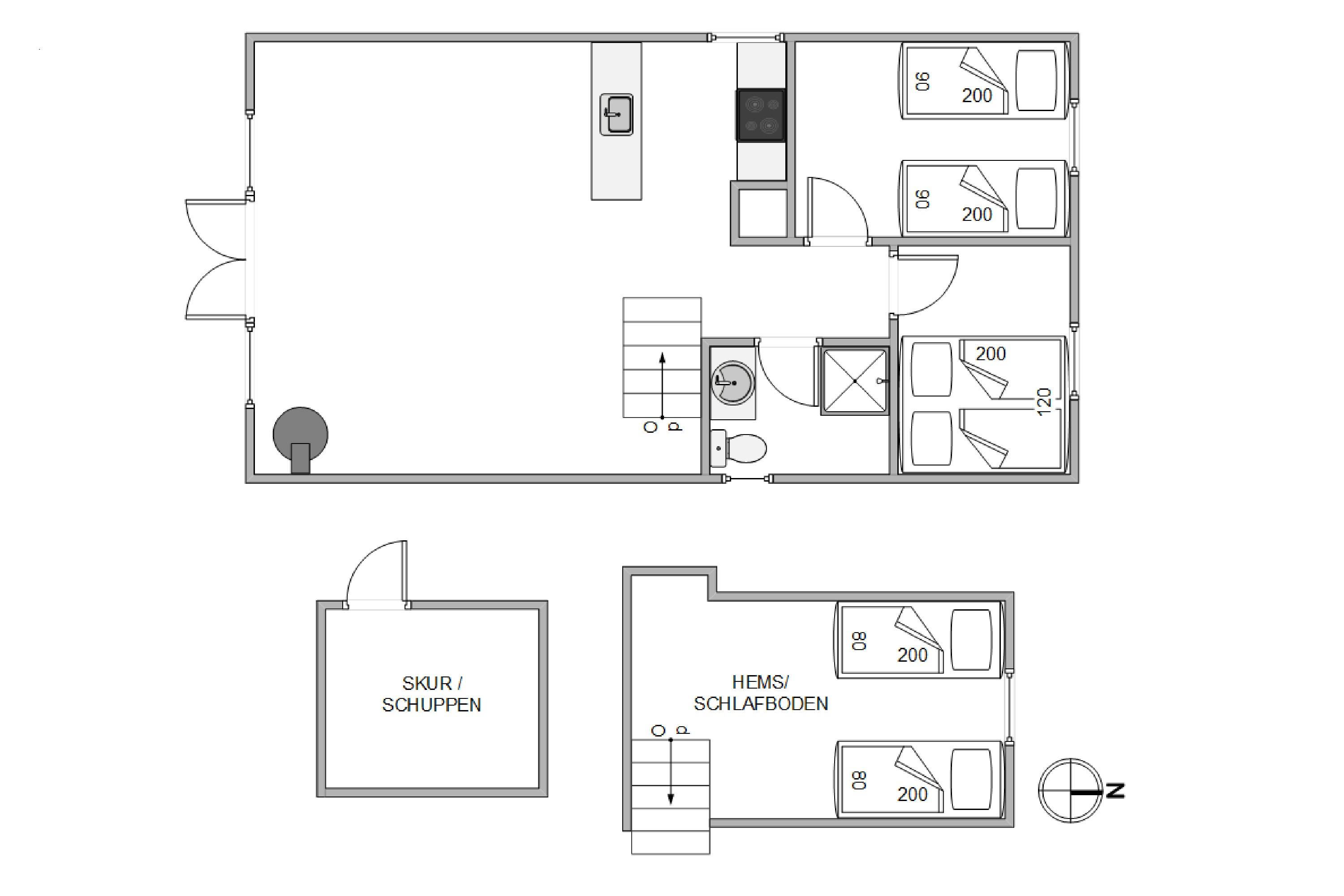 Sommerhuset har 2 hyggelige soveværelser, 1 med dobbeltseng og 1 med 2 enkeltsenge. På hemsen finder I yderligere 2 sovepladser, som børnene vil elske. Derudover er der 1 badeværelse i sommerhuset.