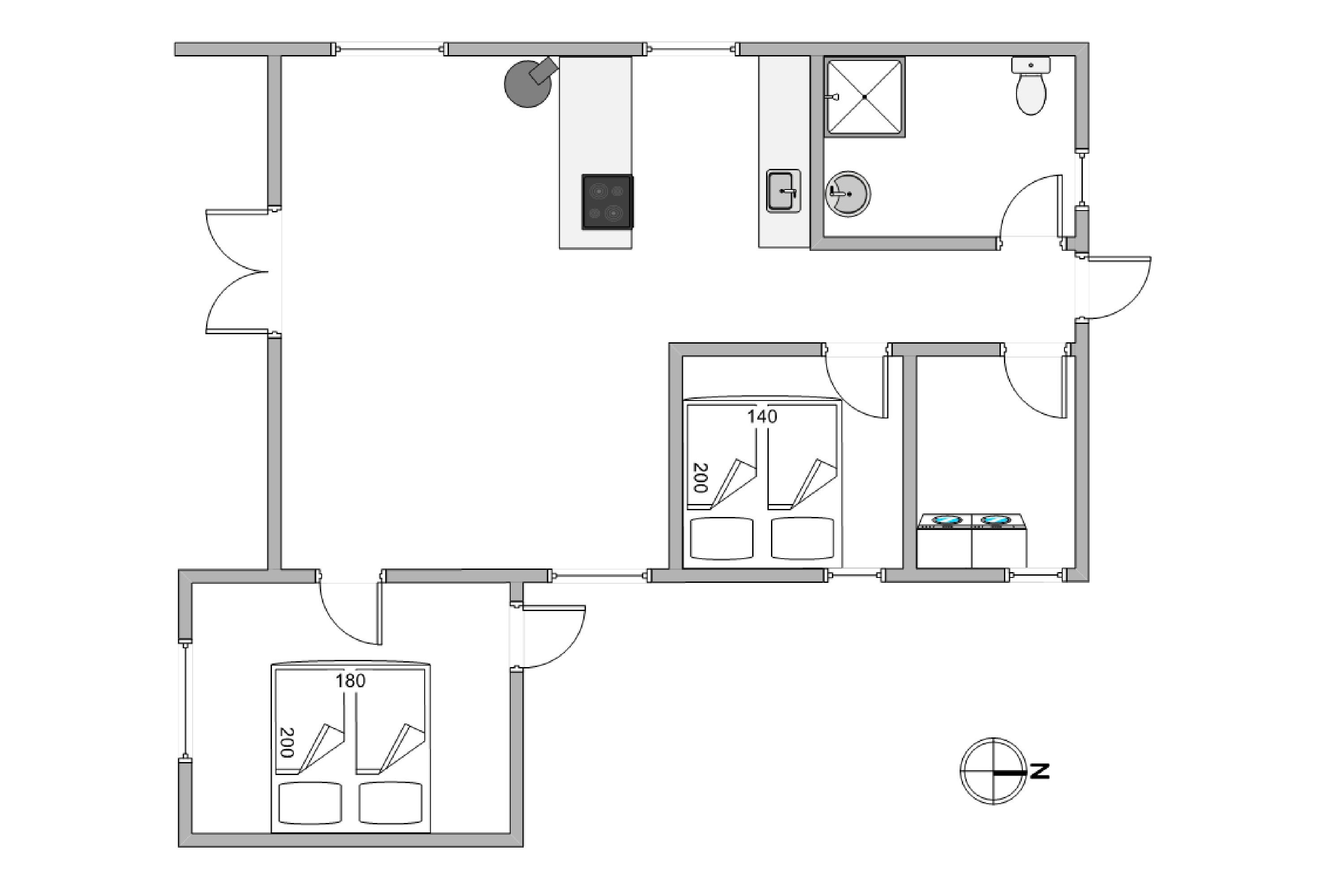 Feriehuset 5 sovepladser fordeler sig på 3 lyse og komfortable soveværelser - et værelse med en dobbeltseng, et værelse med en køjeseng og et værelse med en enkeltseng.